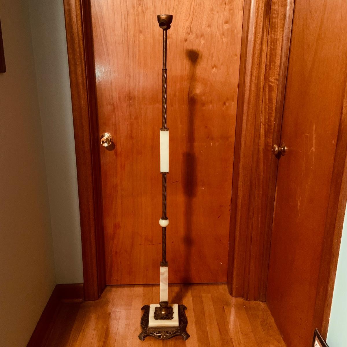 LOT:306: Vintage/Antique Uranium Glass and Brass Floor Lamp Post
