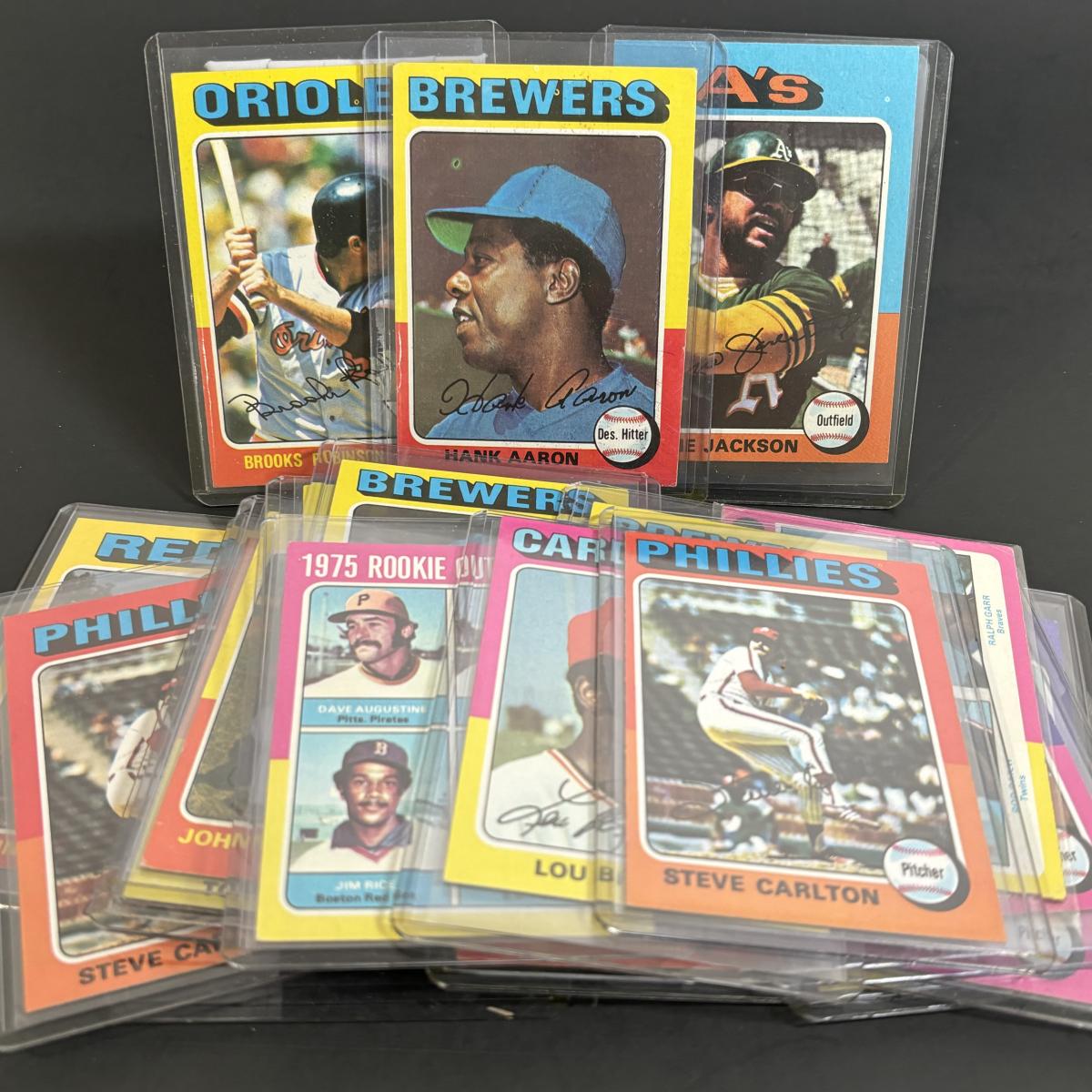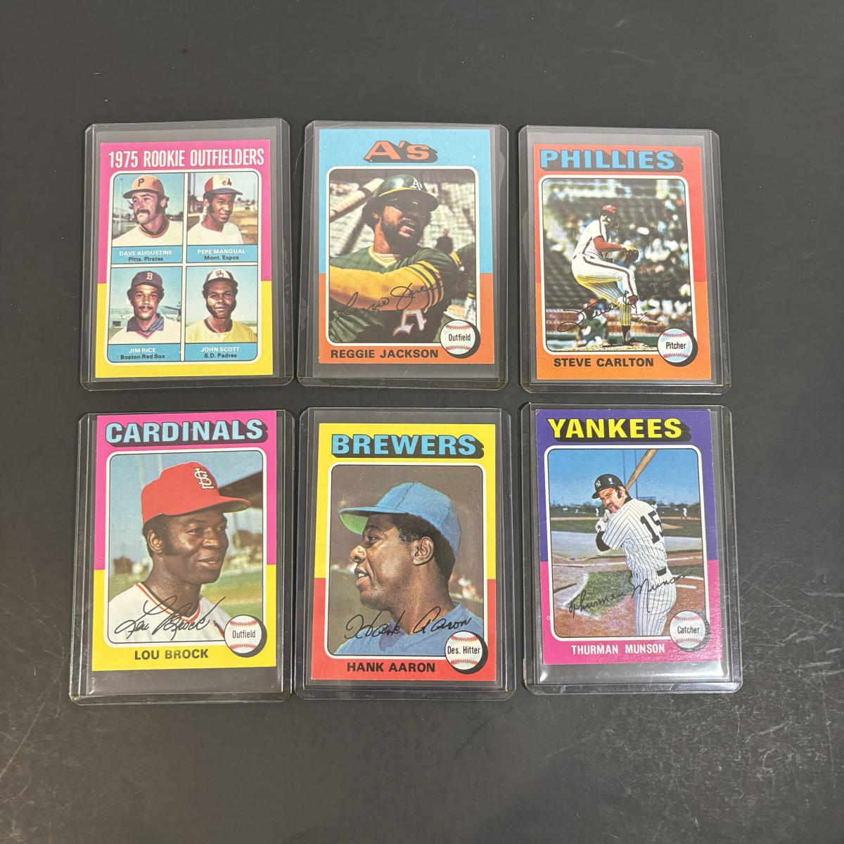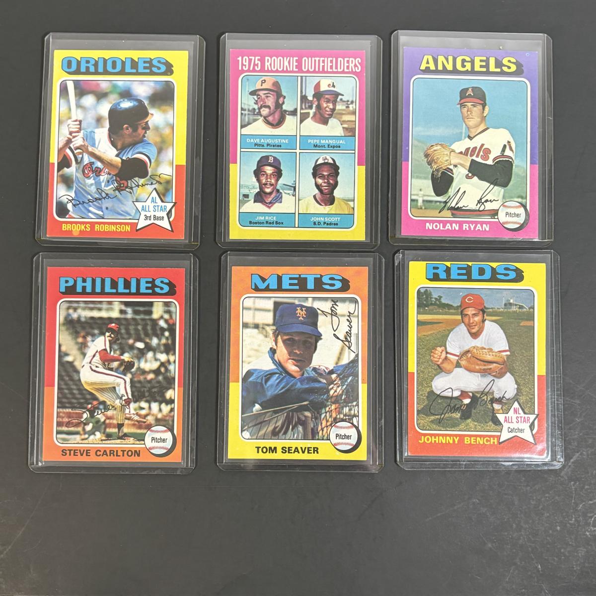 LOT 58: 1975 Topps Baseball Cards Nolan Ryan Hank Aaron Jim Rice Rookie Reggie Jackson!
