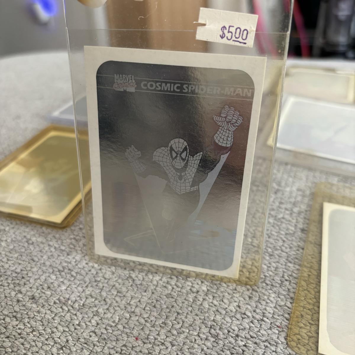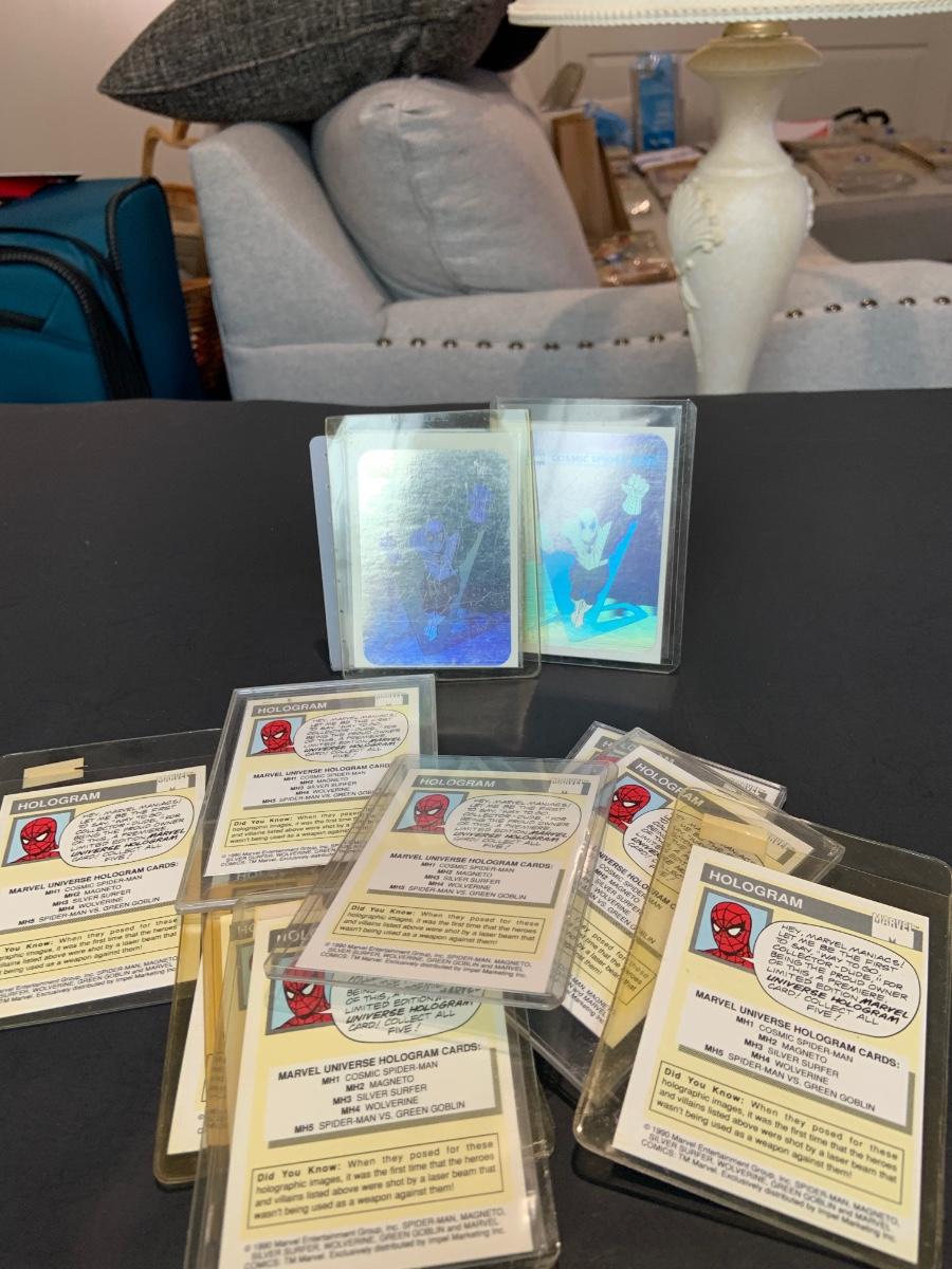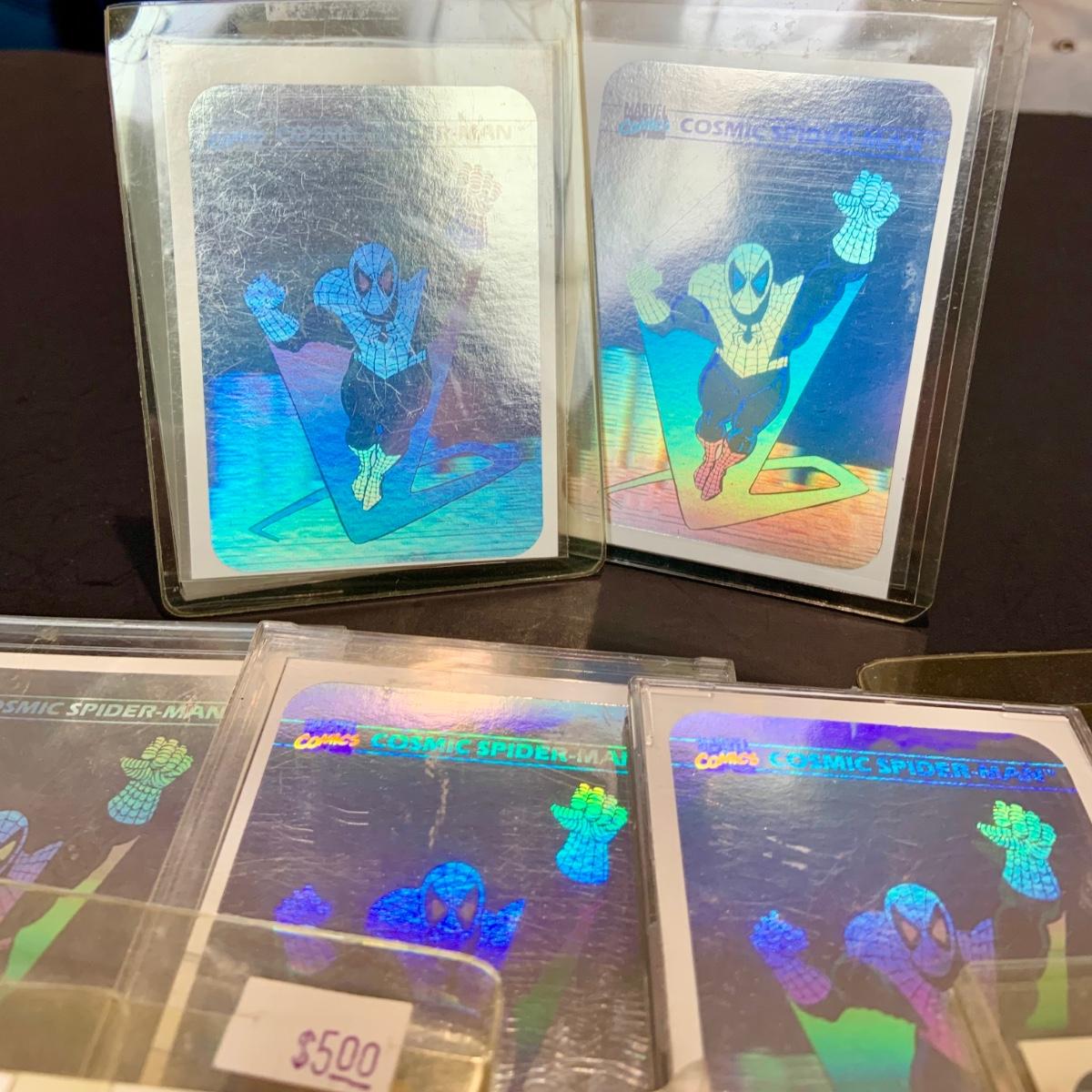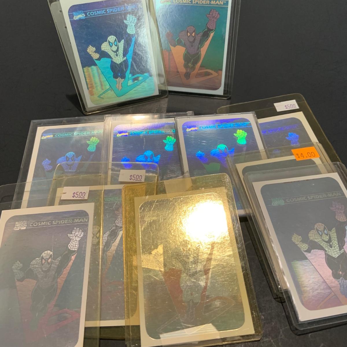 LOT 162: 11 cards of the 1990 Marvel Cosmic Spiderman Insert Hologram card!