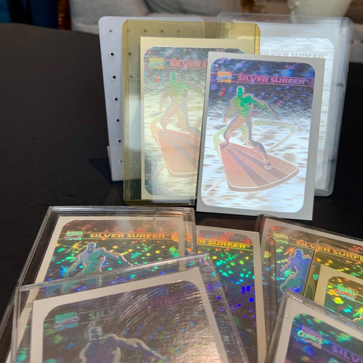 LOT 163 9 cards of the 1990 Marvel Silver Surfer Insert Hologram card!
