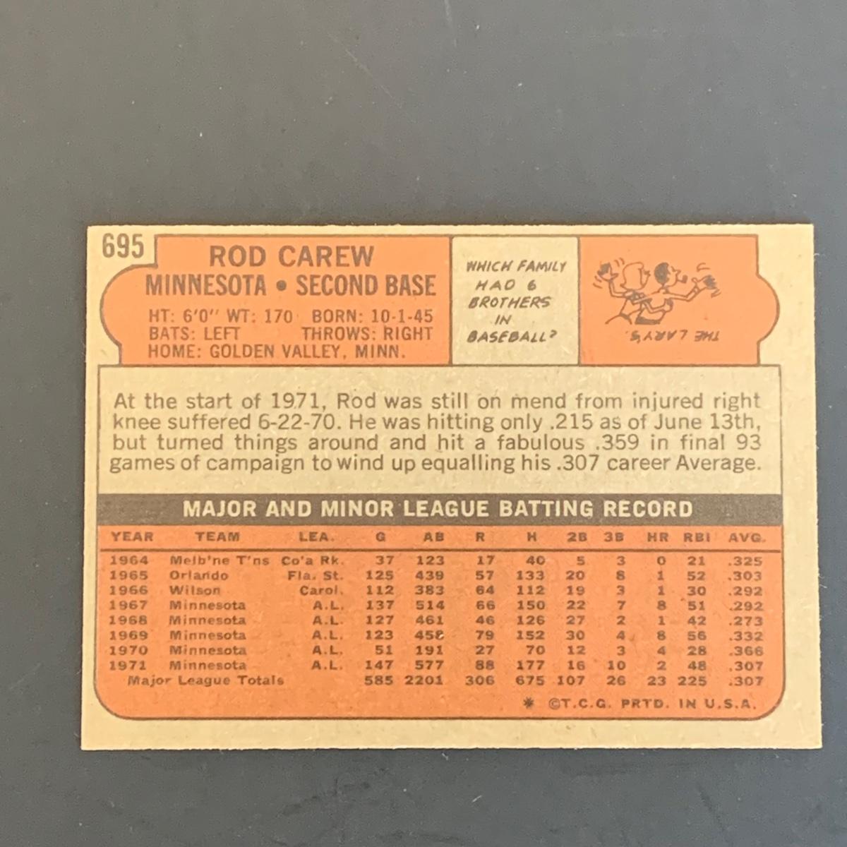 LOT 114: 1972 Topps Rod Carew Baseball Card