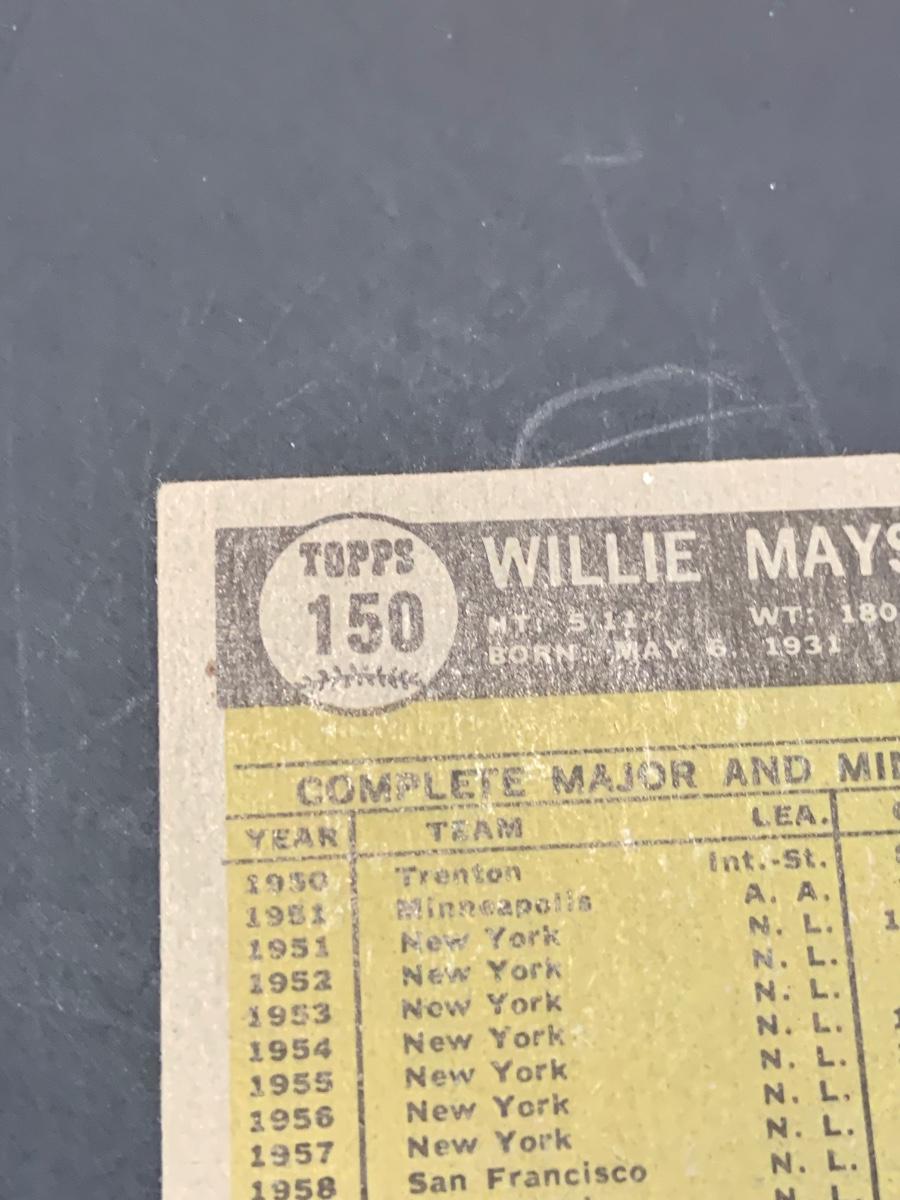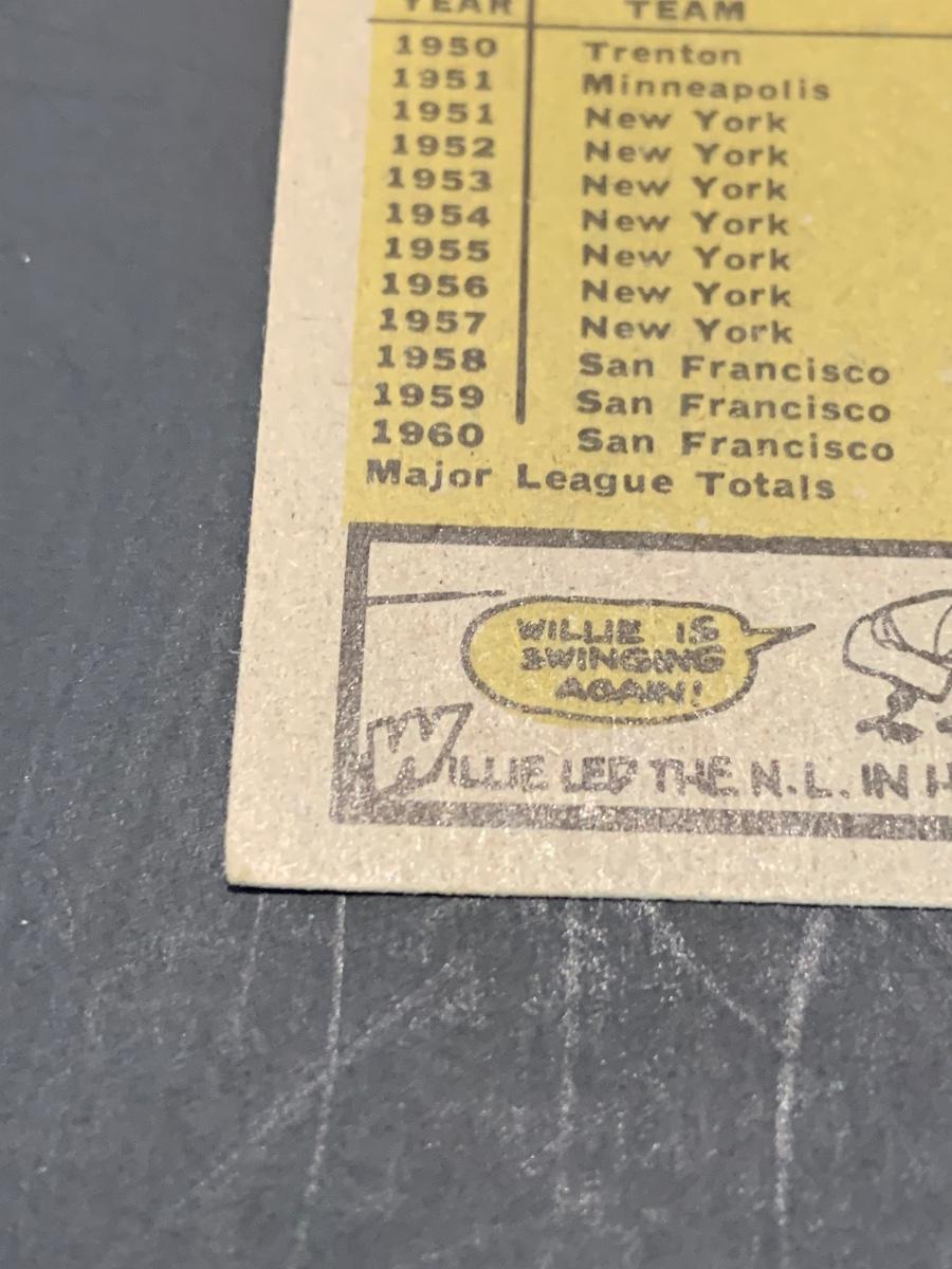 LOT 123: 1961 Topps Willie Mays Baseball Card