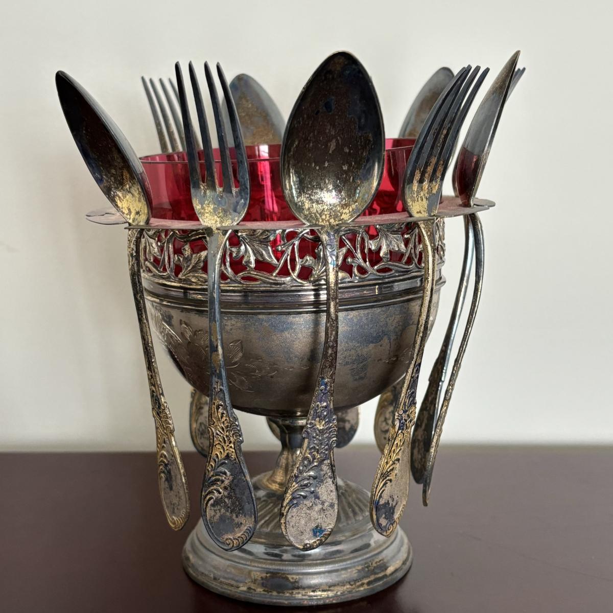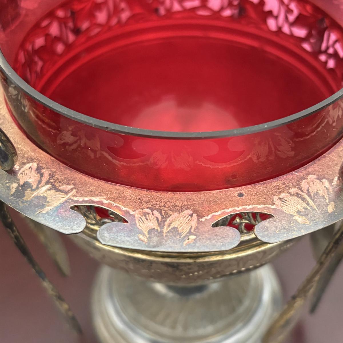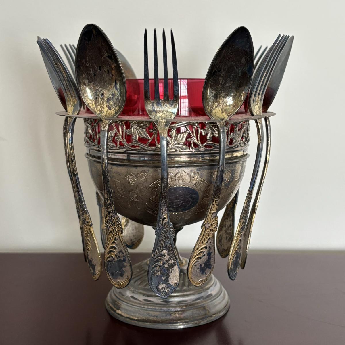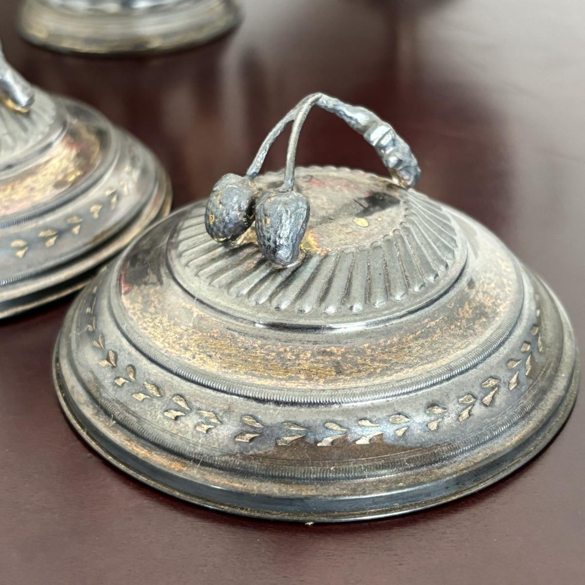 LOT 15: Antique Silver-Plated Caviar/Compote Set w/Cranberry Glass