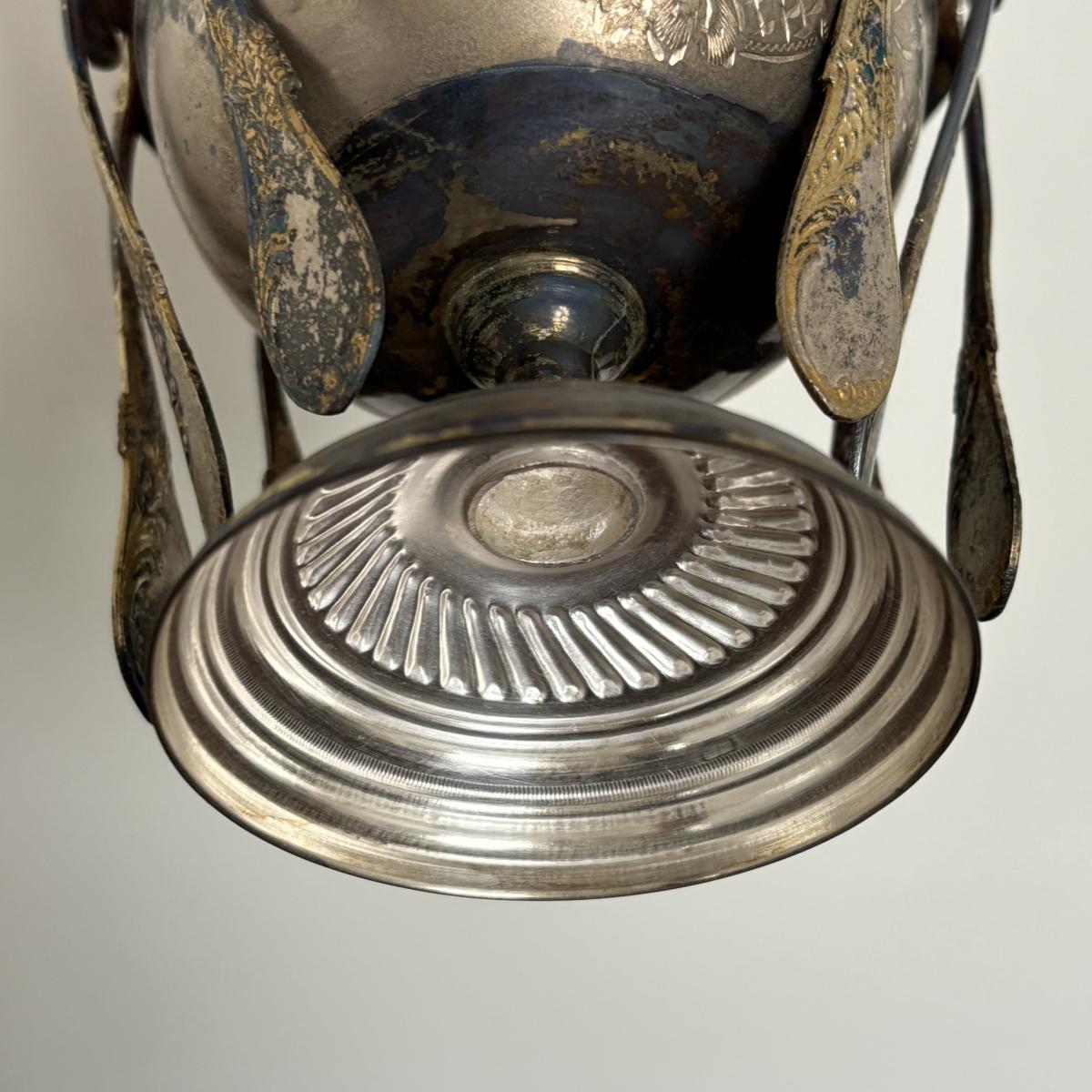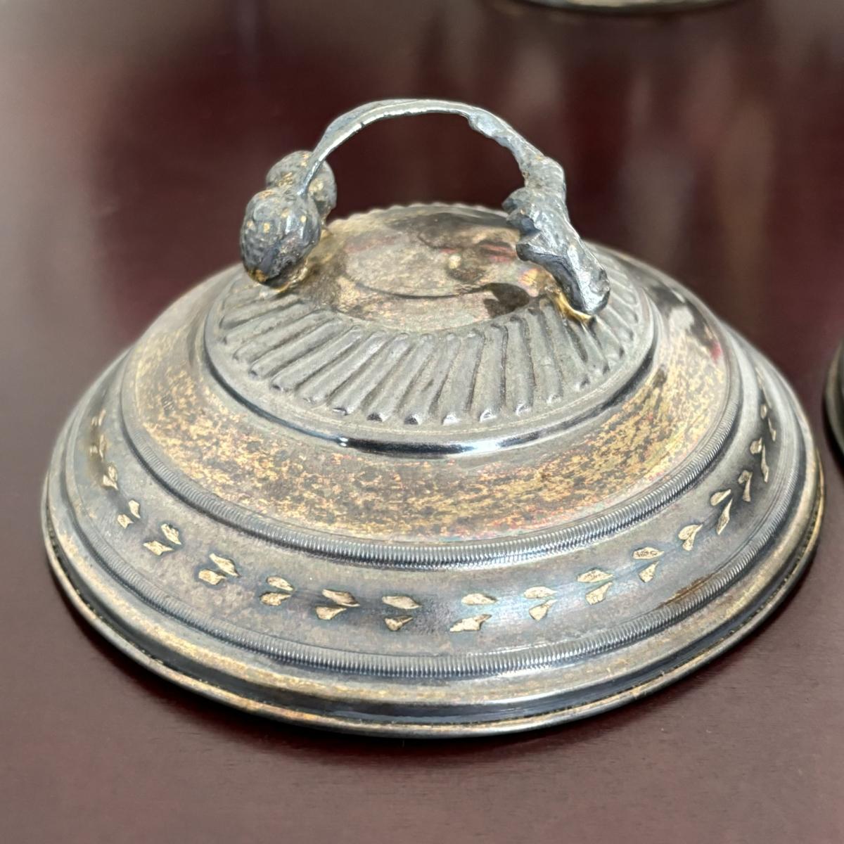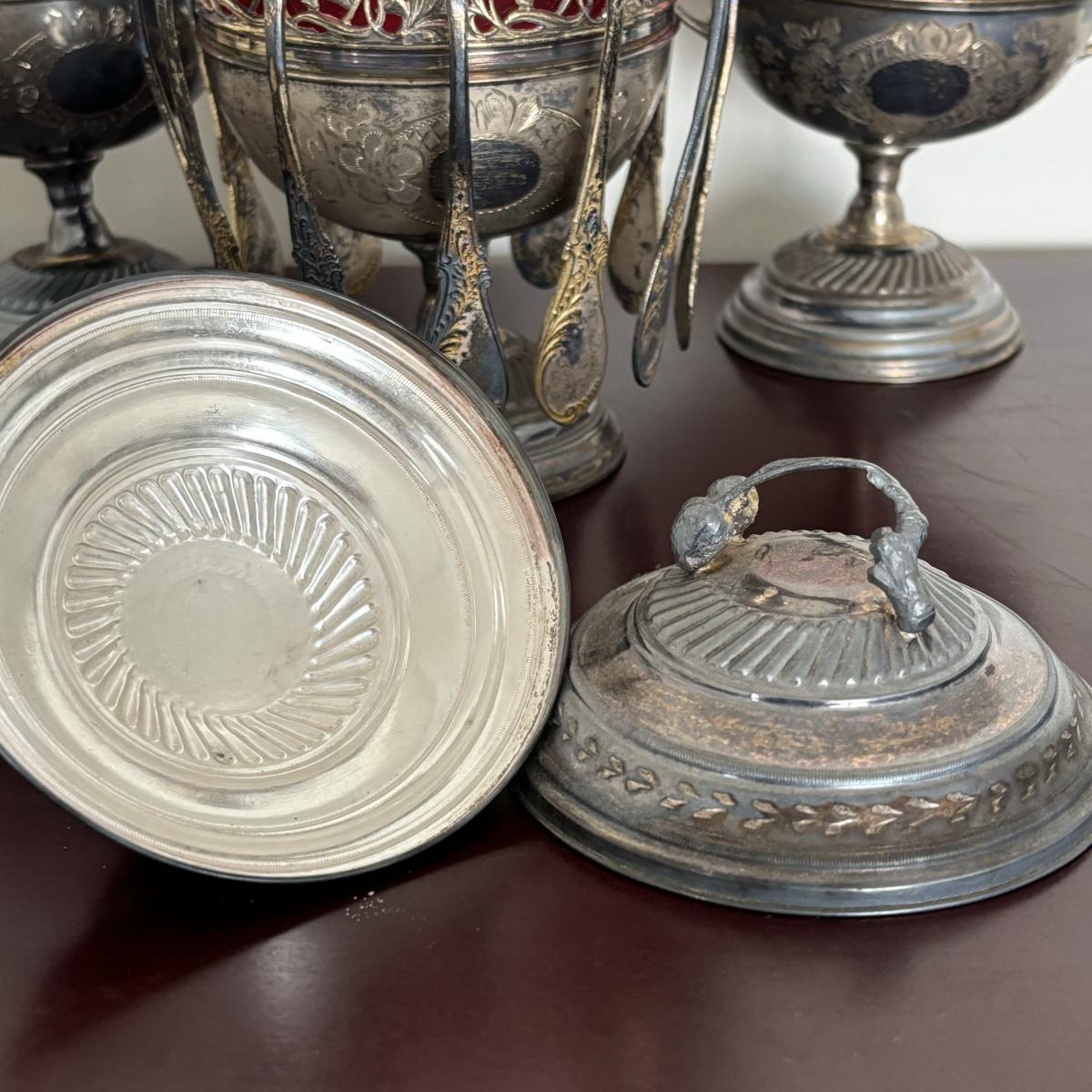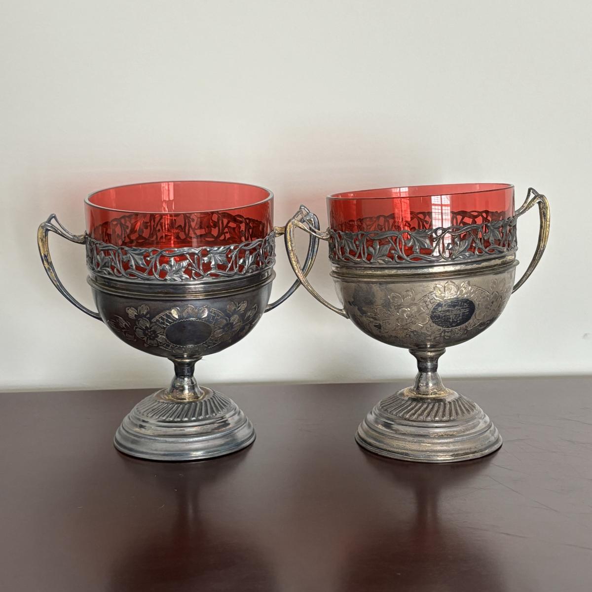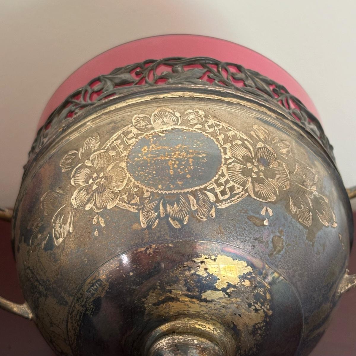 LOT 15: Antique Silver-Plated Caviar/Compote Set w/Cranberry Glass