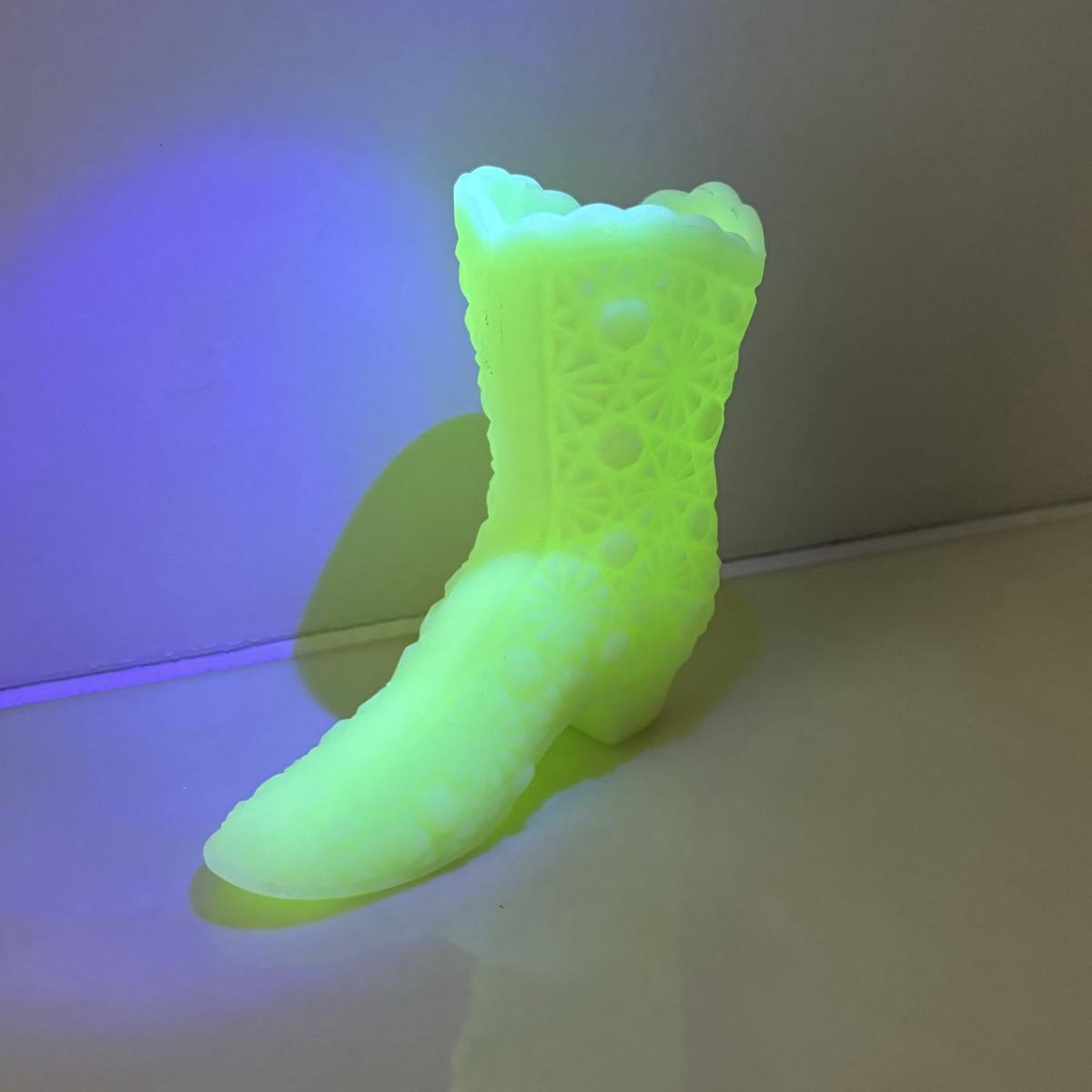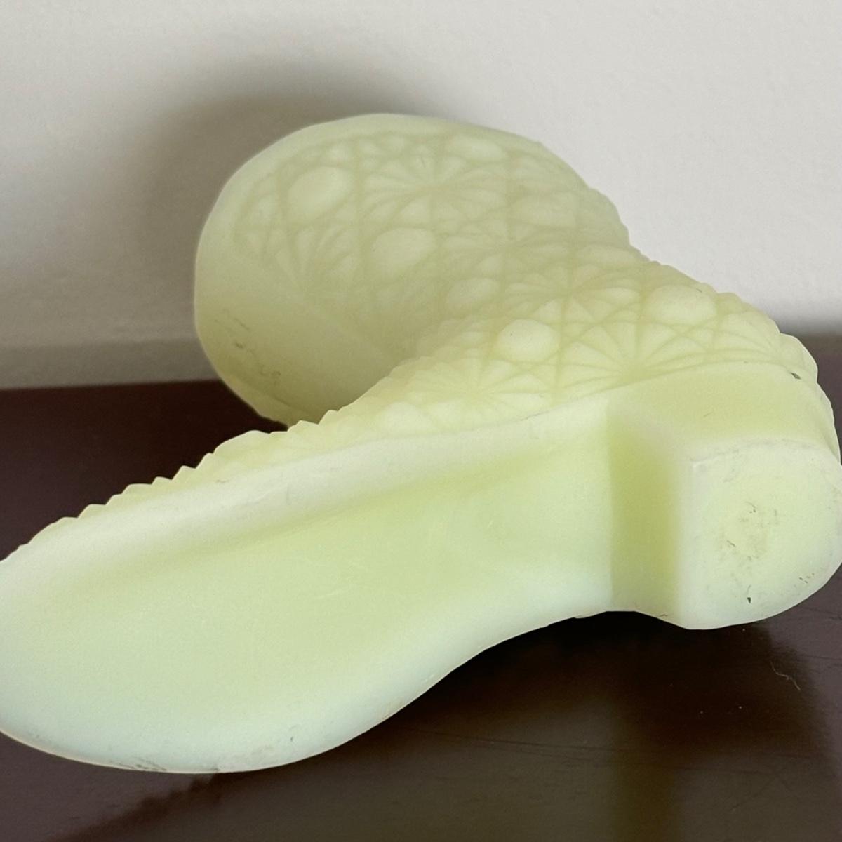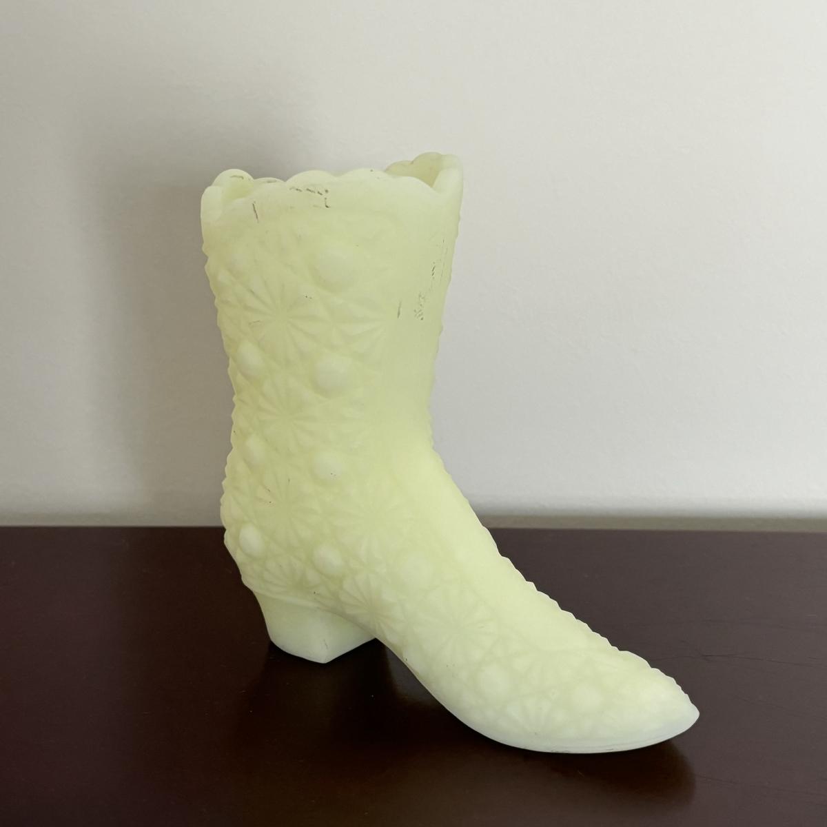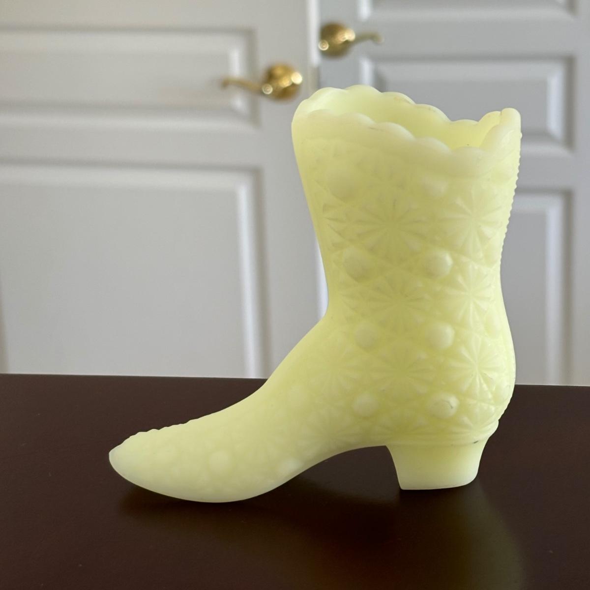 LOT 16: Vintage Oneida Crystal Cobalt Blue Cinderella Glass Slippers & Fenton Pale Yellowish/Green Daisy Button Boot