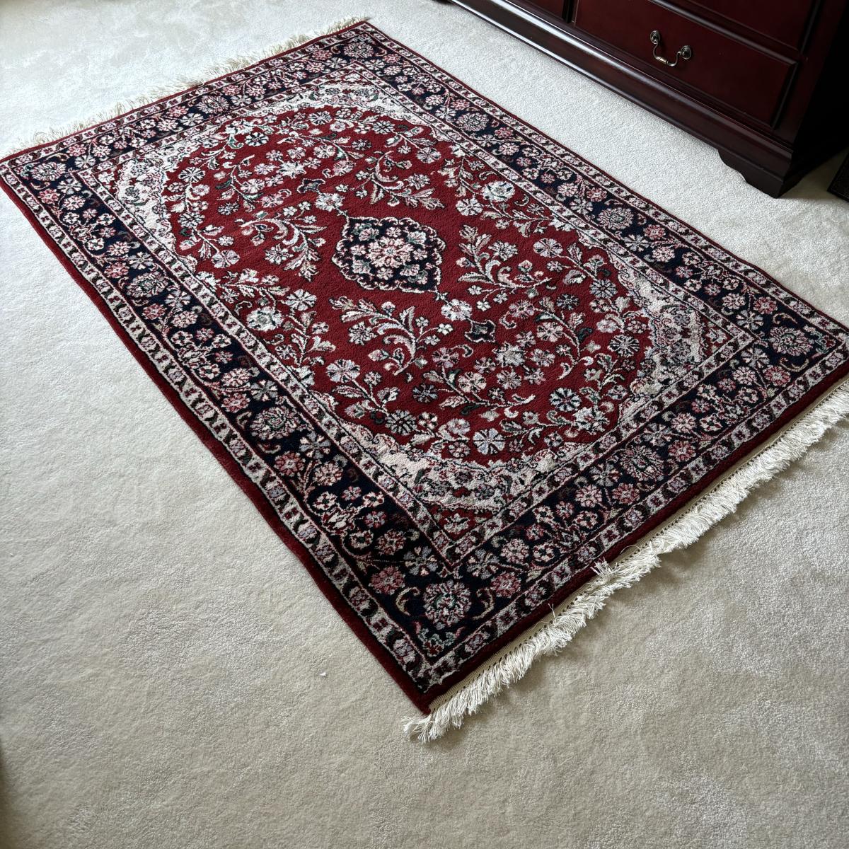 LOT 18: Floral Area Rug, Burgundy & Black, 4ft x 6ft, Hand Woven