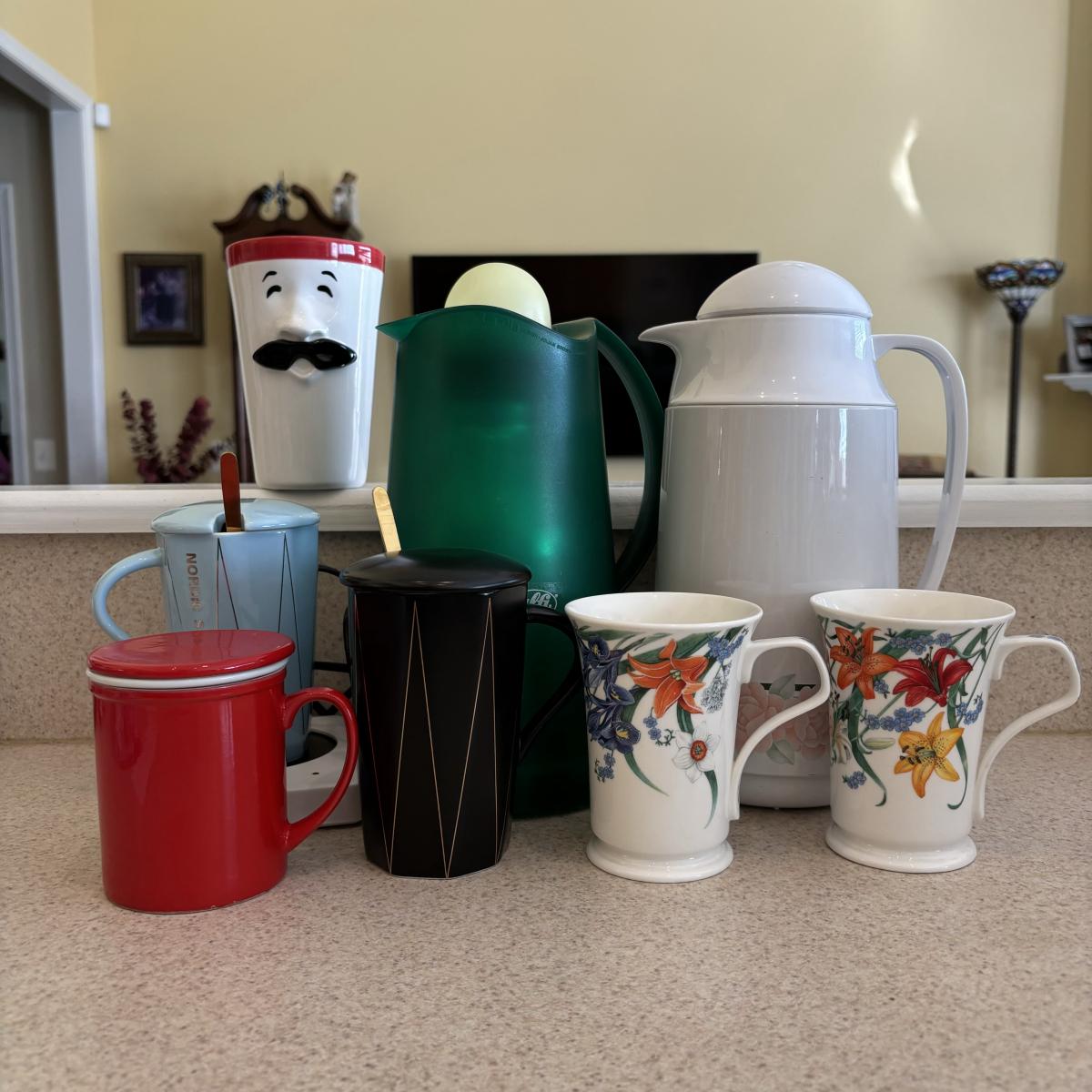 LOT 22: Coffee/Tea Time: Carafes, Mug Warmer & Mugs
