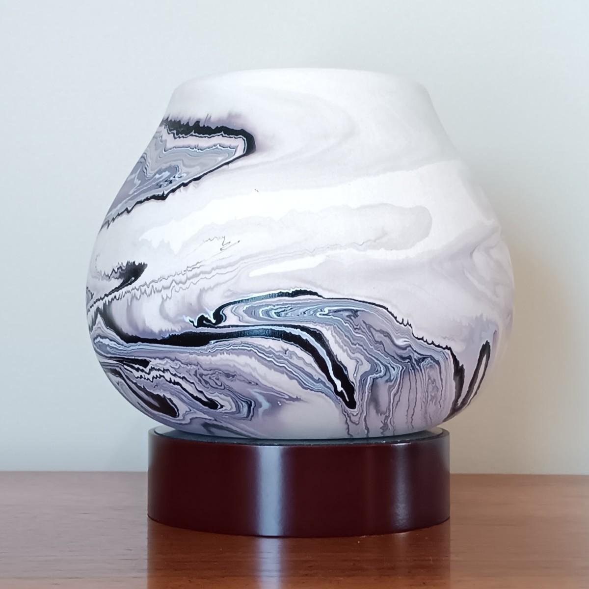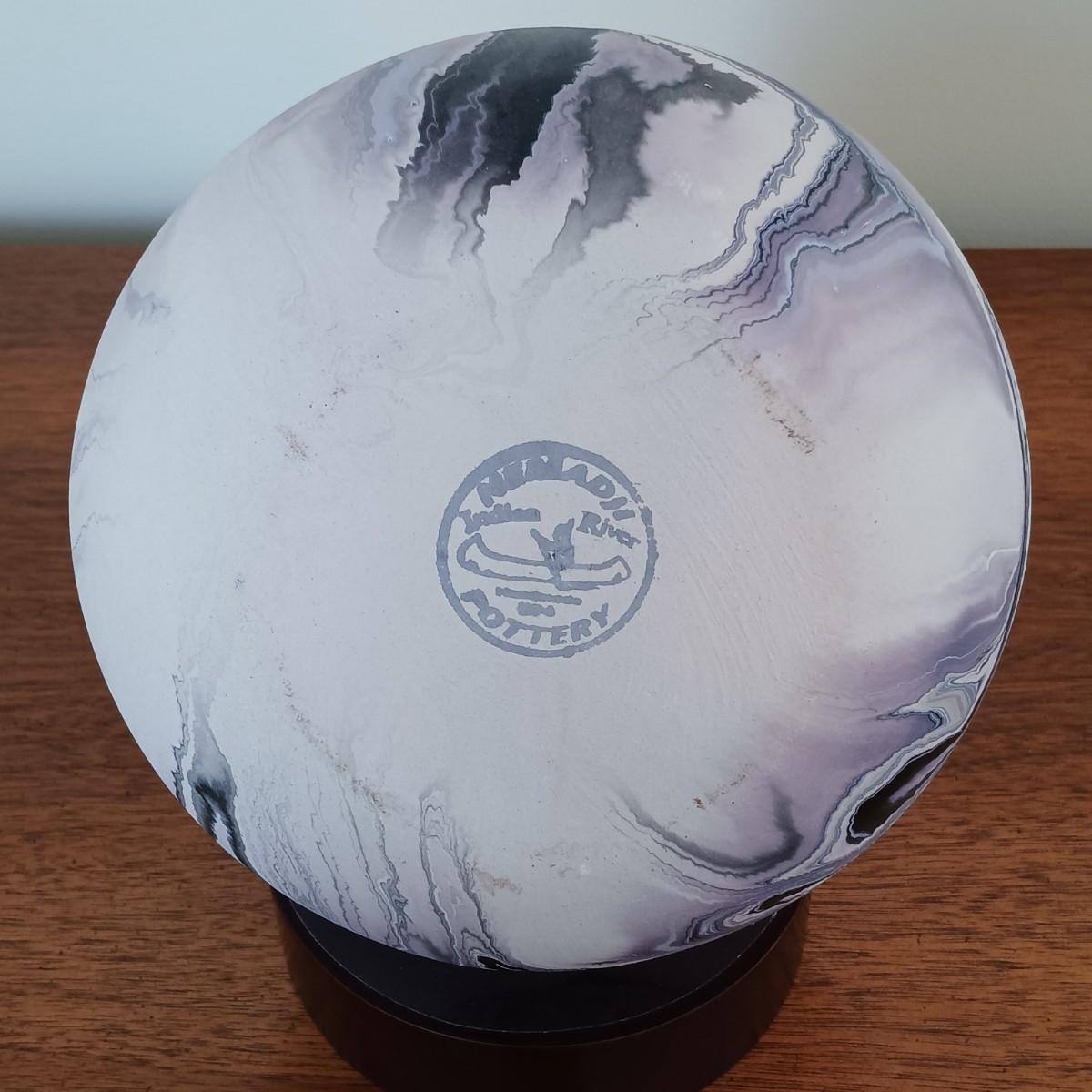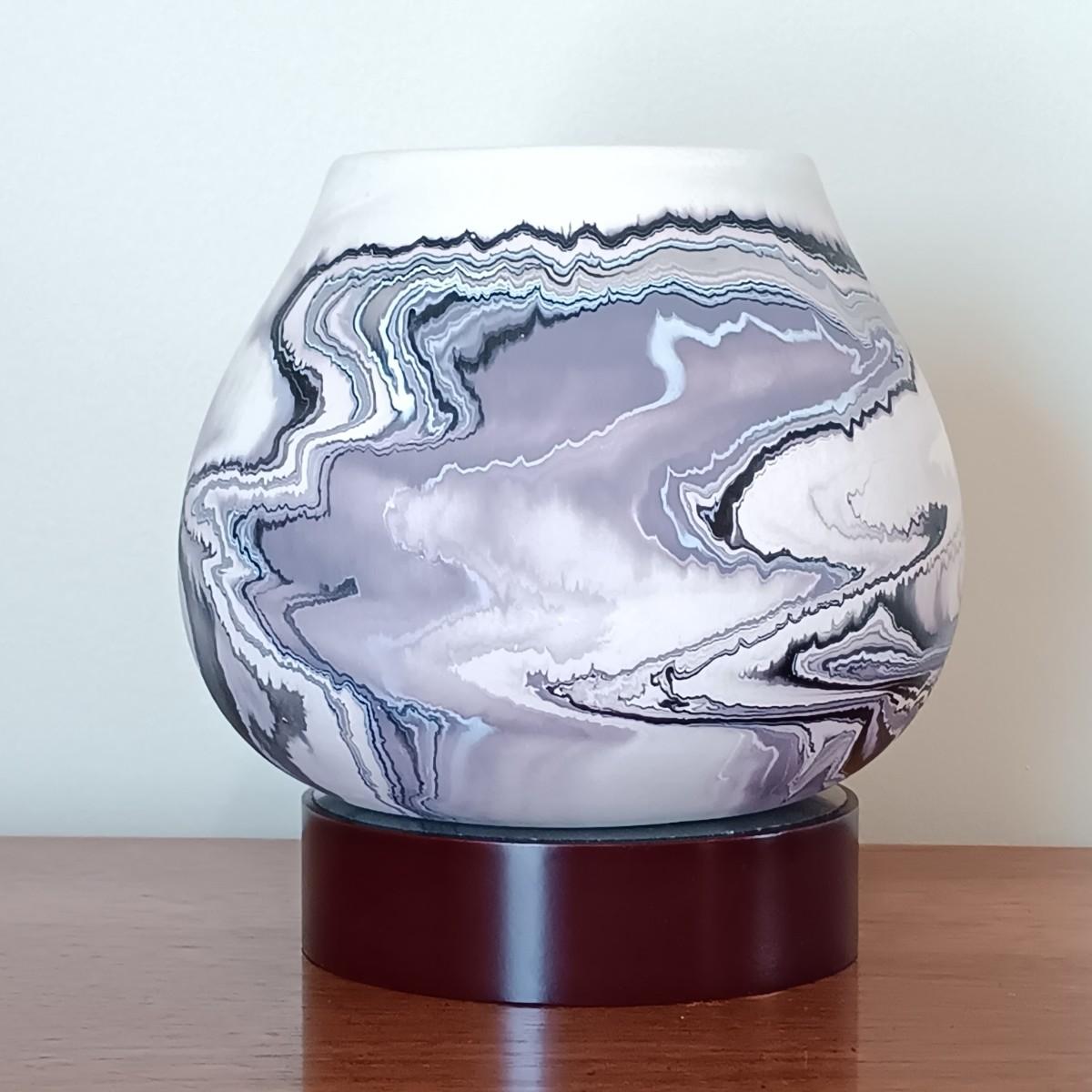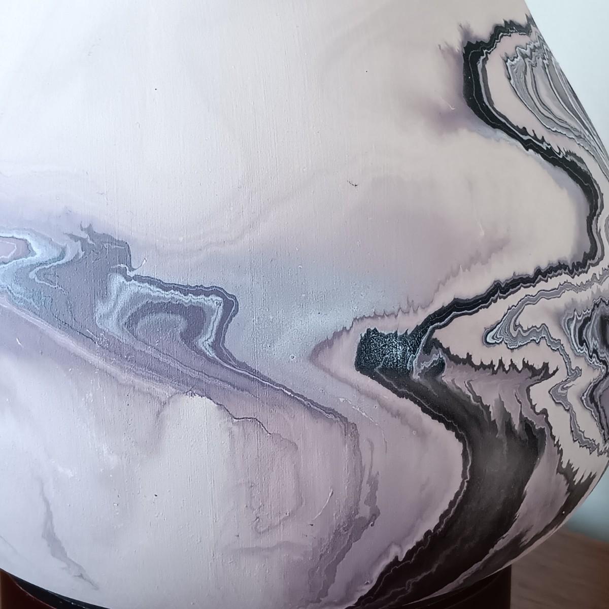 LOT 35: Vintage Nemadji Lavender, Black and White Wave Pottery Vase