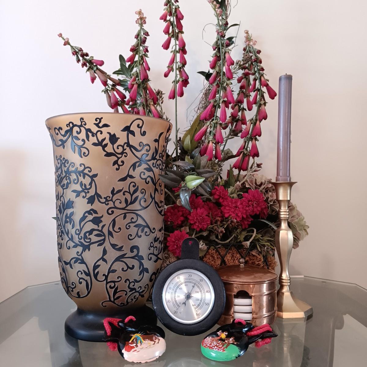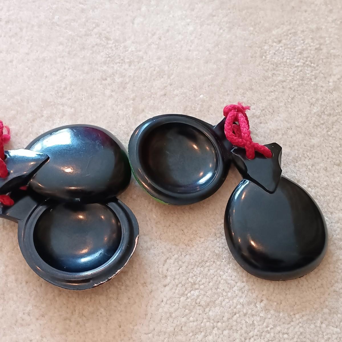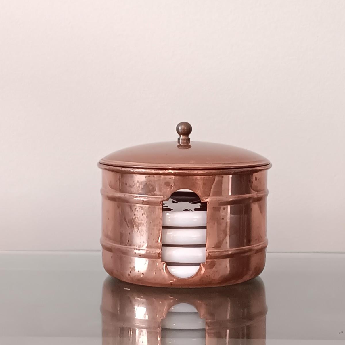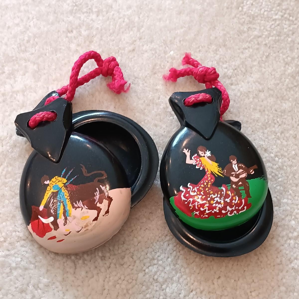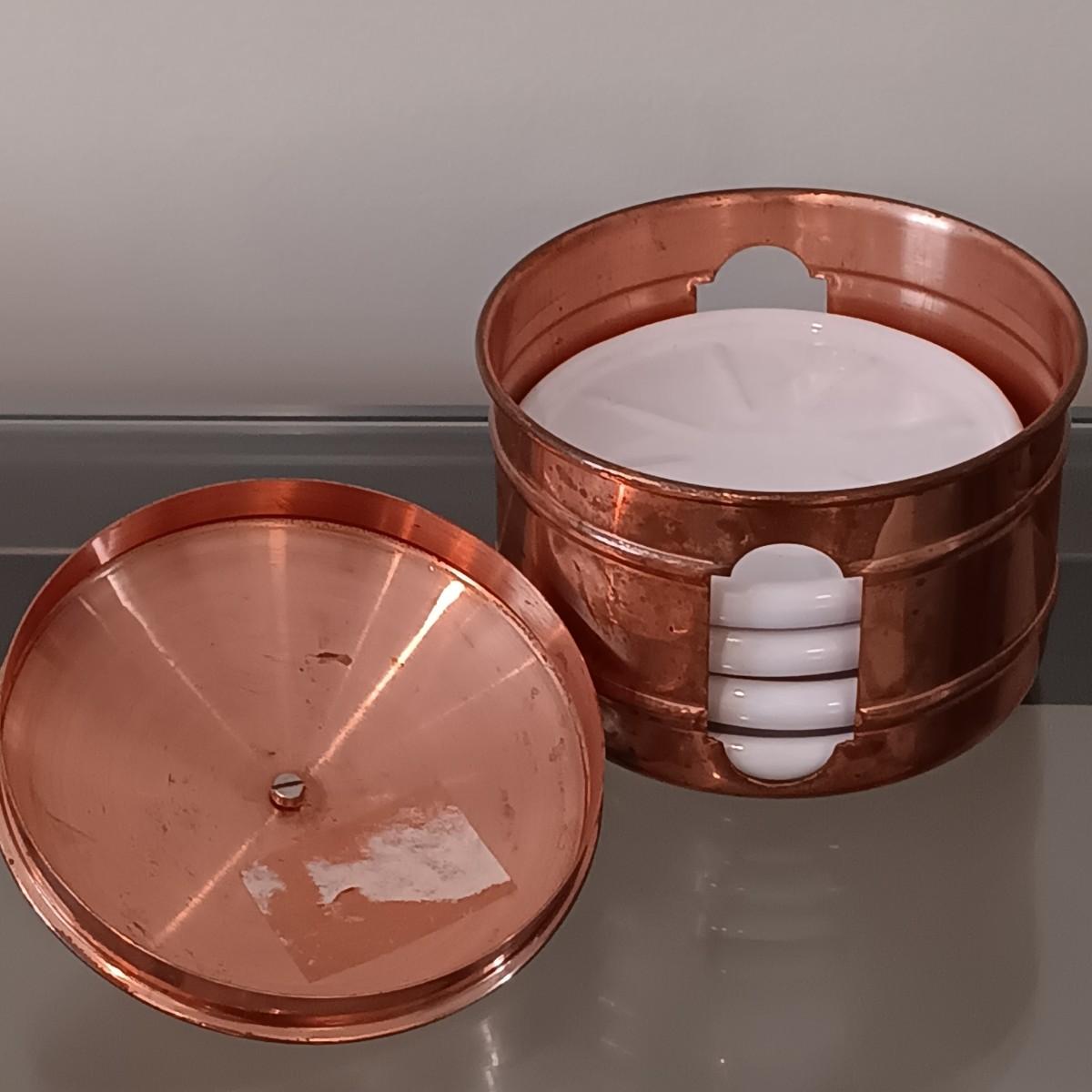 LOT 38: Vintage Copper Cased Coasters, Handpainted Castanets, Brass Candlestick & More