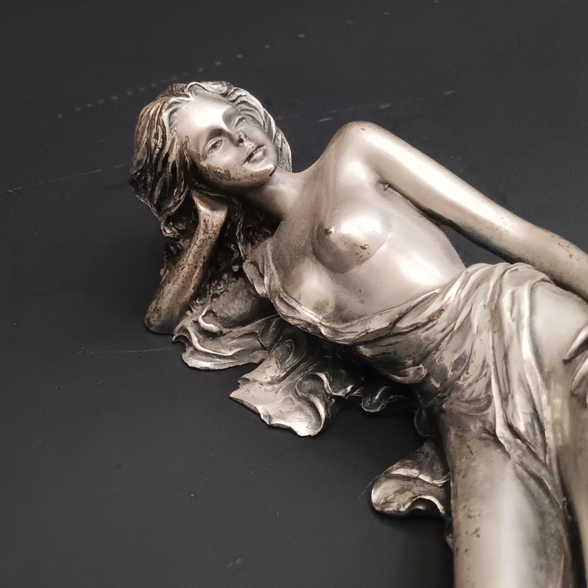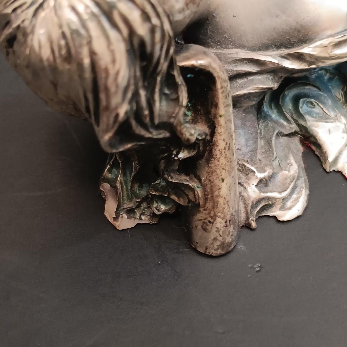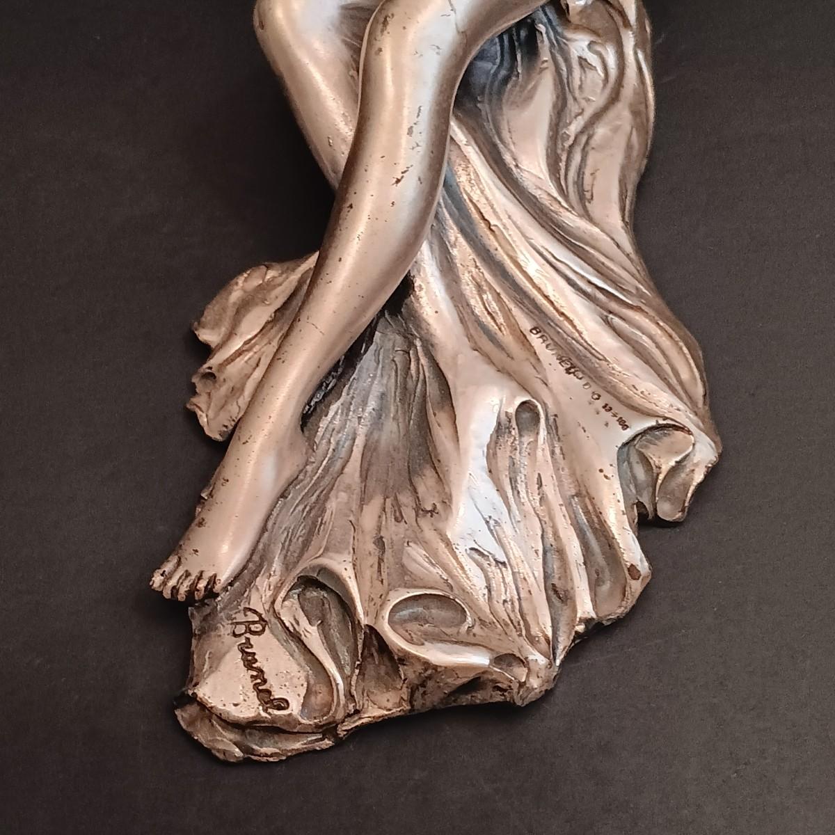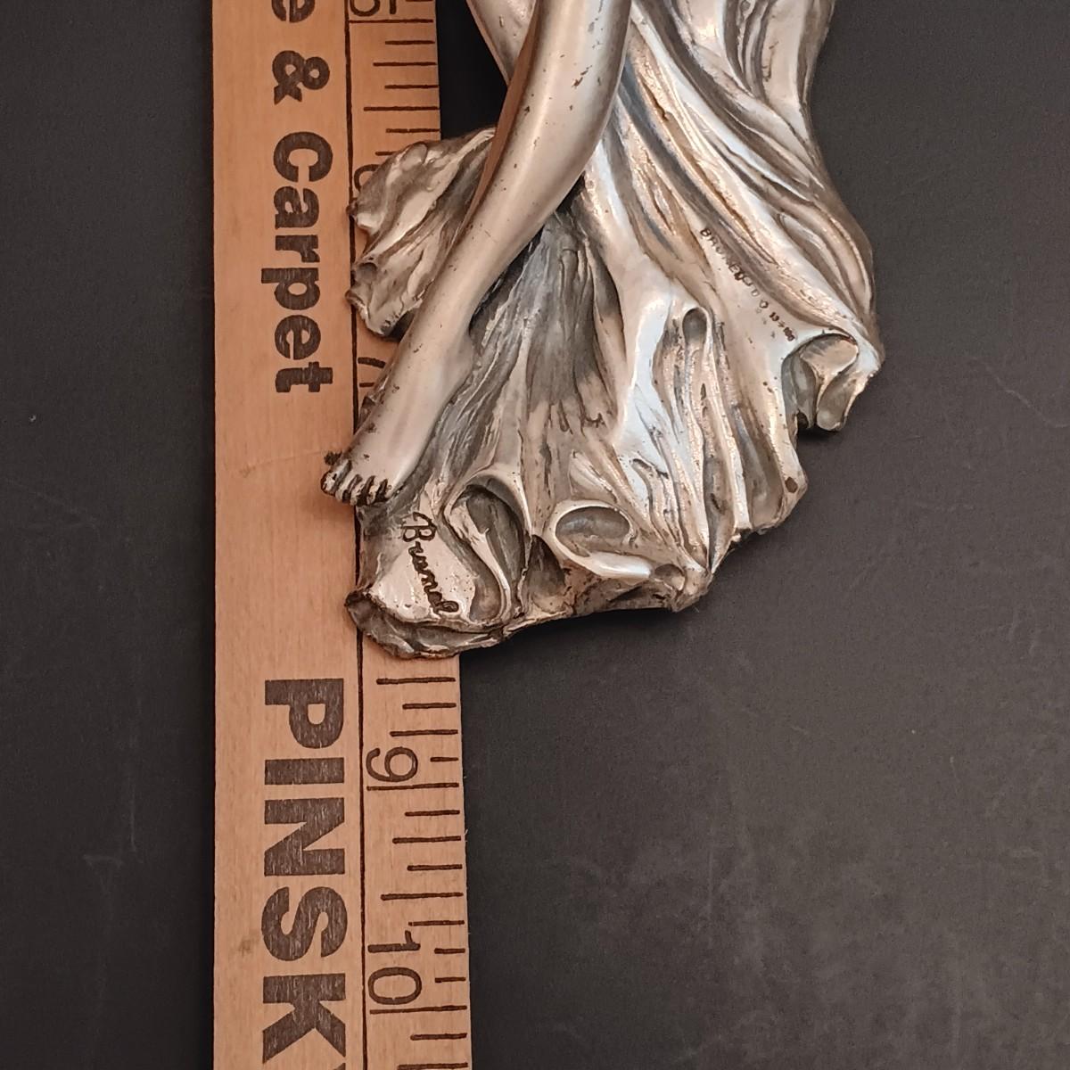 The statue is very light and has an almost metallic surface that feels like it could be a thin coating over another material. Possibly a very light aluminum cast or something similar.