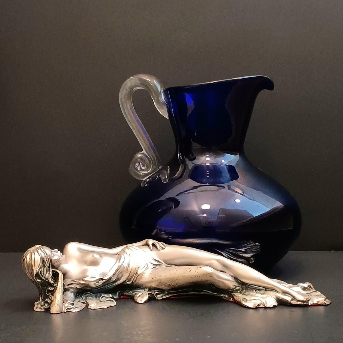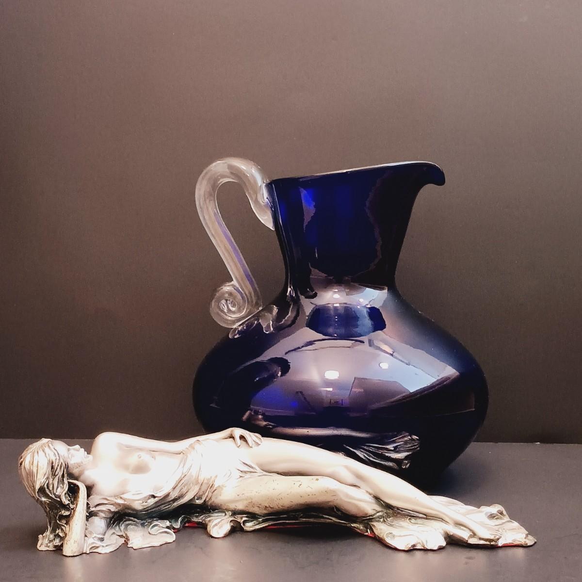 LOT 46: Vintage Brunel Figurine with Cobalt Blue Hand Made Pitcher