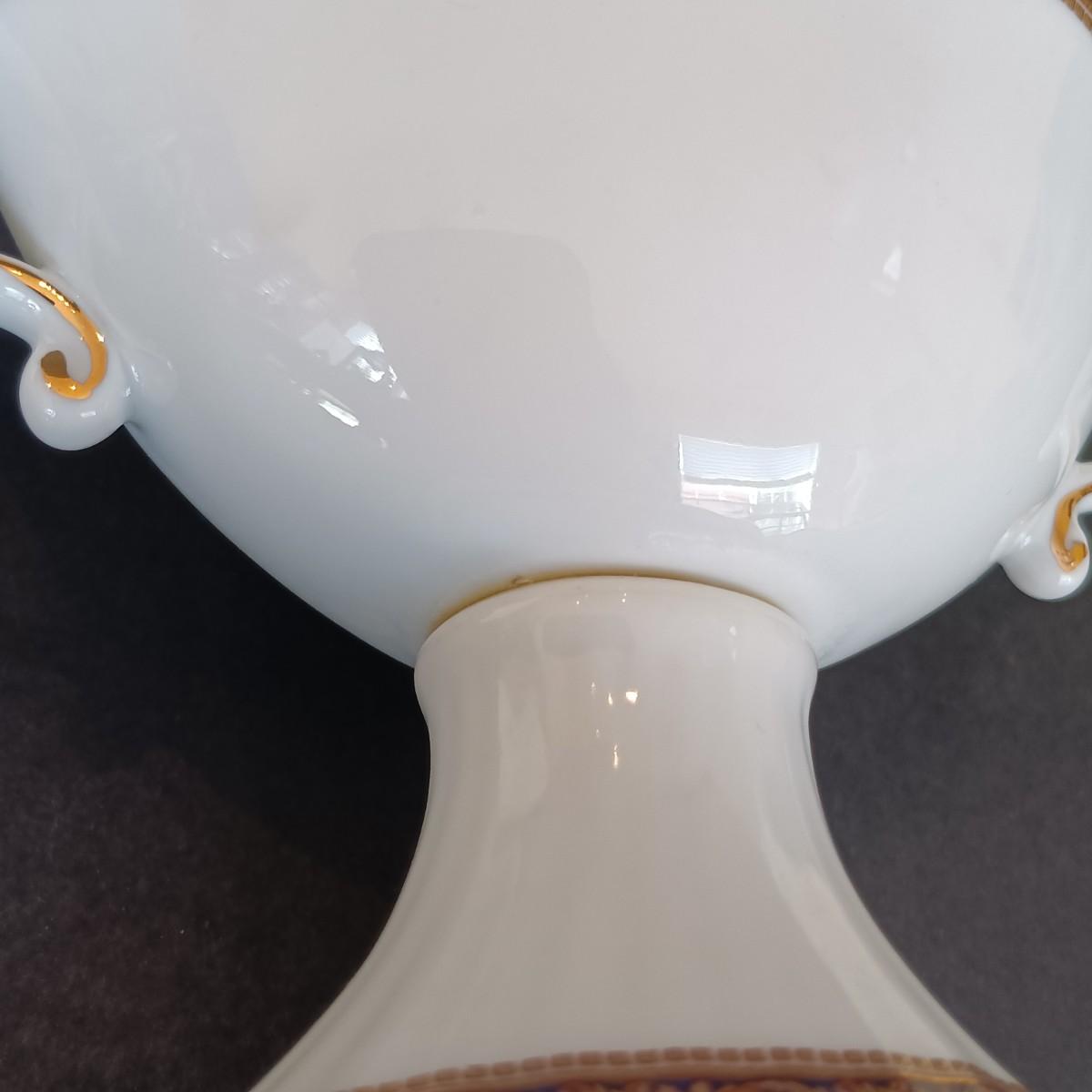 The Limoges has a yellow discoloration around the stem that may be the mark of a previous repair.