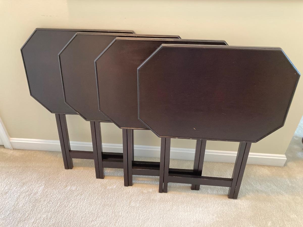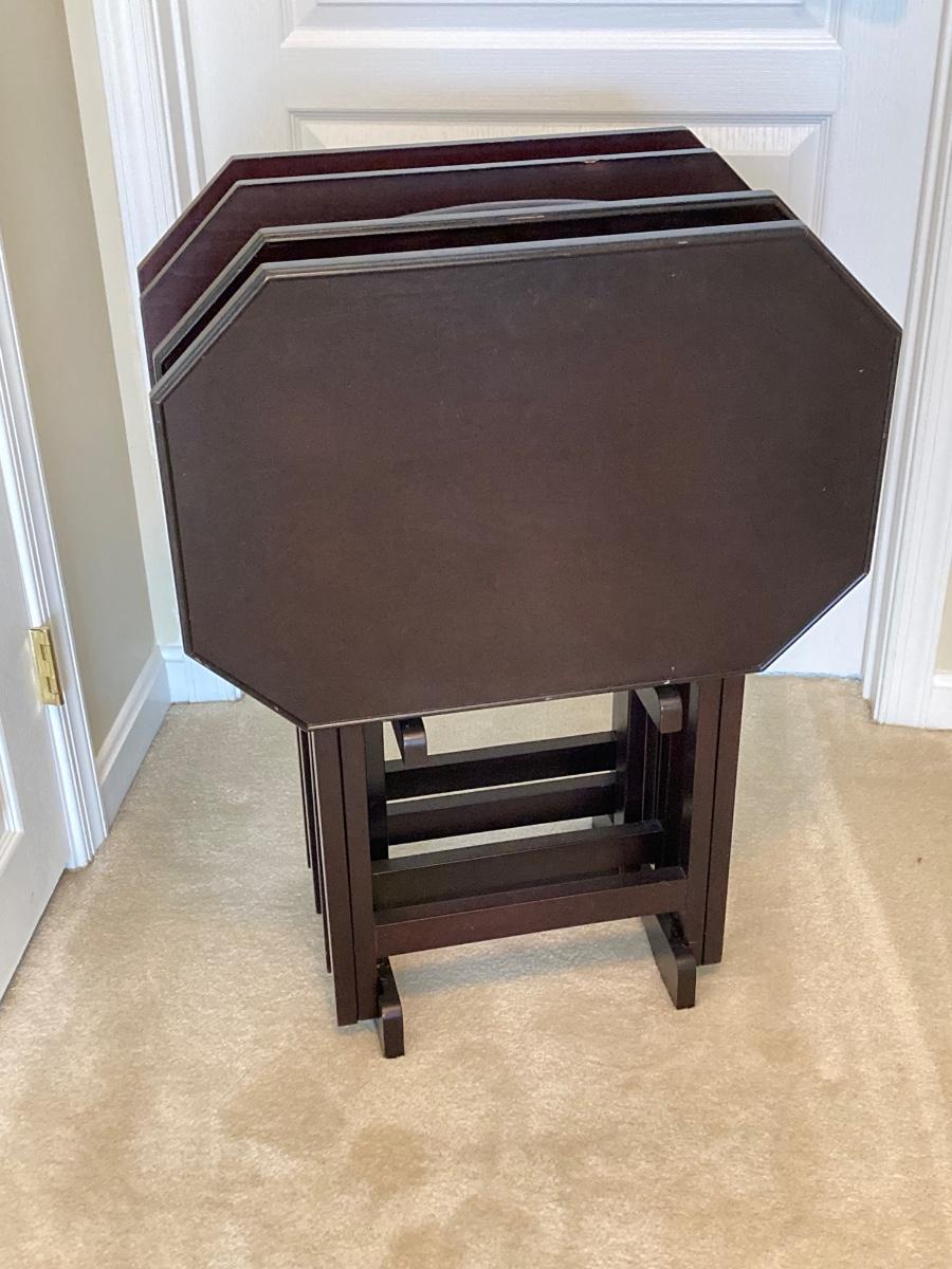 LOT 57U: The Bombay Furniture Company Wood TV Trays and Stand