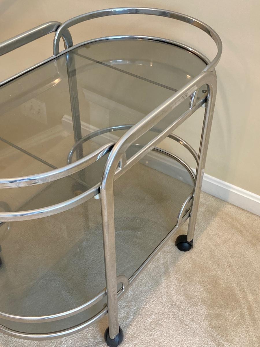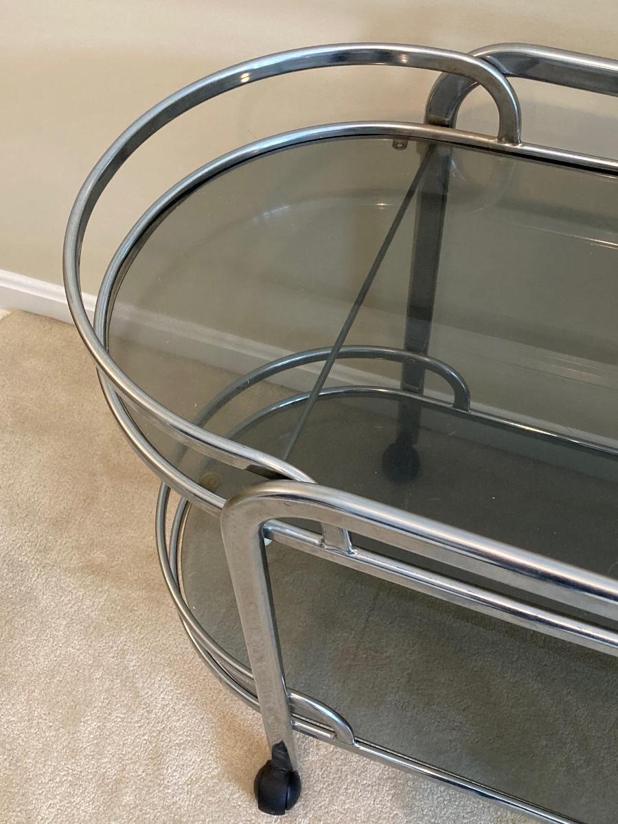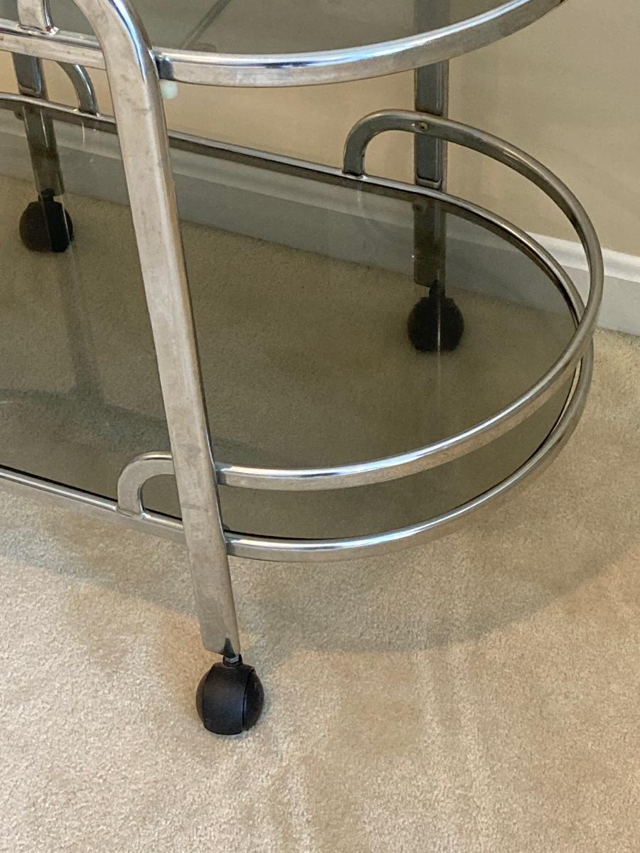 LOT 64U: Art Deco Chrome and Smoked Glass Rolling Bar / Cart