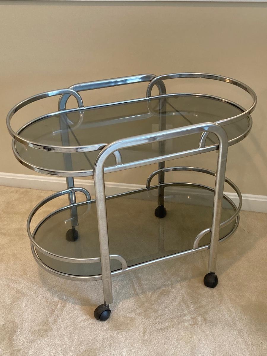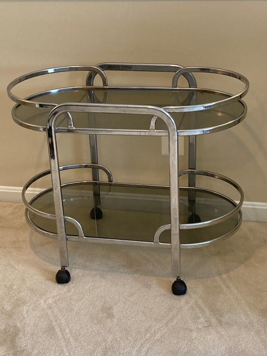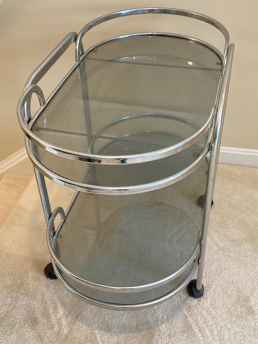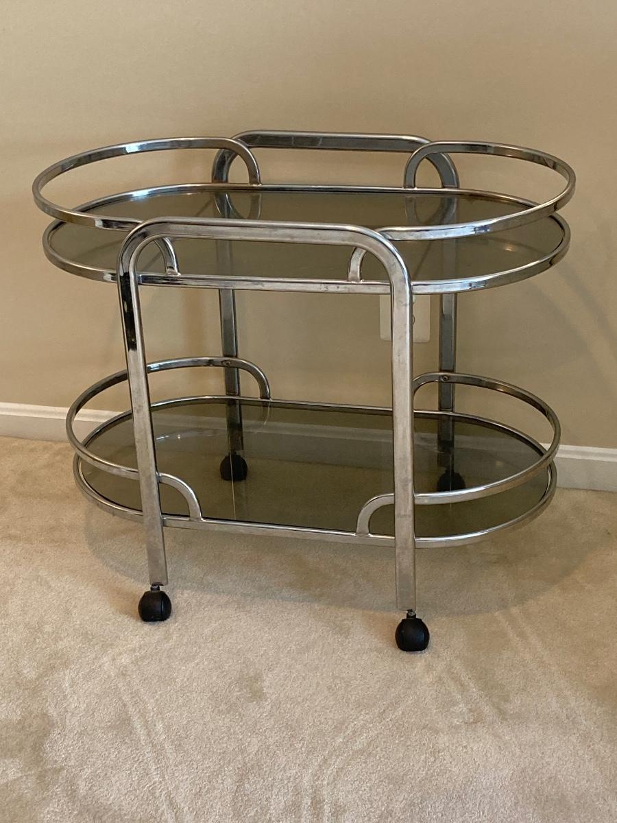 LOT 64U: Art Deco Chrome and Smoked Glass Rolling Bar / Cart