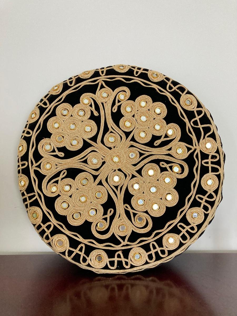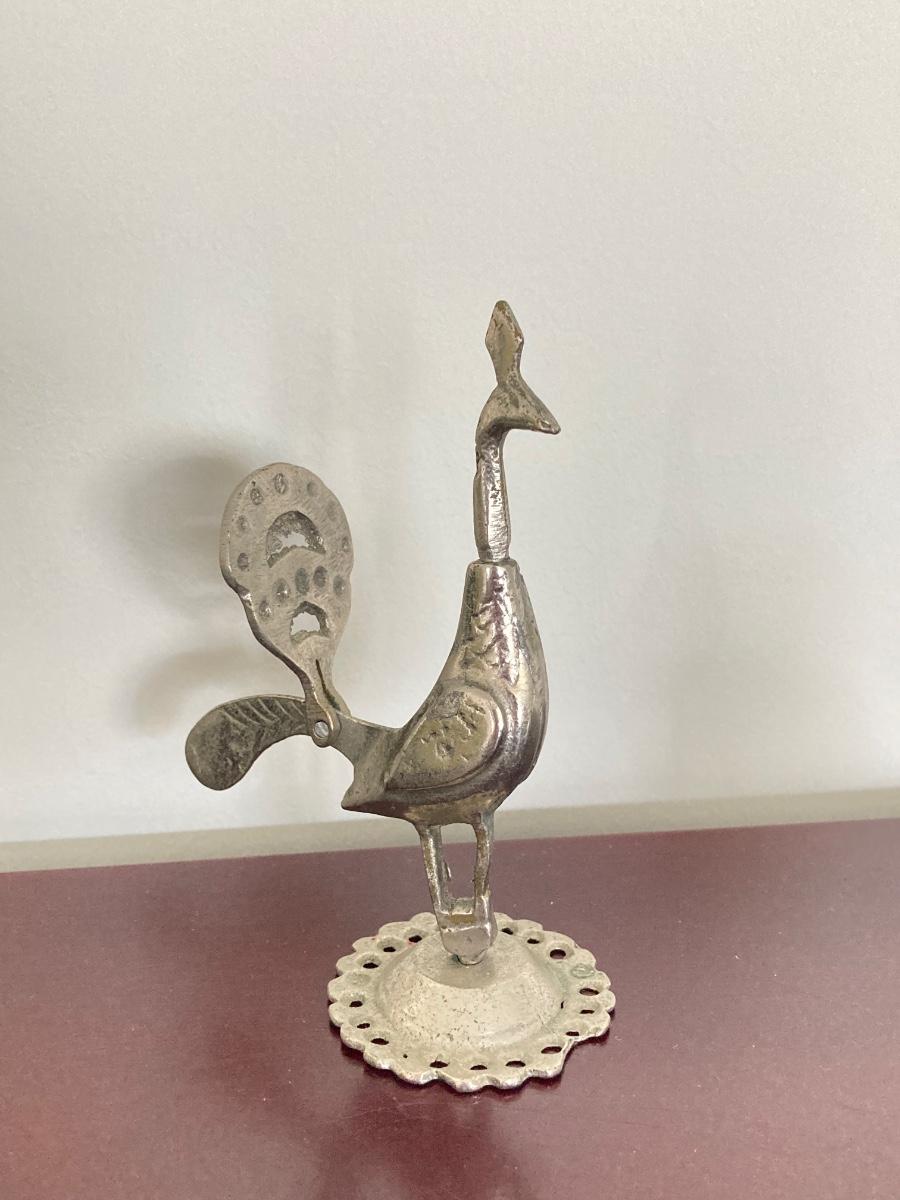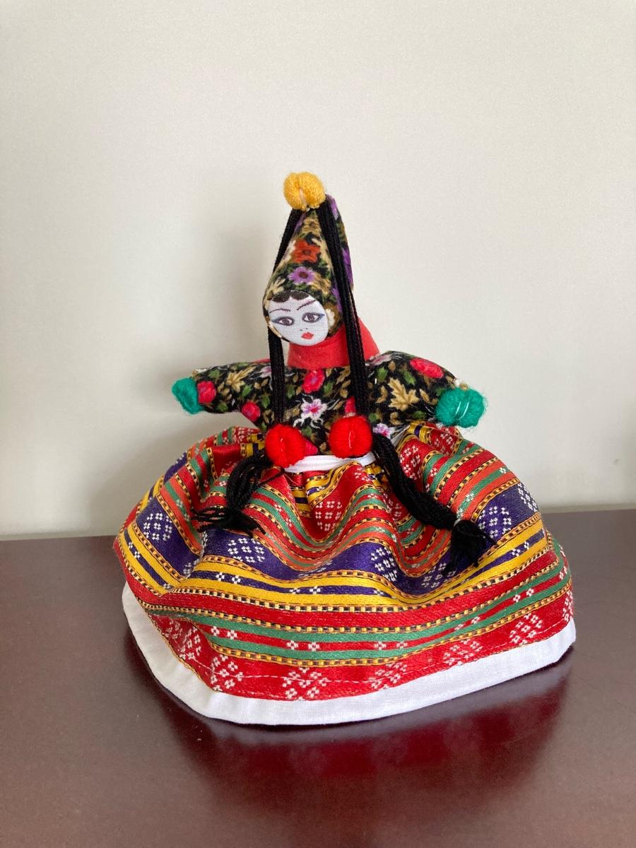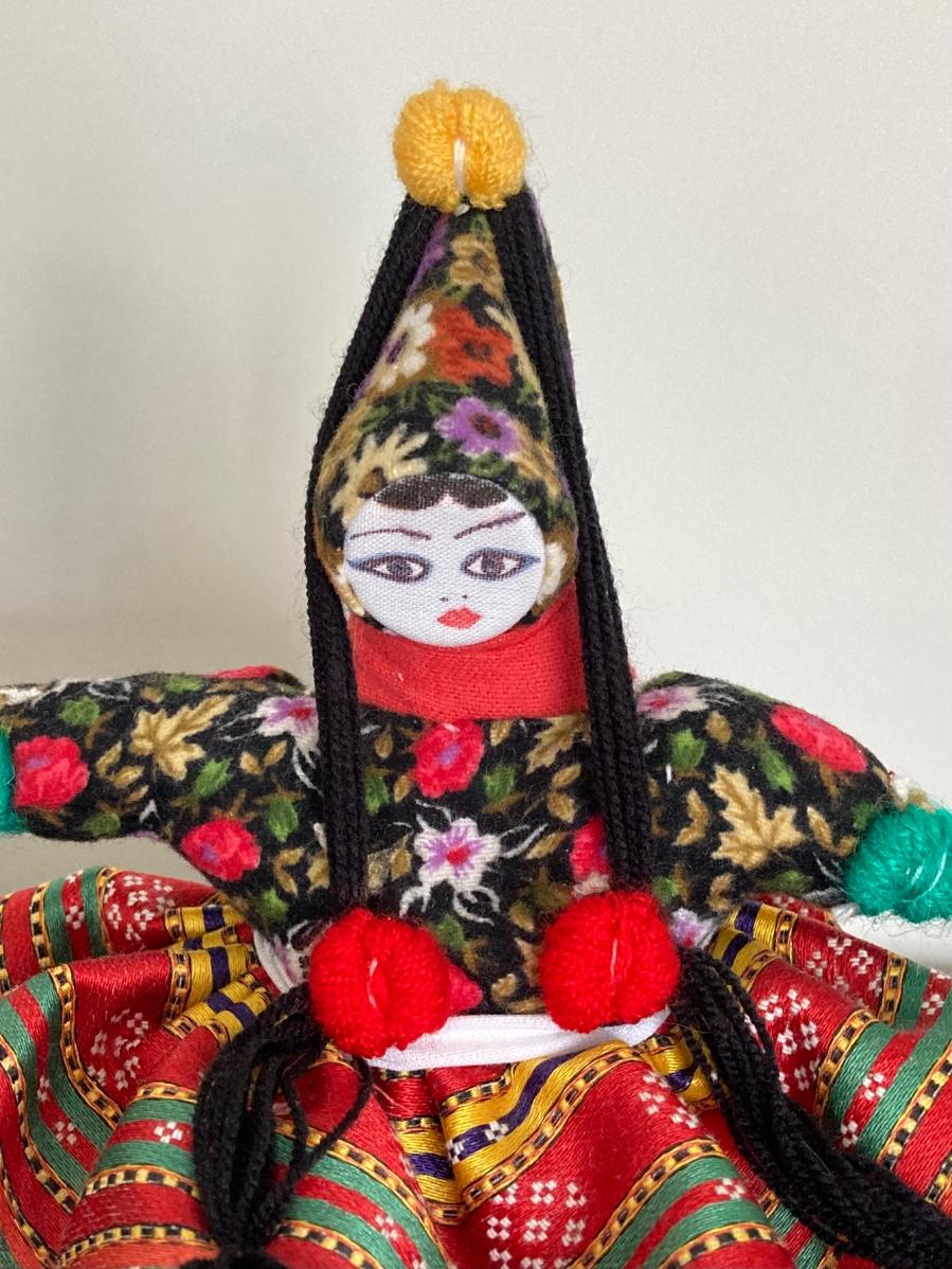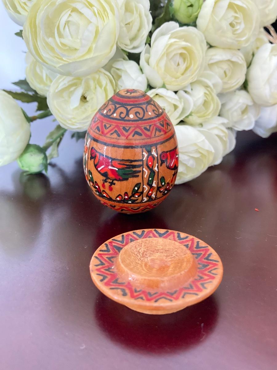 LOT 67U: Hand Crafted Collection and More - Folk Art Doll, Round Bohemian Style Pillow, Wooden Egg, Carved Horse and Peacock Figurine