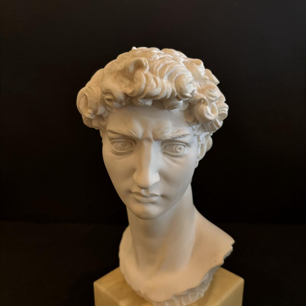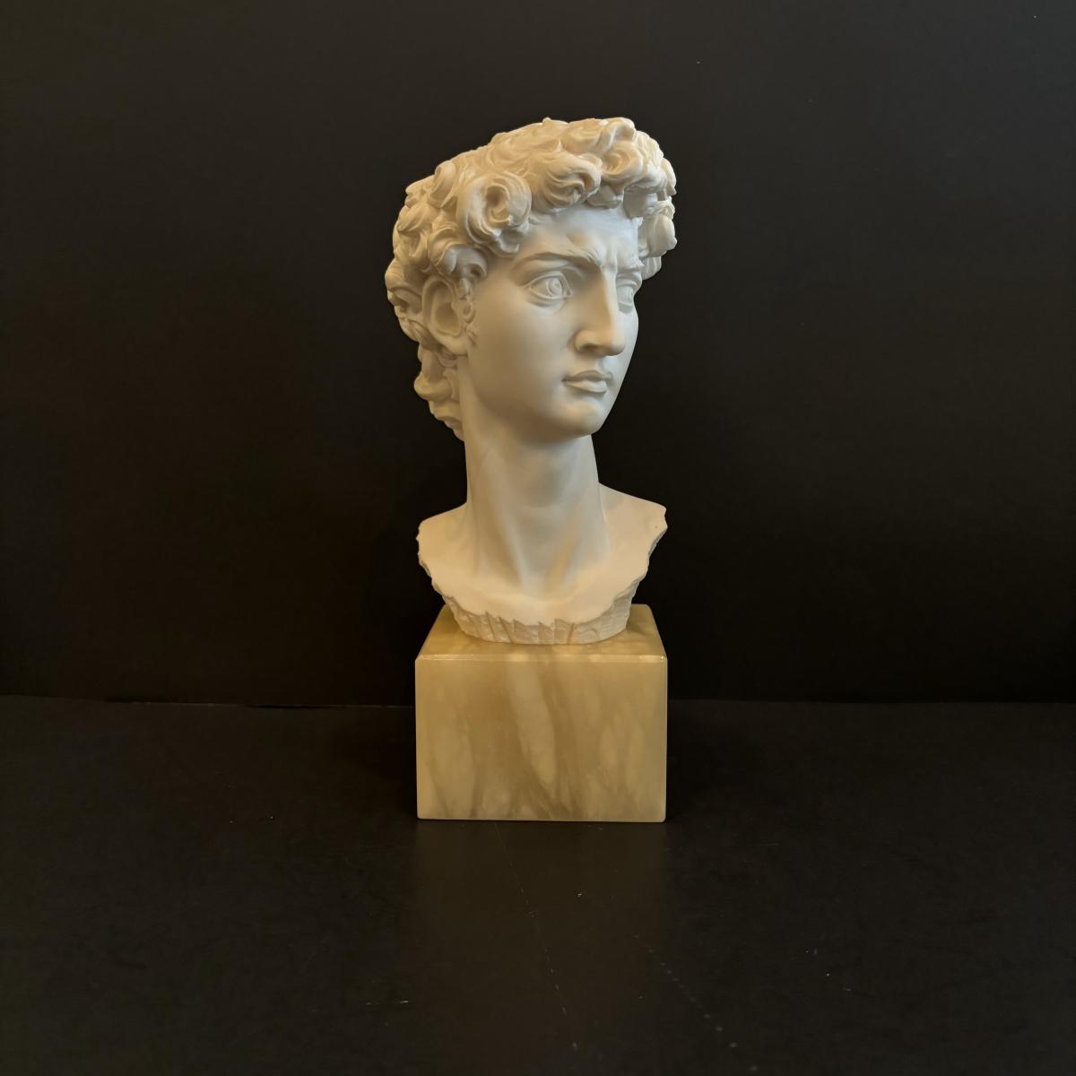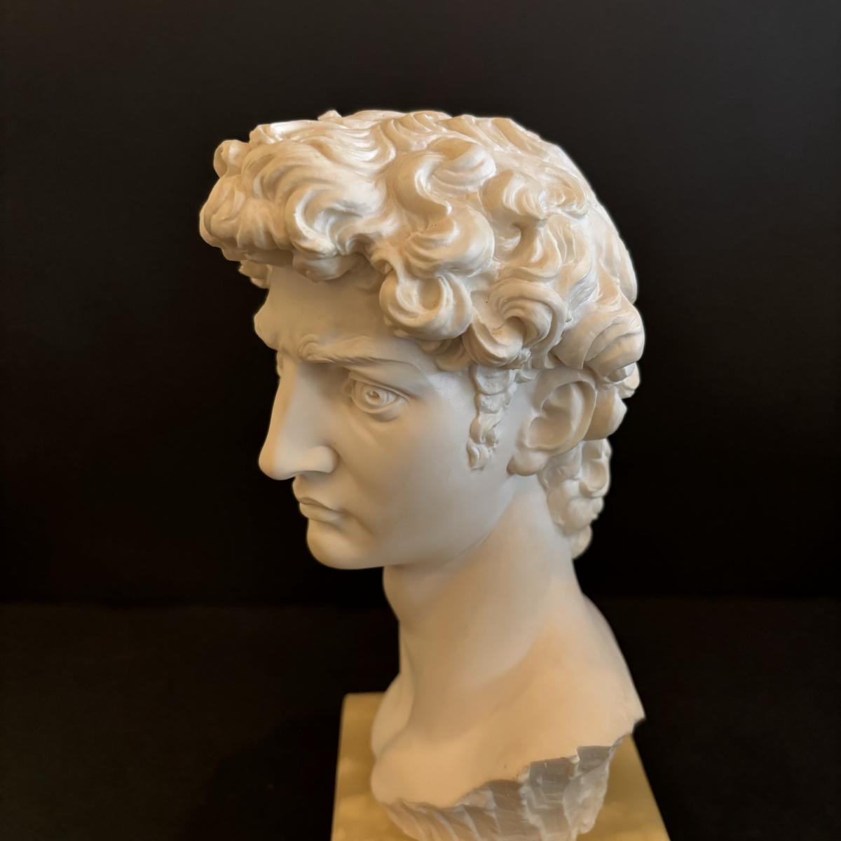 LOT 86: Vintage Michelangelo's Head of David Sculpture by A Santini Italy on Marble Base