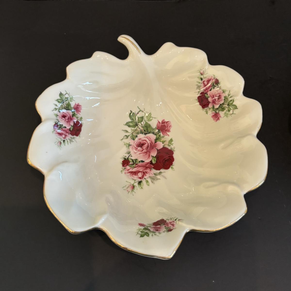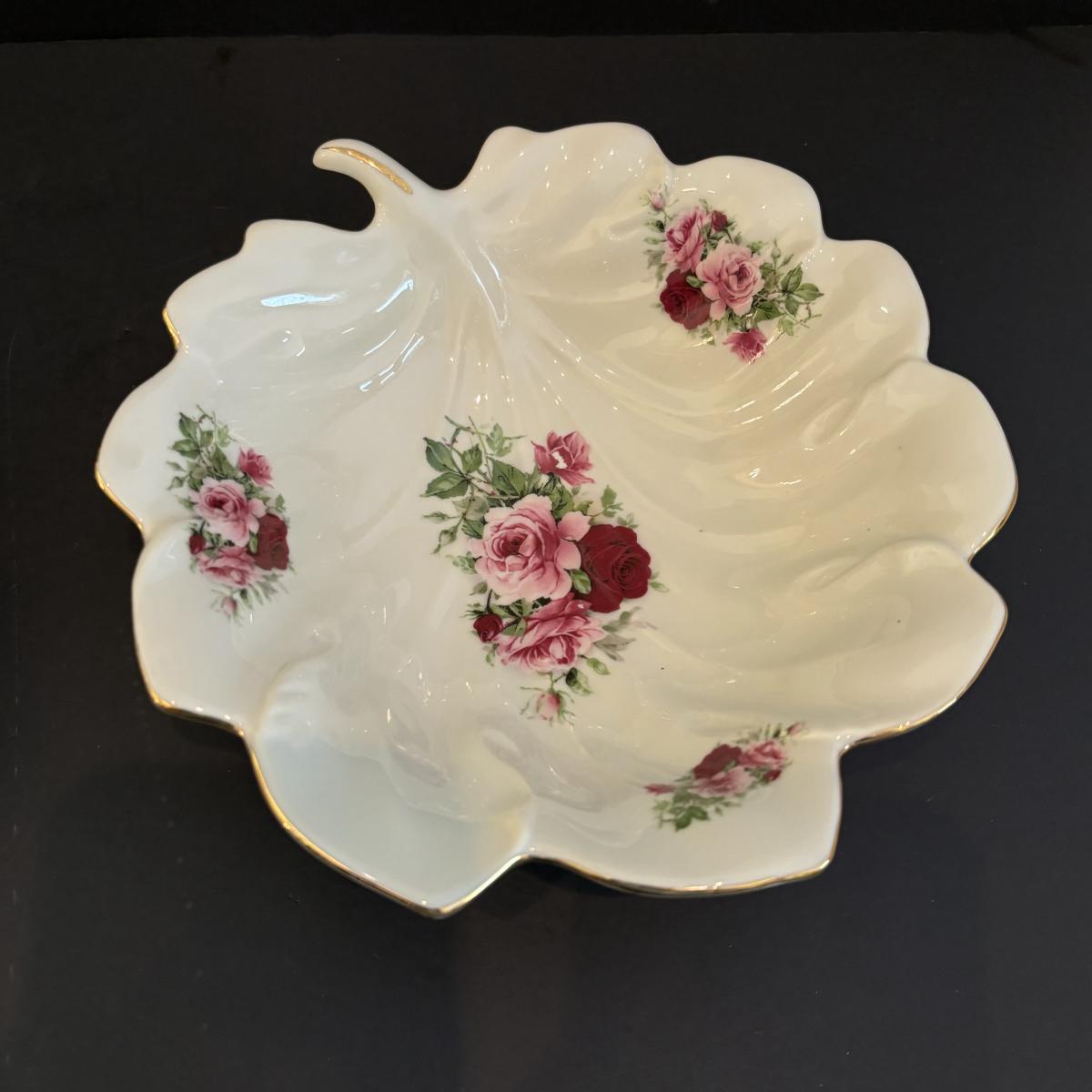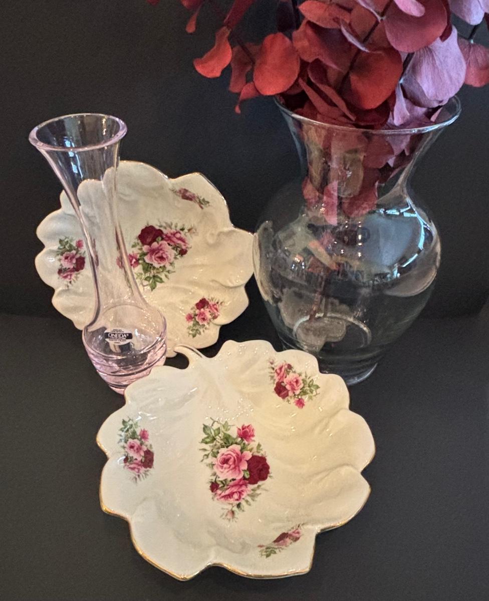 LOT 88: Oneida Pink Posy Vase, Formalities by Baum Bros Victorian Rose Leaf Motif Serving Bowls & More
