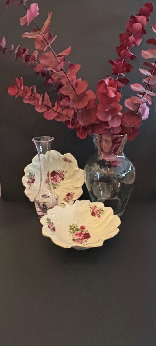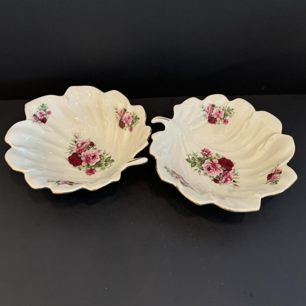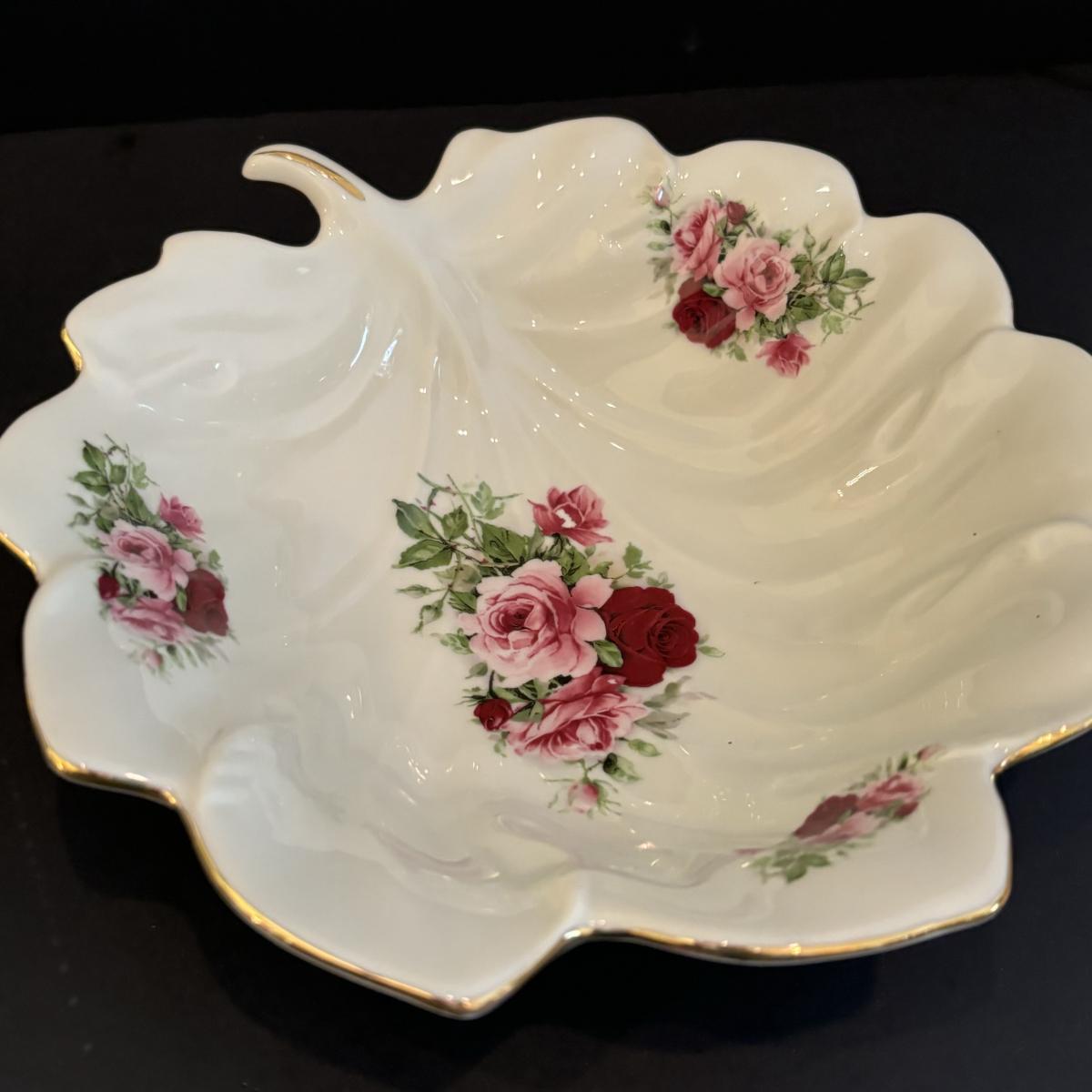 LOT 88: Oneida Pink Posy Vase, Formalities by Baum Bros Victorian Rose Leaf Motif Serving Bowls & More