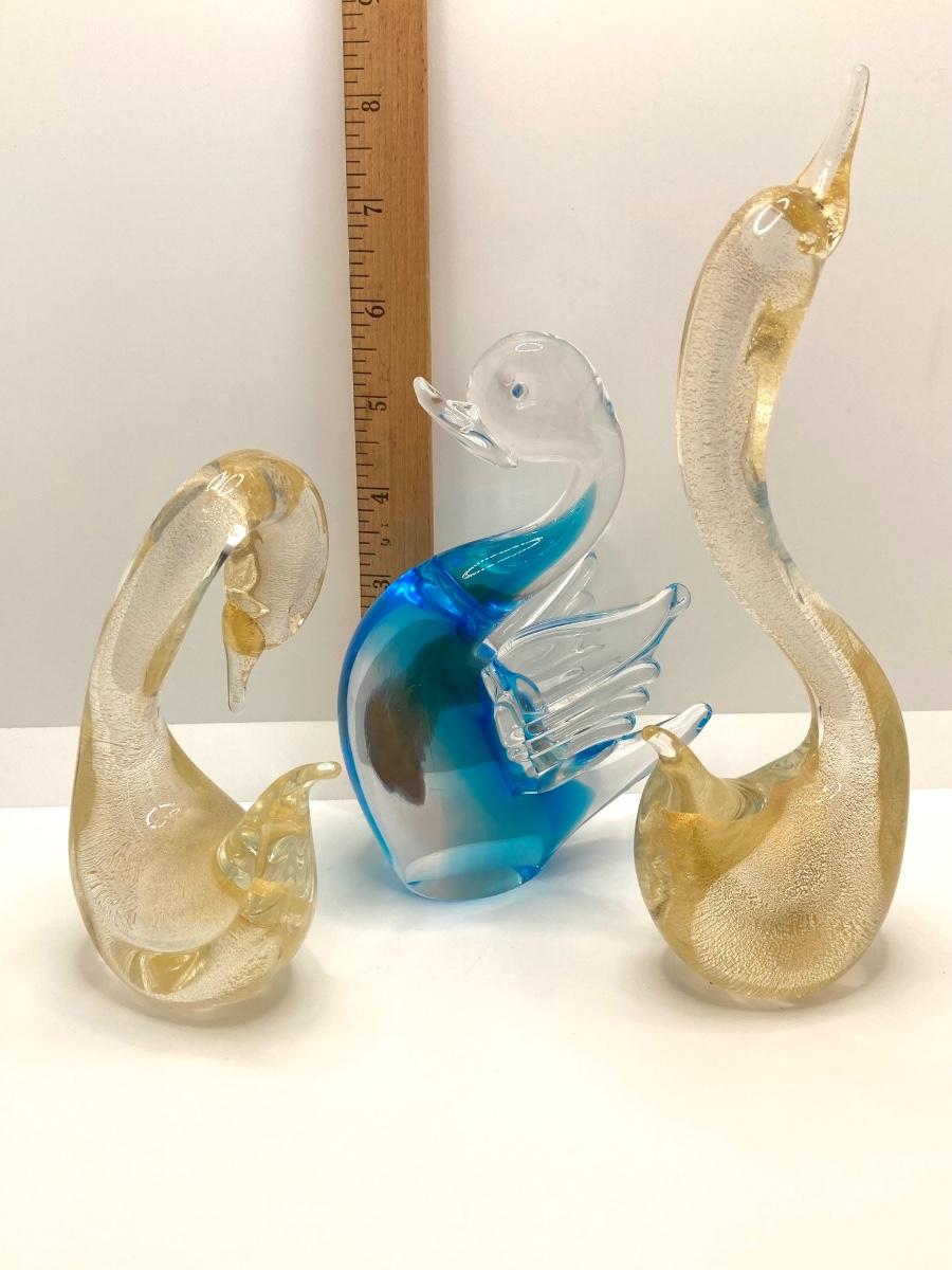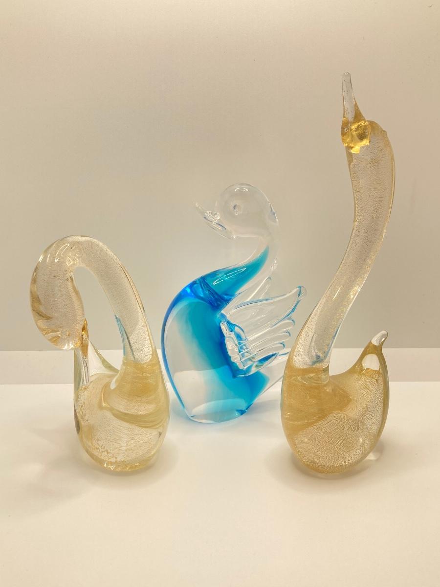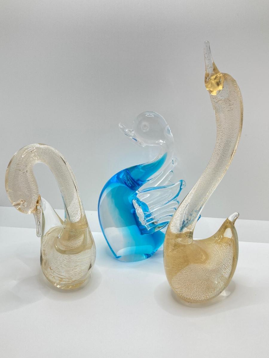 LOT 110D: Collection of Blue and Gold Murano Style Art Glass Swans