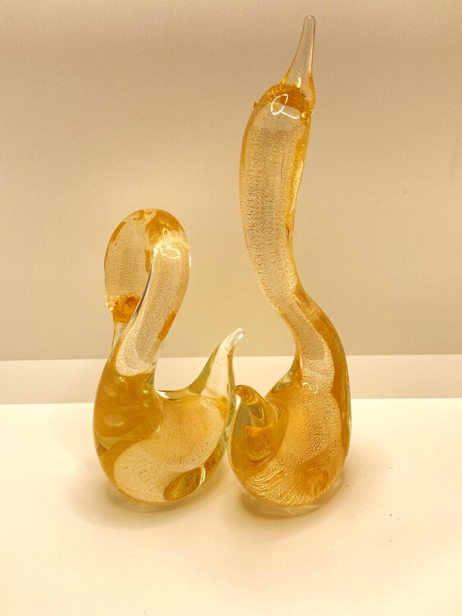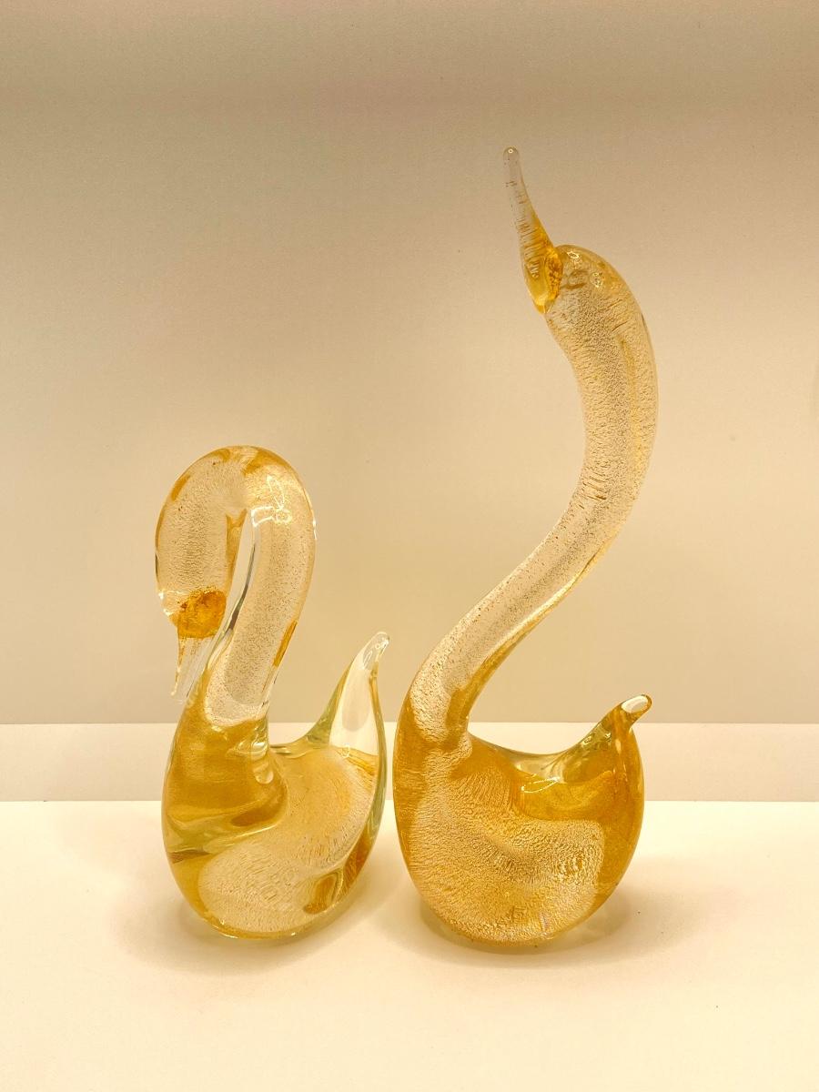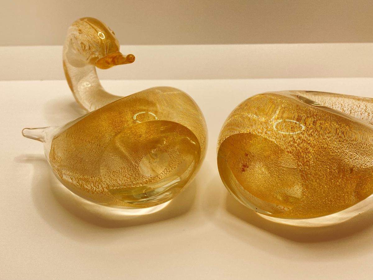 LOT 110D: Collection of Blue and Gold Murano Style Art Glass Swans