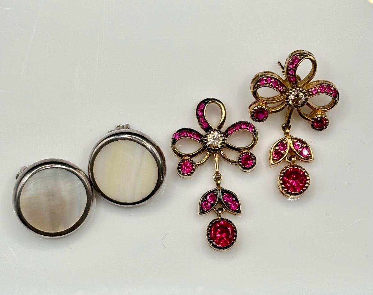 LOT 118: Sterling Silver of Pearl Round Earrings 925/Mexico & Multi-Color 925 Dangle Earrings Tw19.5g