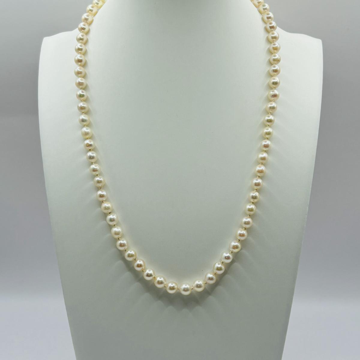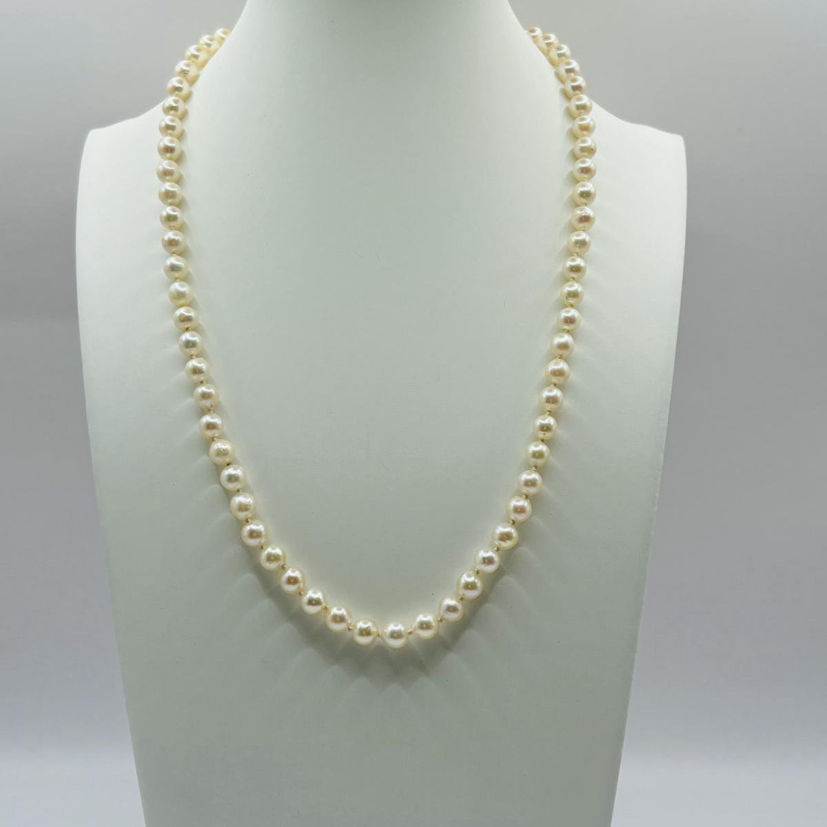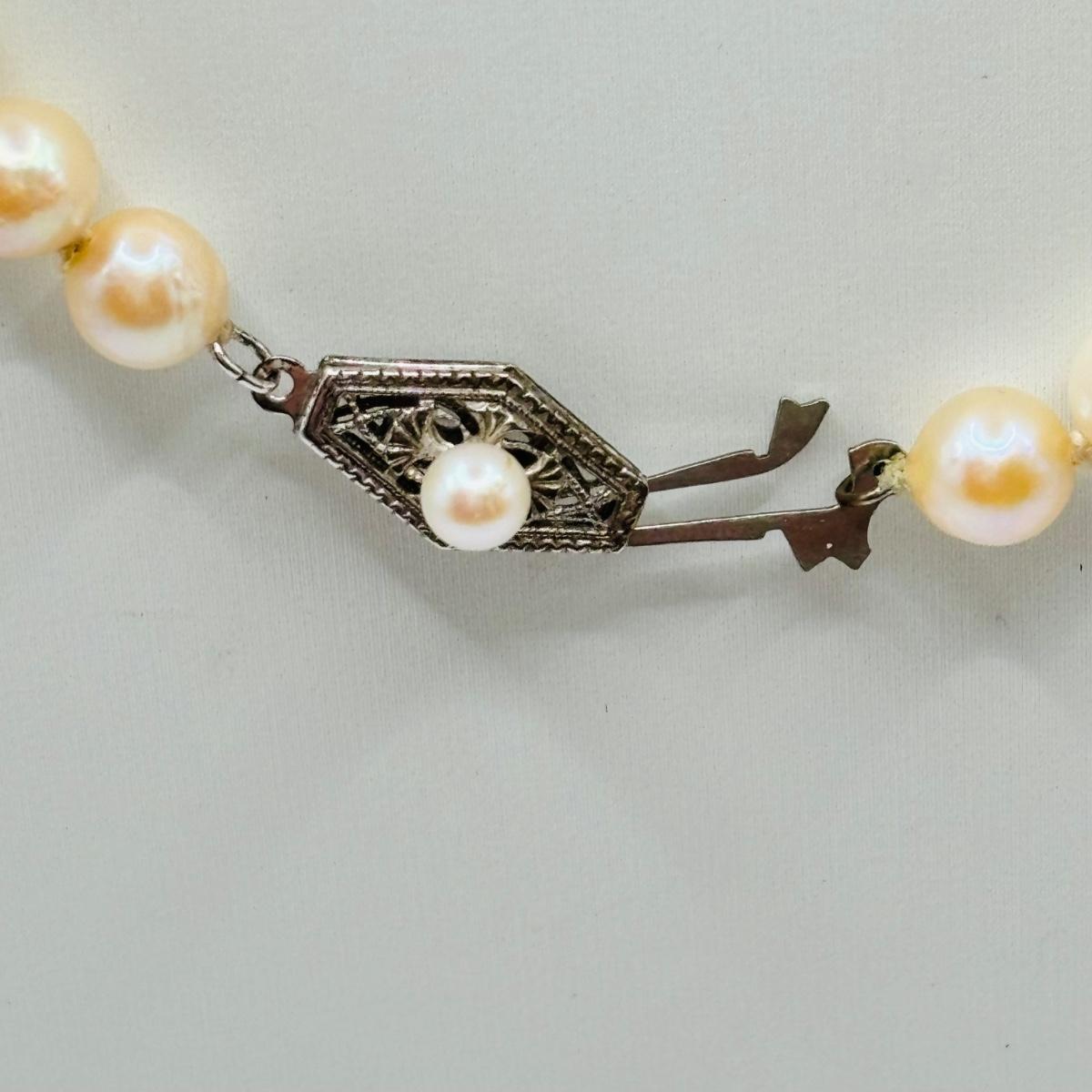 LOT 121: Strand of White Cultured Pearls w/Ornate Sterling Clasp 18.5"