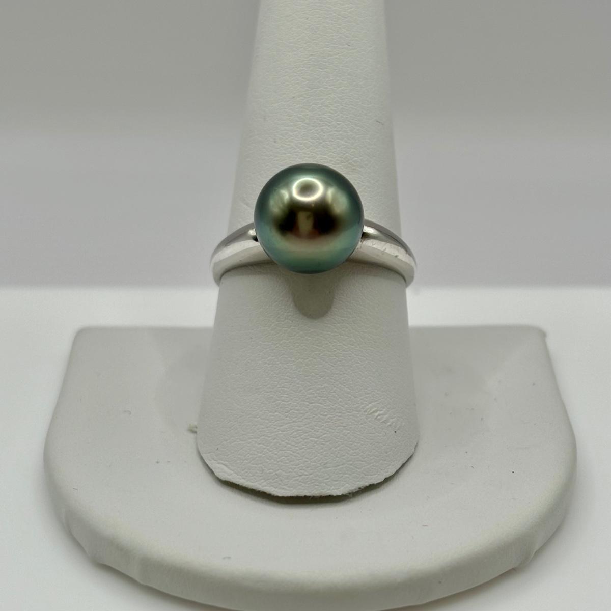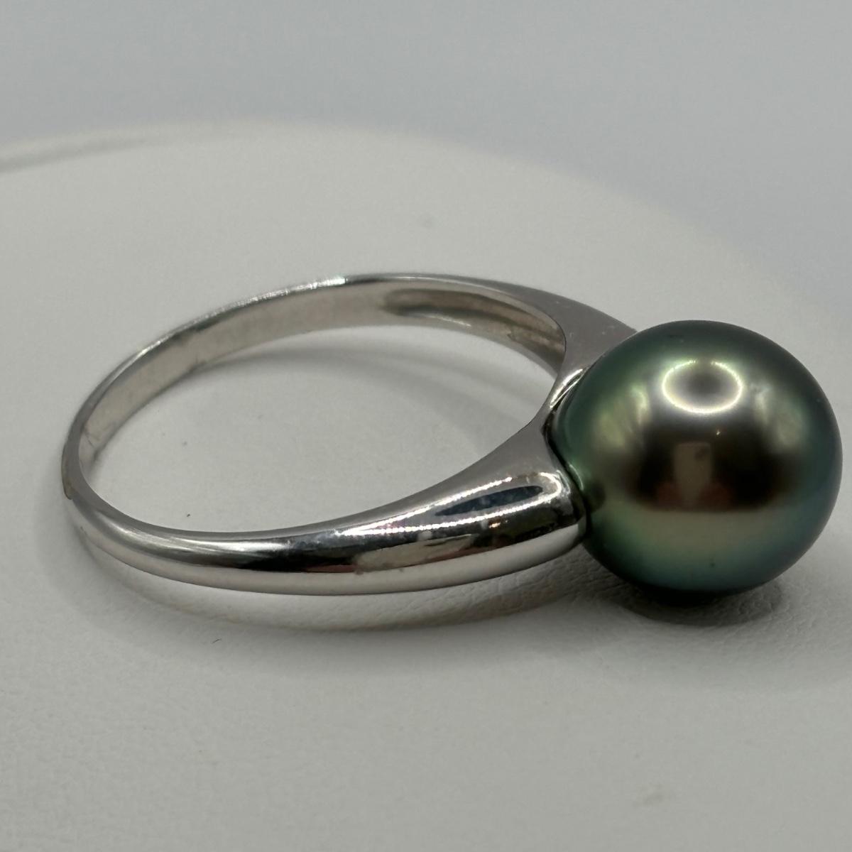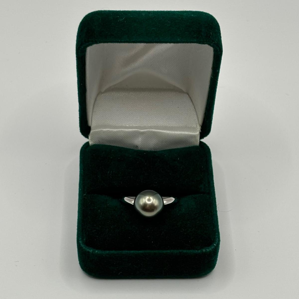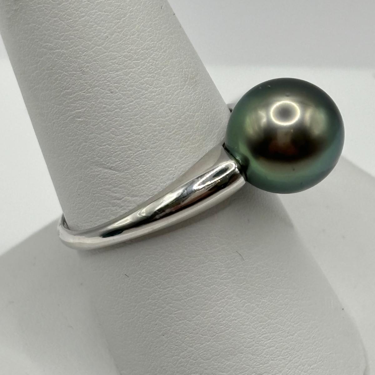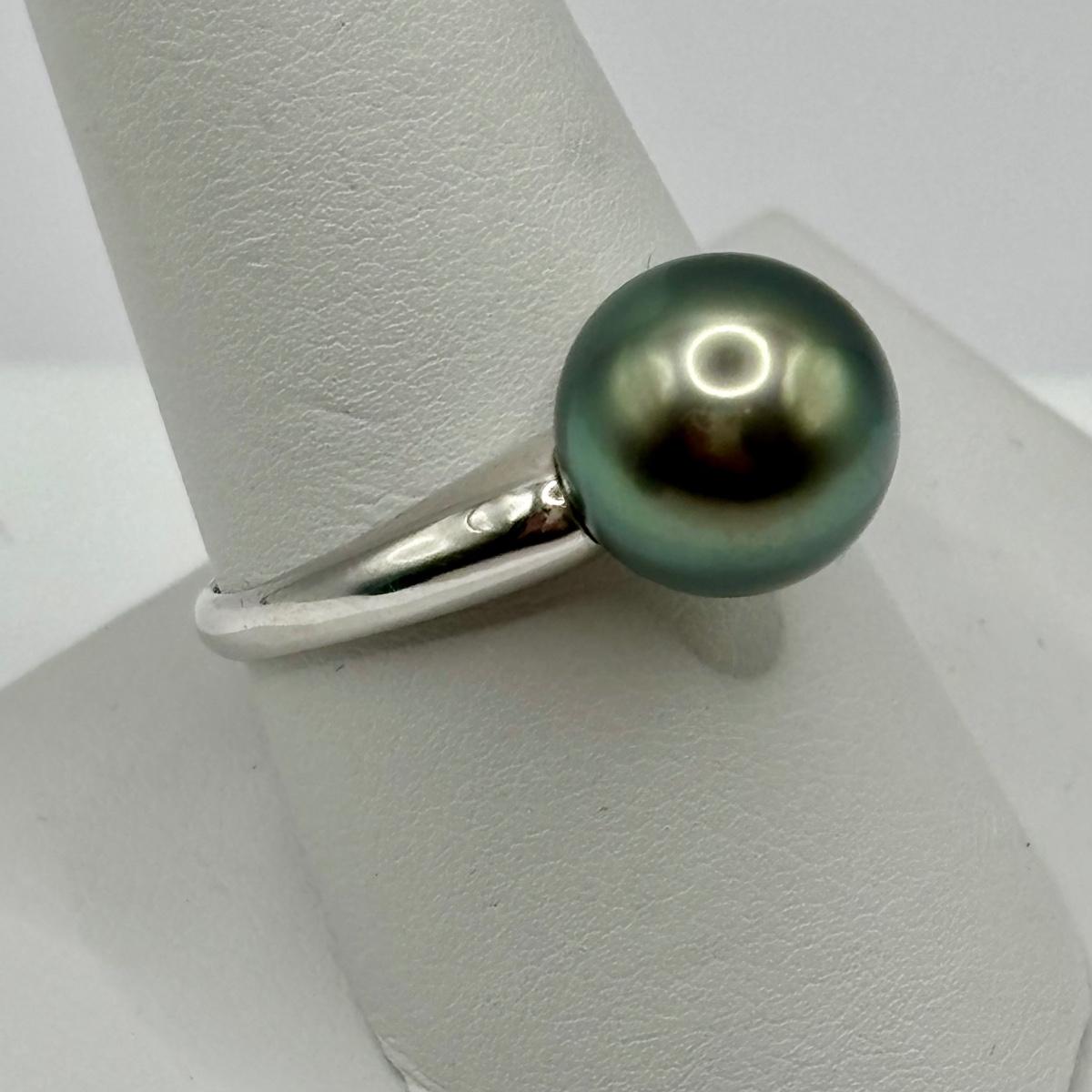 LOT 123: Tahitian Cultured Pearl Ring Set in 18k White Gold: Sz 9