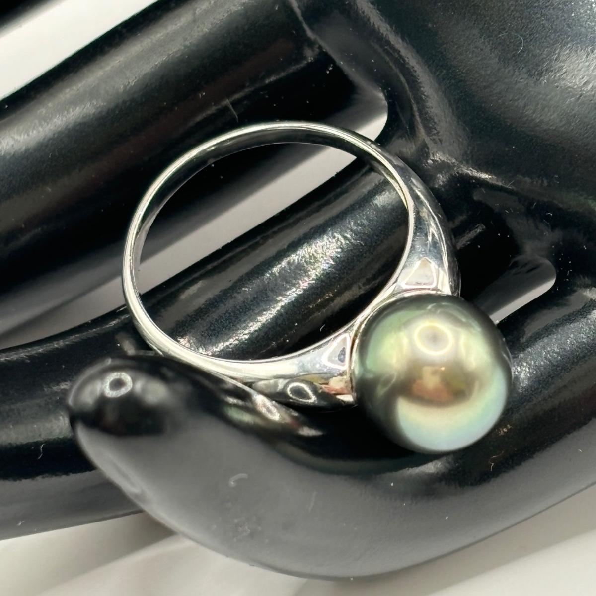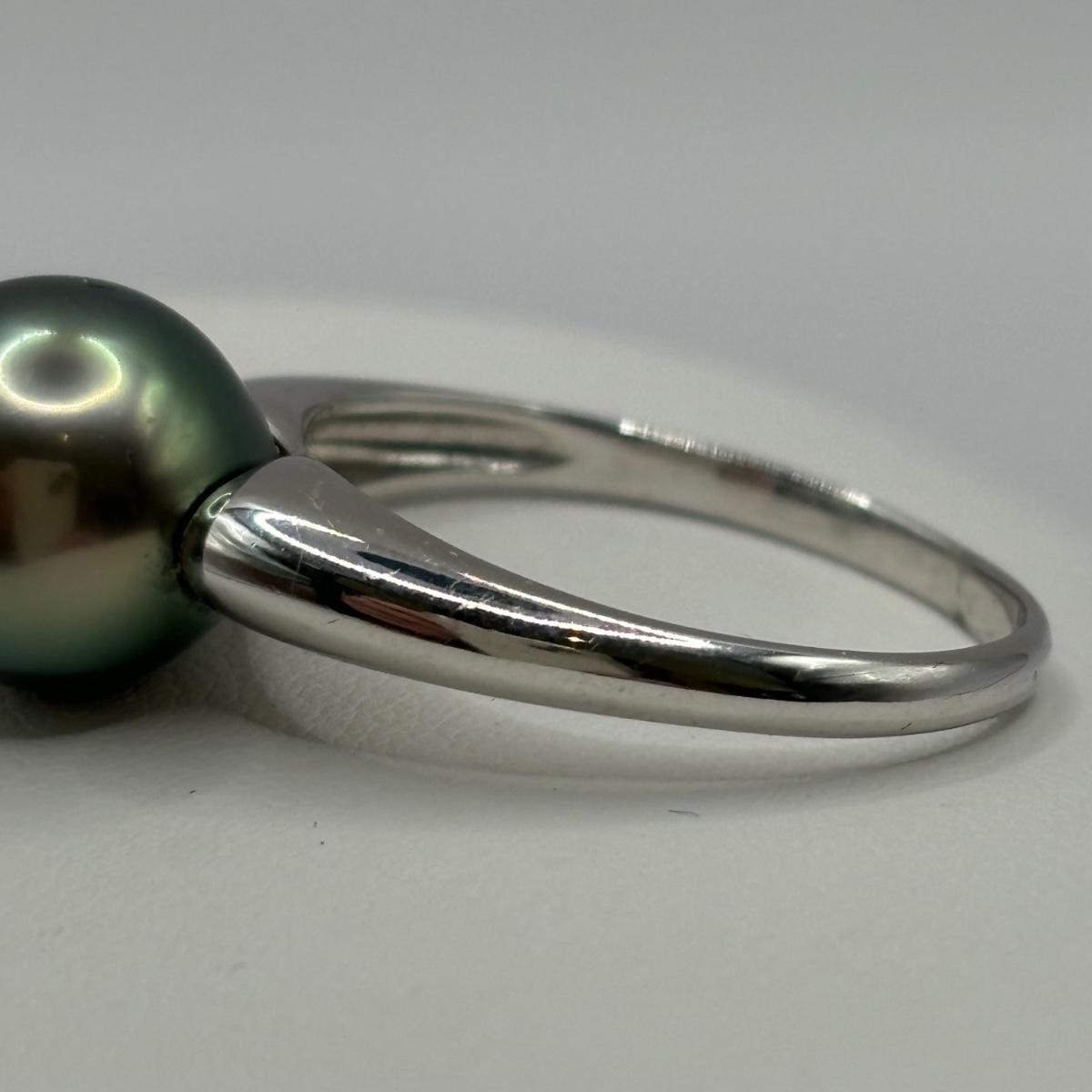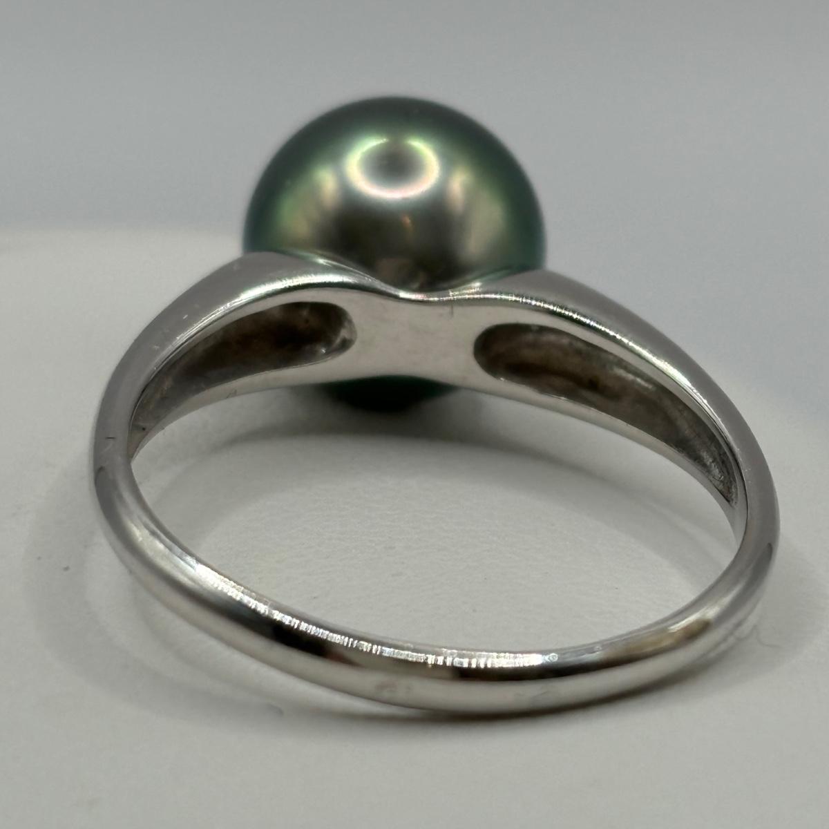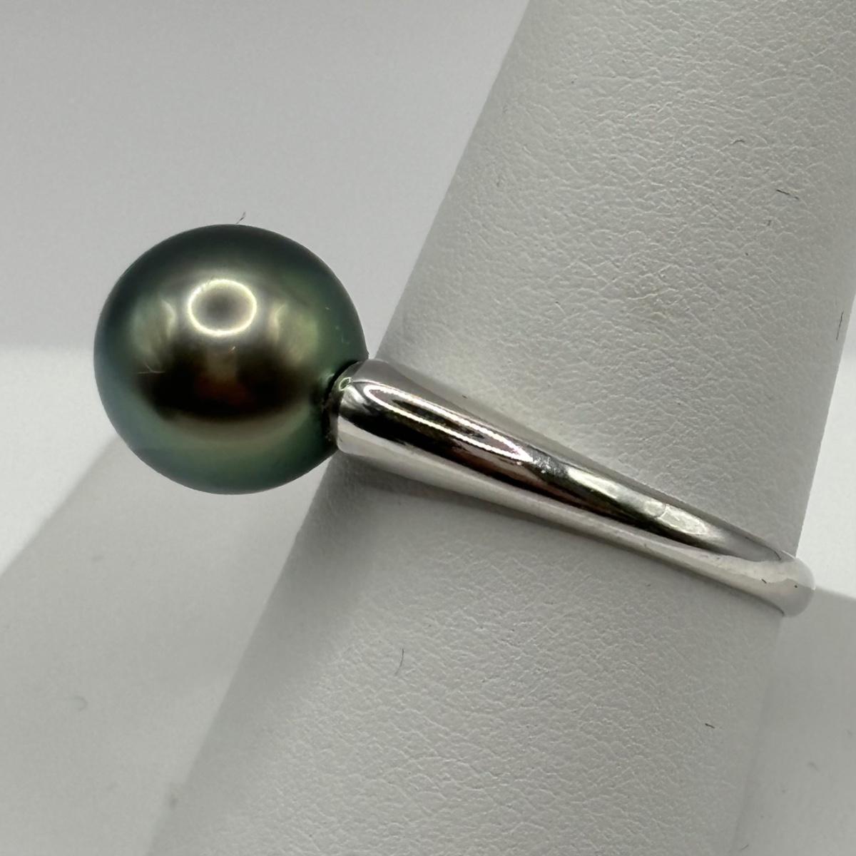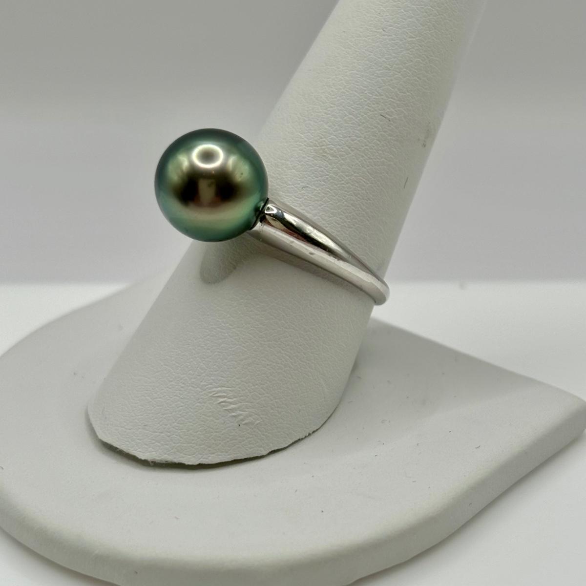 LOT 123: Tahitian Cultured Pearl Ring Set in 18k White Gold: Sz 9