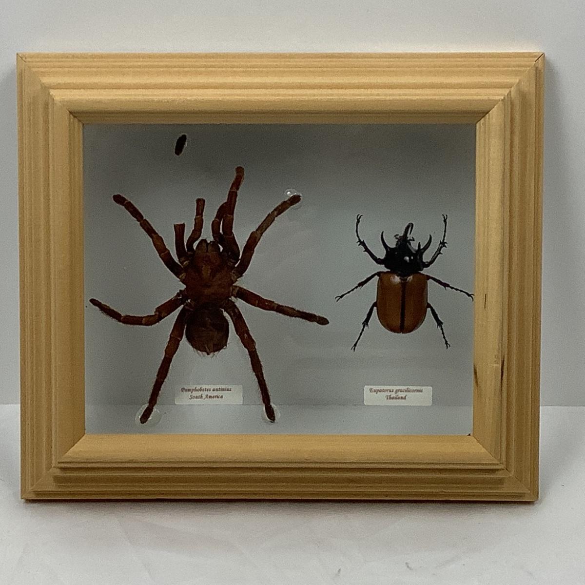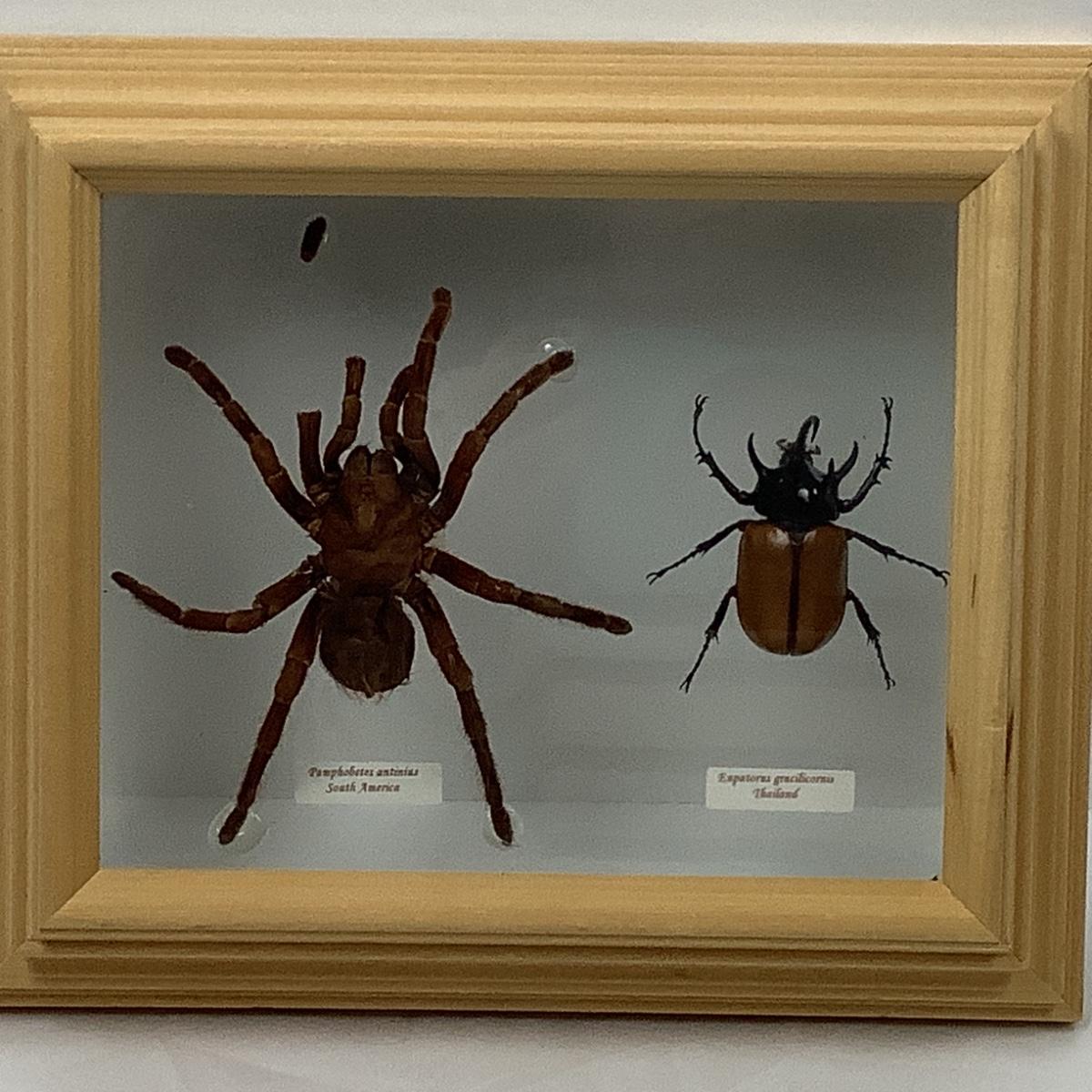 Pamphobetes Antinius - South America & Eupatorus Gracilicornis - Thailand in a Glass /Wood Case