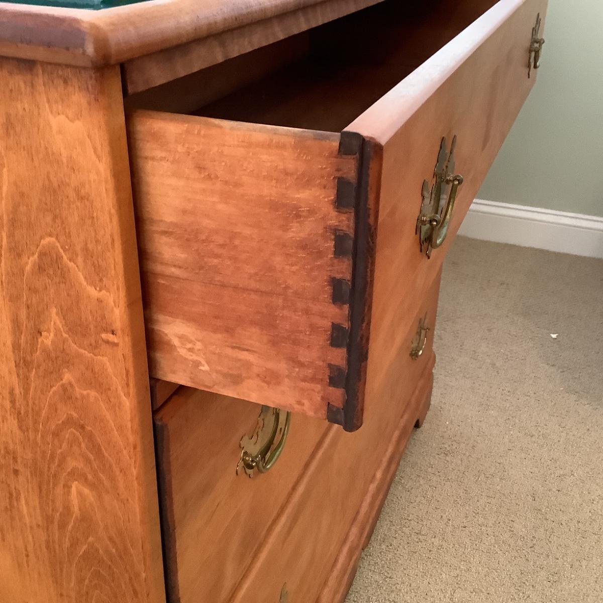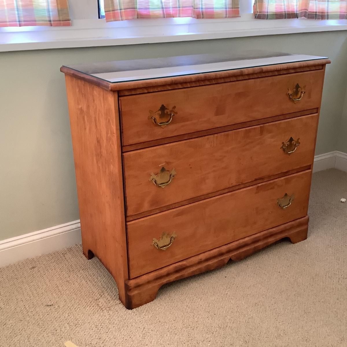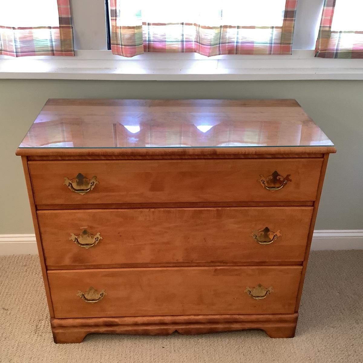 Lot. E - 1057 Vintage Three Drawer Maple Dresser with Glass Top