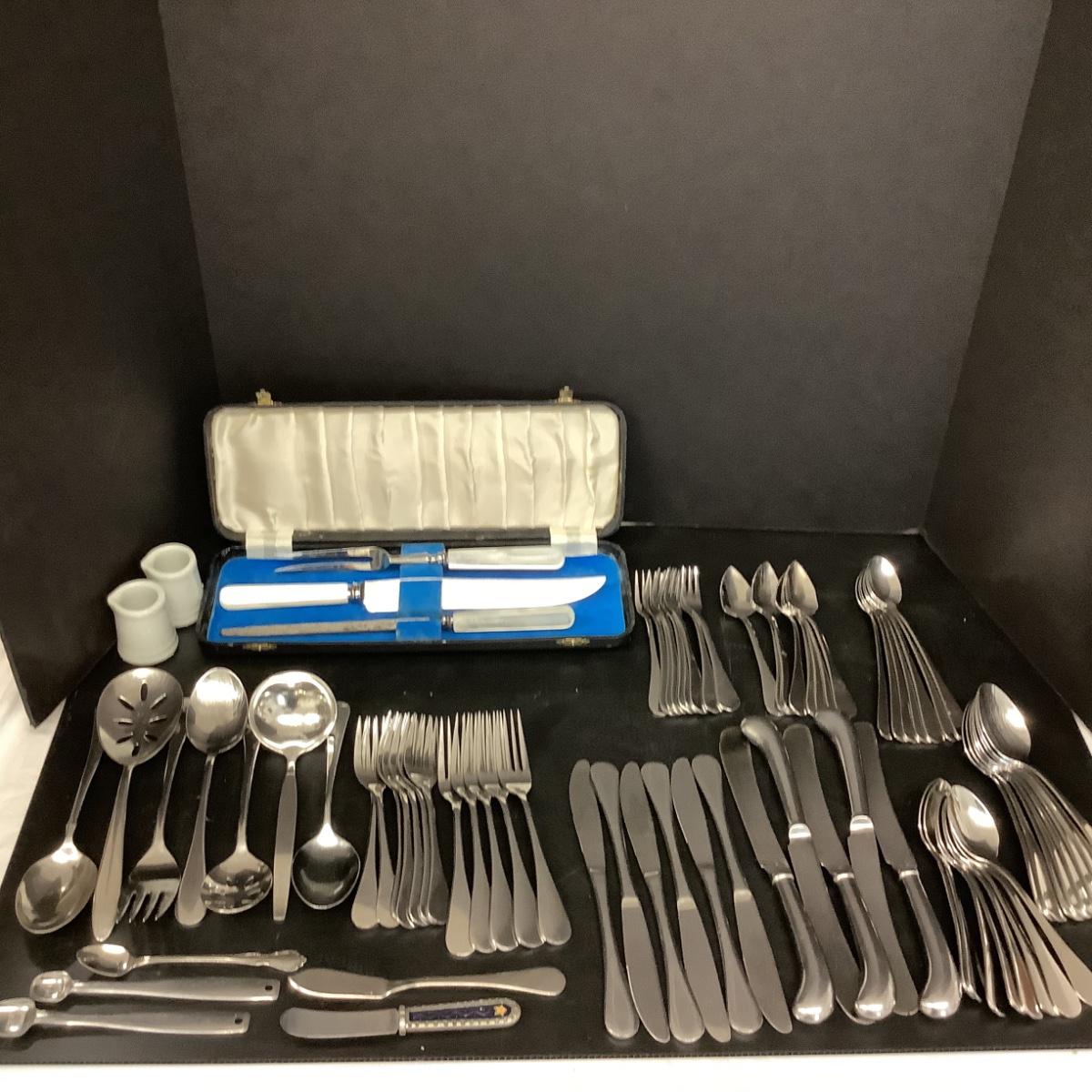 Lot 1058 Lot of Flatware ( 94 pcs ) / Mother of Pearl Handled Carving Set