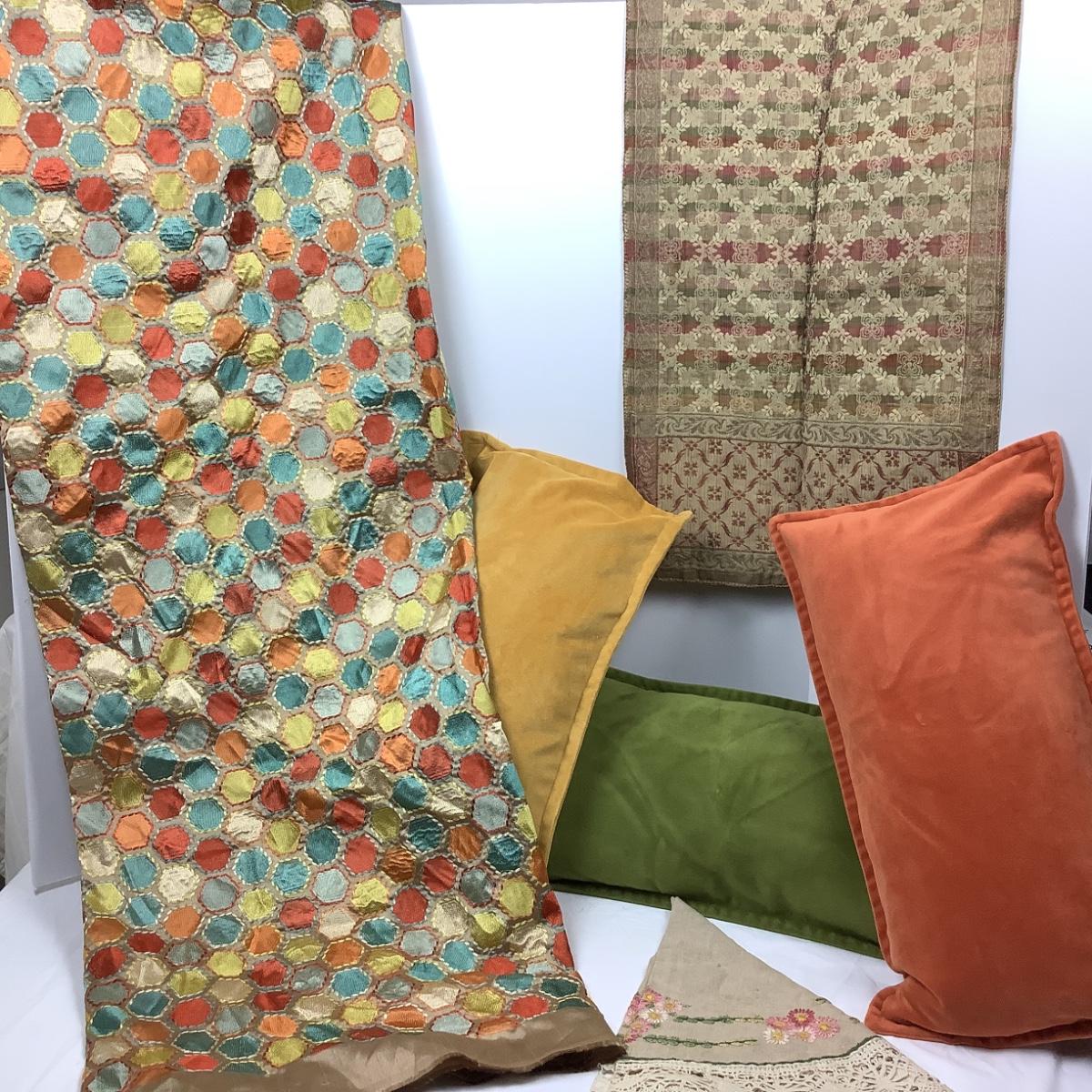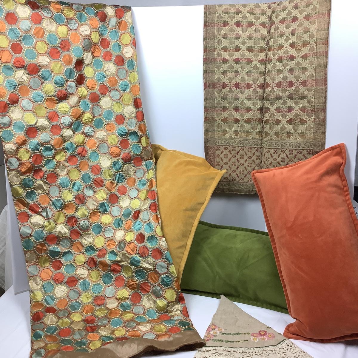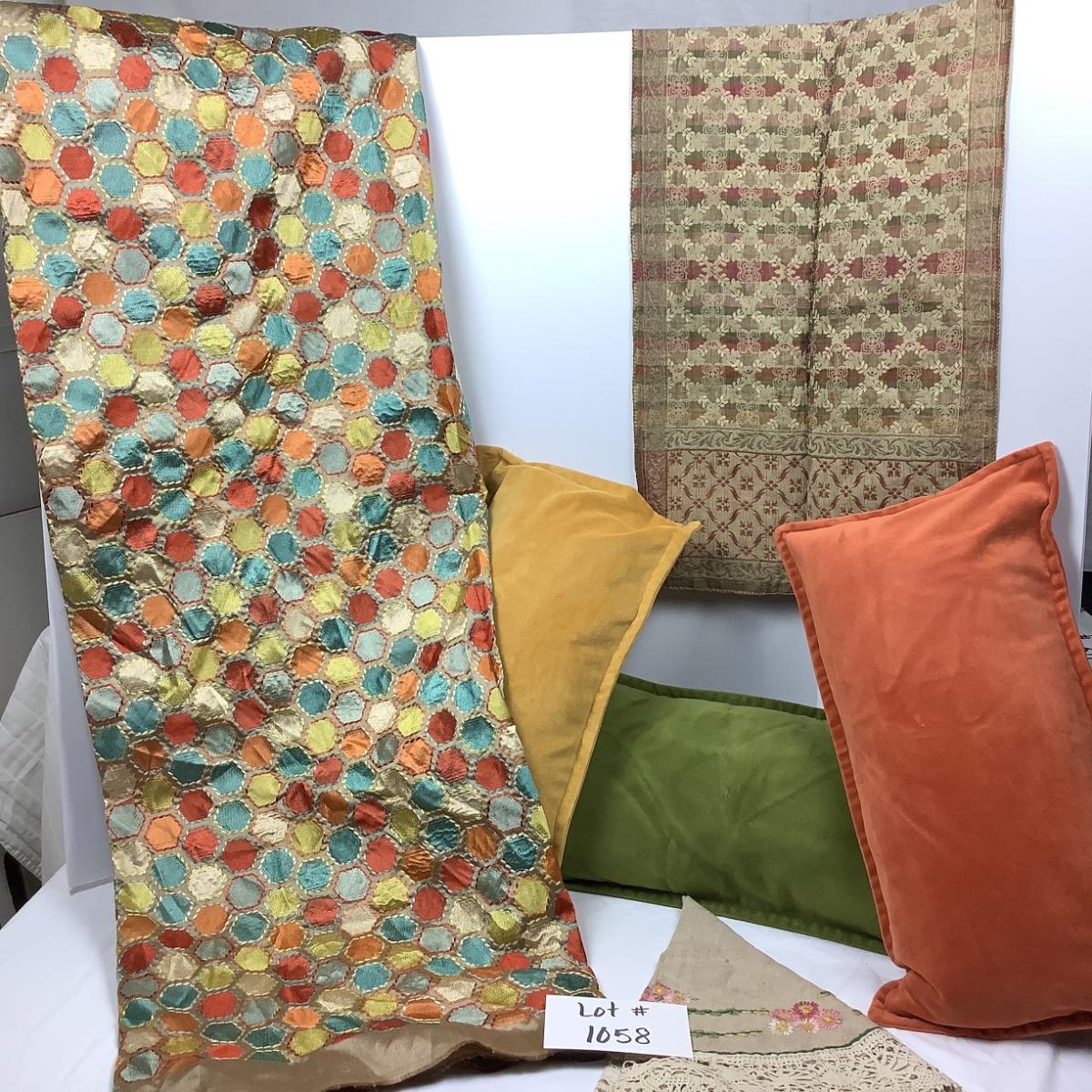 Lot # 1058 Three Grandinroad Pillow Covers with Down Pillow/Hand Crafted Silk Fabric/Table Runner