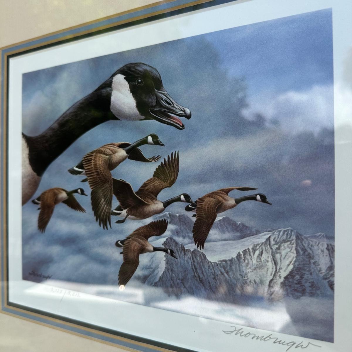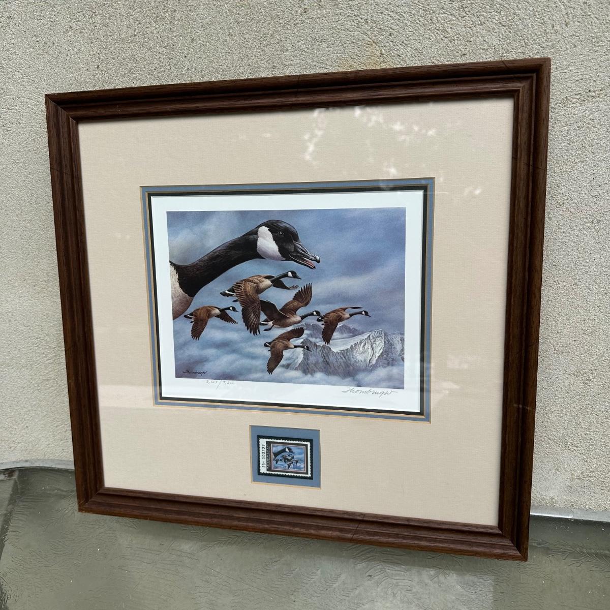 LOT 14: Canada Goose - signed, limited edition lithograph, with stamp, Joe Thornbrugh, Federal Duck Stamps 65th Anniversary & More