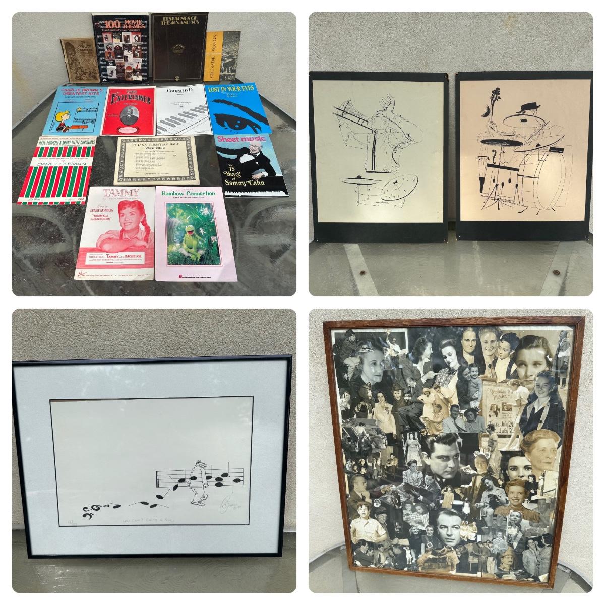 LOT 22: Music Themed Books, Artwork, Collage & More