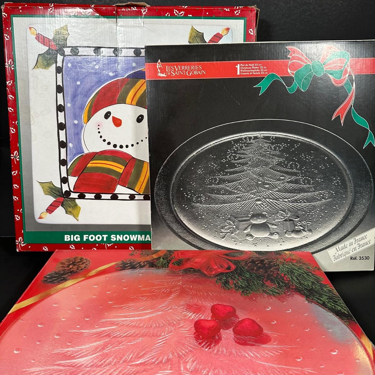 LOT 38: Christmas Themed Serving Platters w/ Box - Mikasa & Duralex