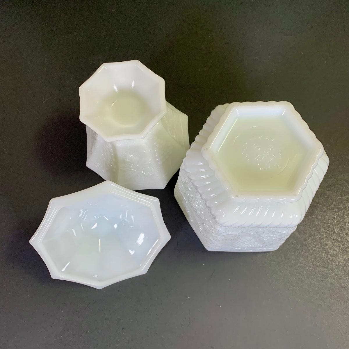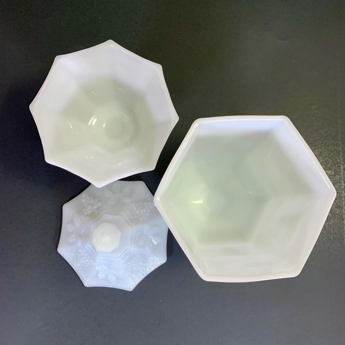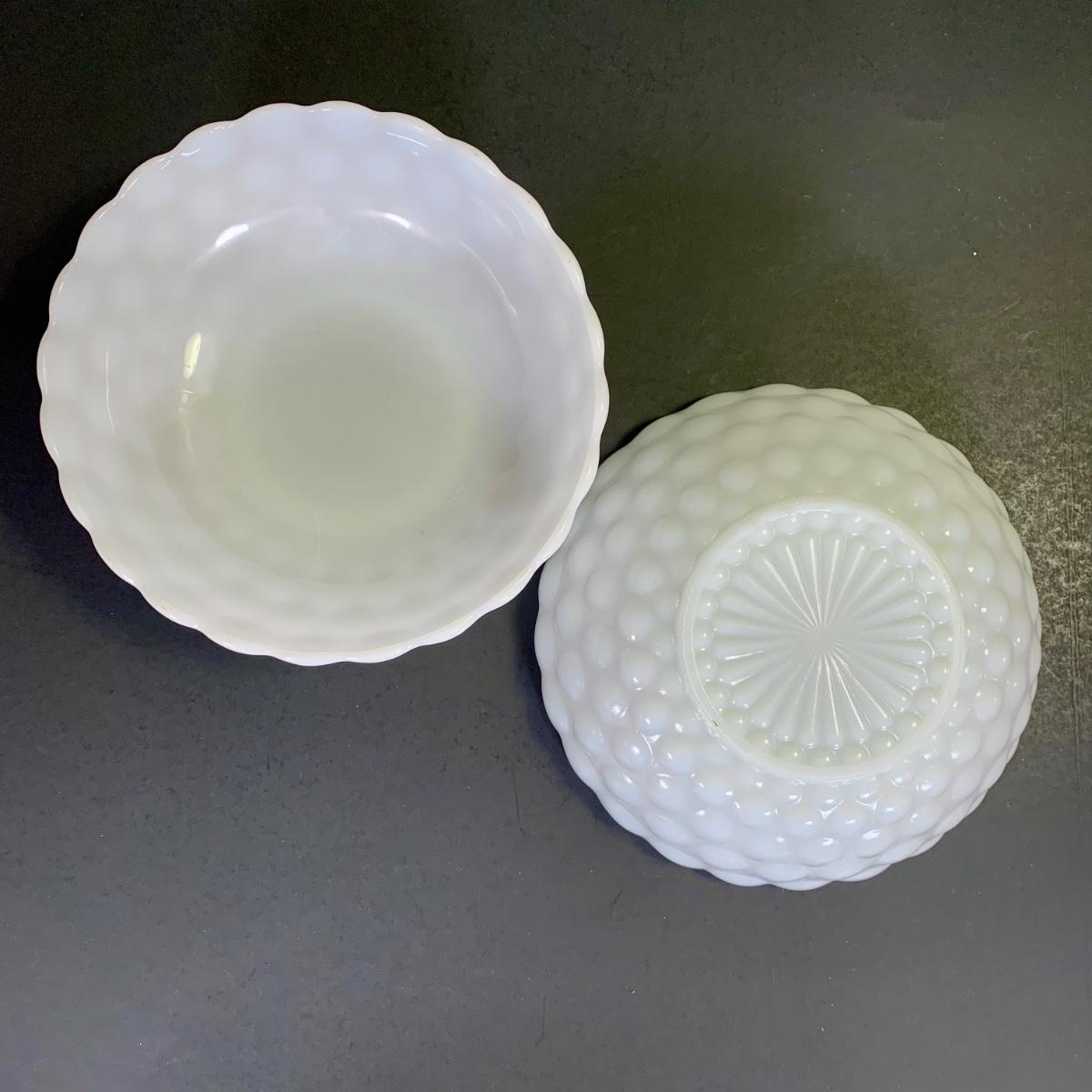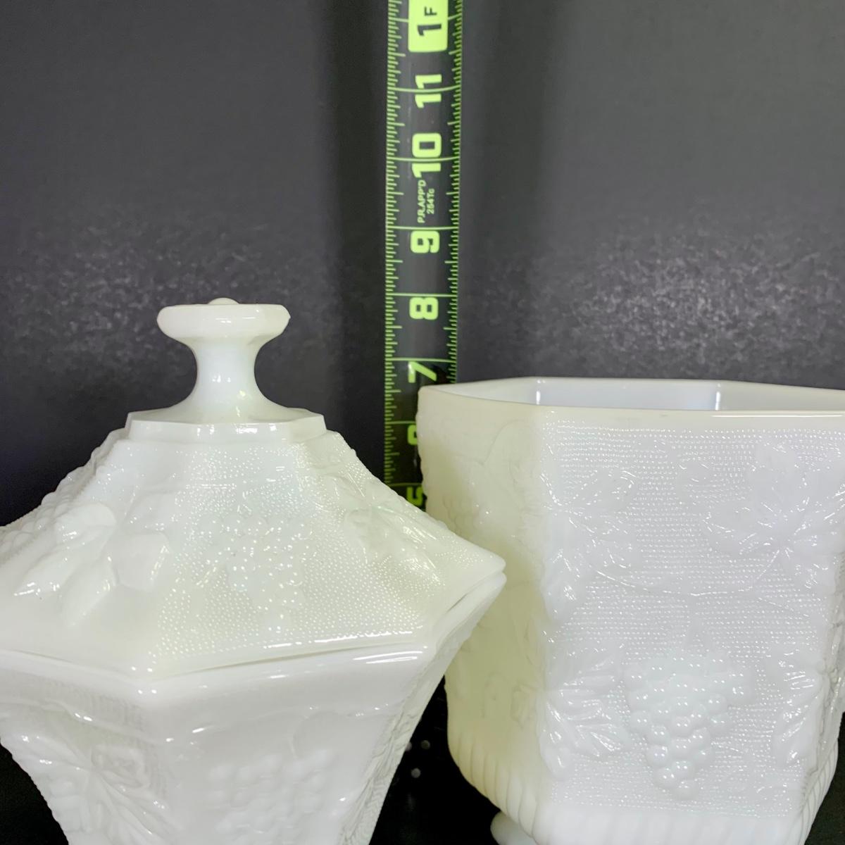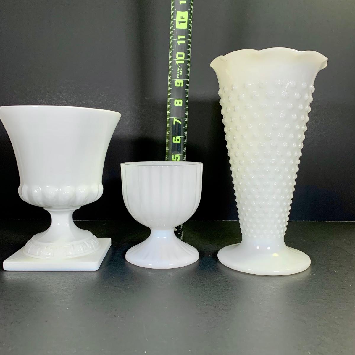 LOT 61: Vintage Milk Glass Anchor Hocking Bubble Bowl, Hobnail Vase, E.O. Brody Compote, Anchor Hocking Fire-King Jar, Vase, & More