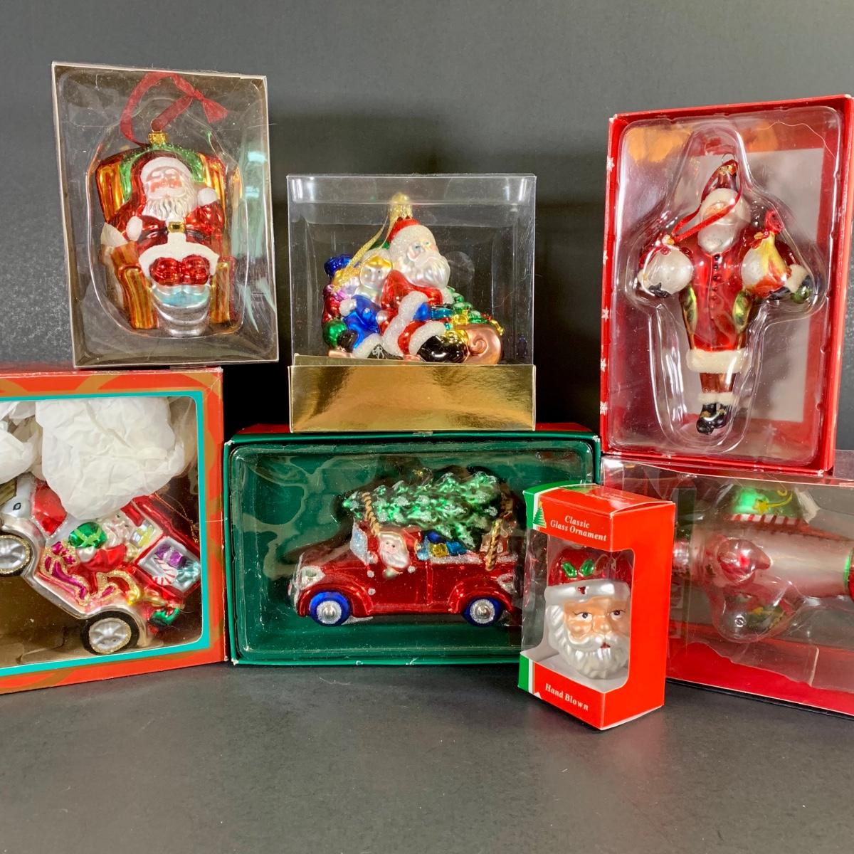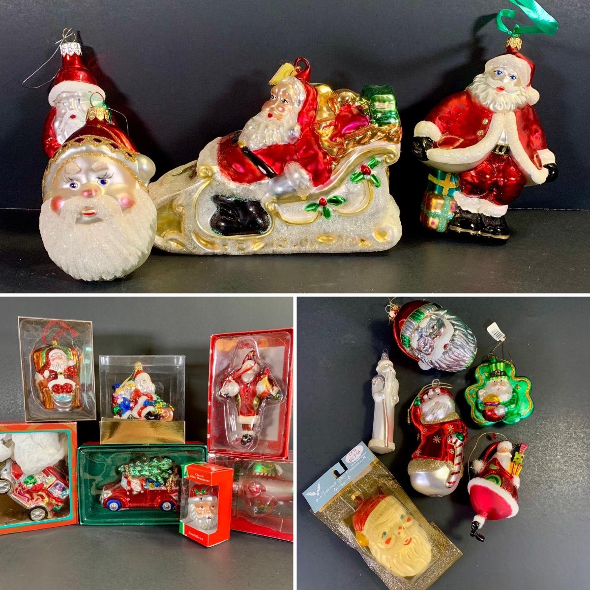 LOT 62: Vintage & Modern Glass Santa Ornaments