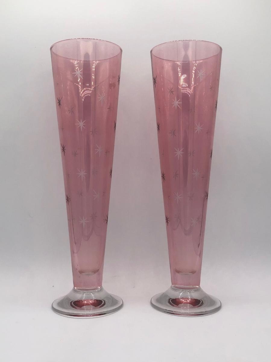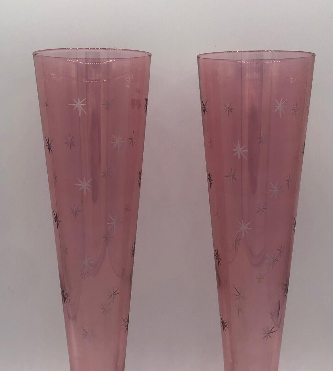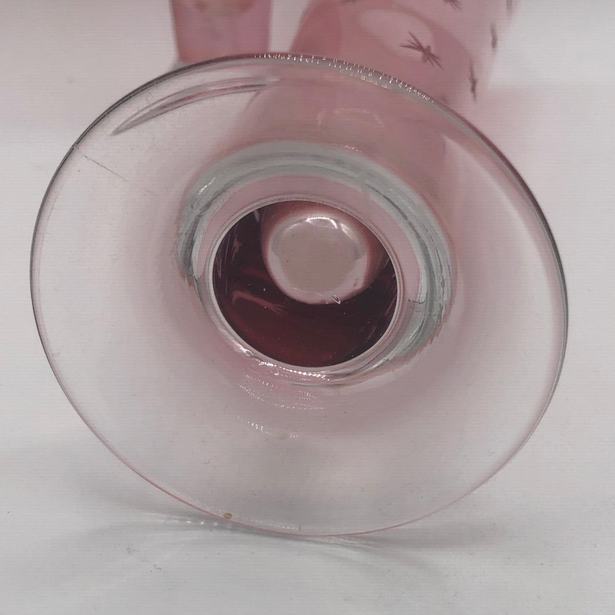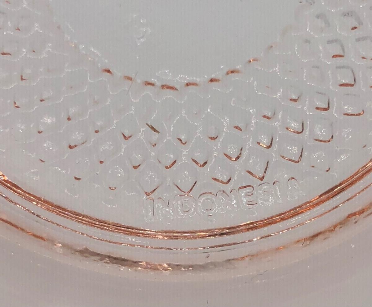 LOT 83: Vintage Pink Collection: Cambridge Crown Tuscan Shell Dolphin Foot Milk Glass Soap Dish, 2 Depression Glass Candy Dishes & Large Etched Glass Trumpet Vases