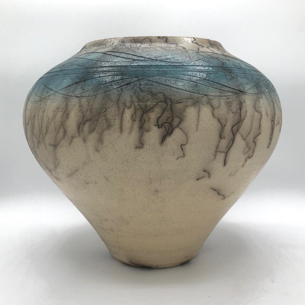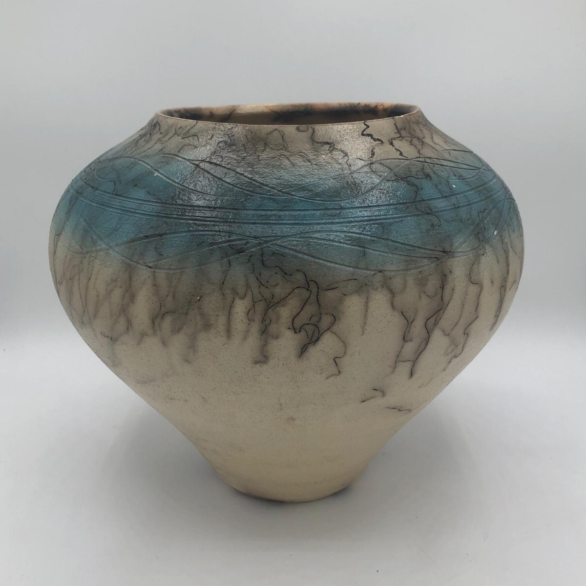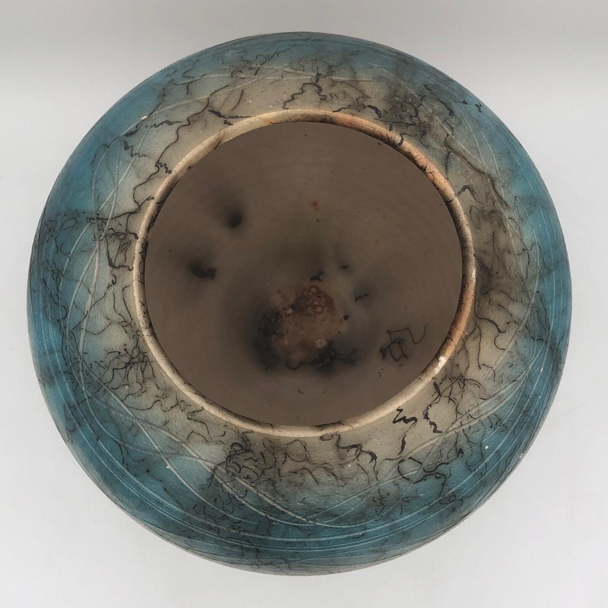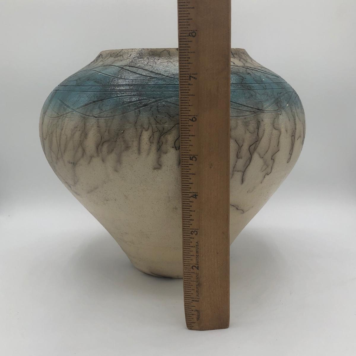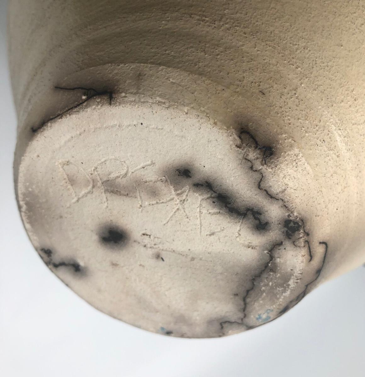 LOT 91: Signed Drexel Pottery Blue Black and Cream Art Pottery Vase (8")