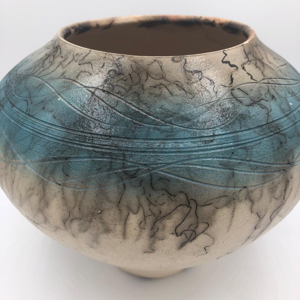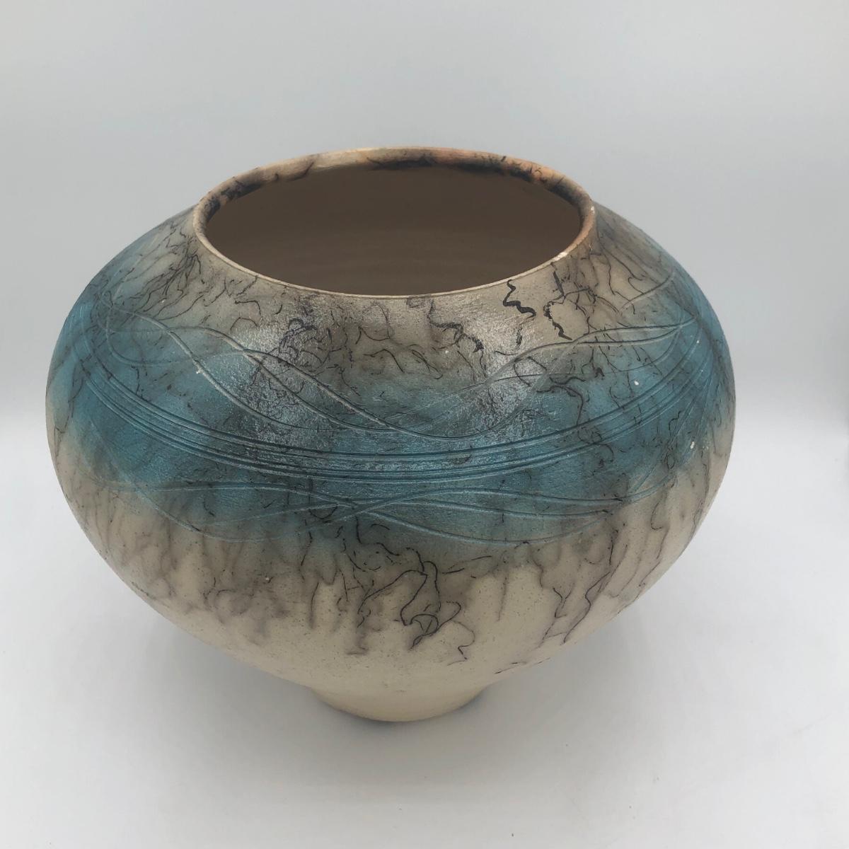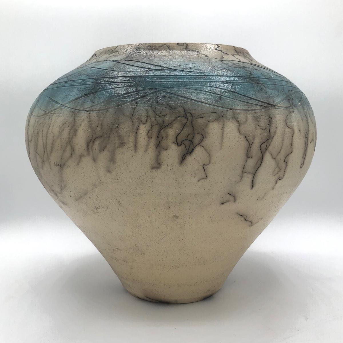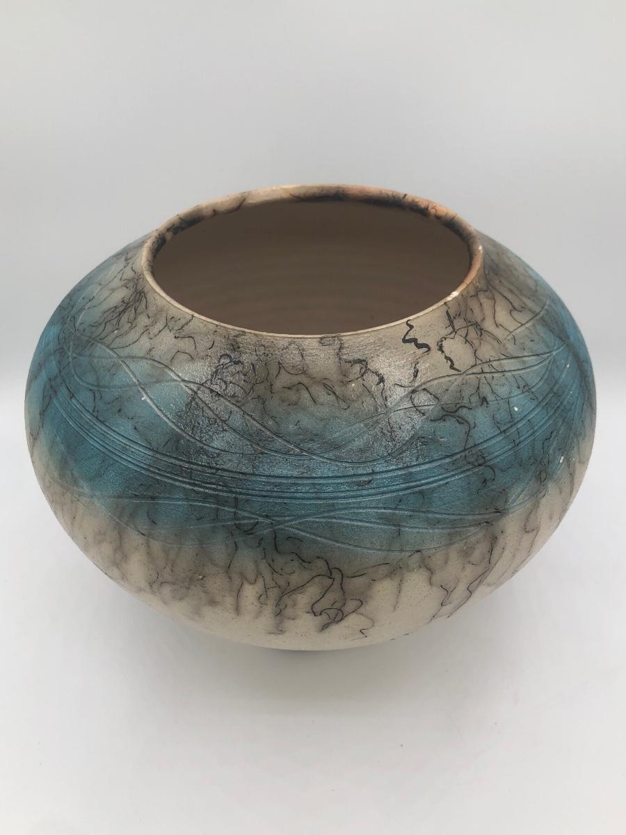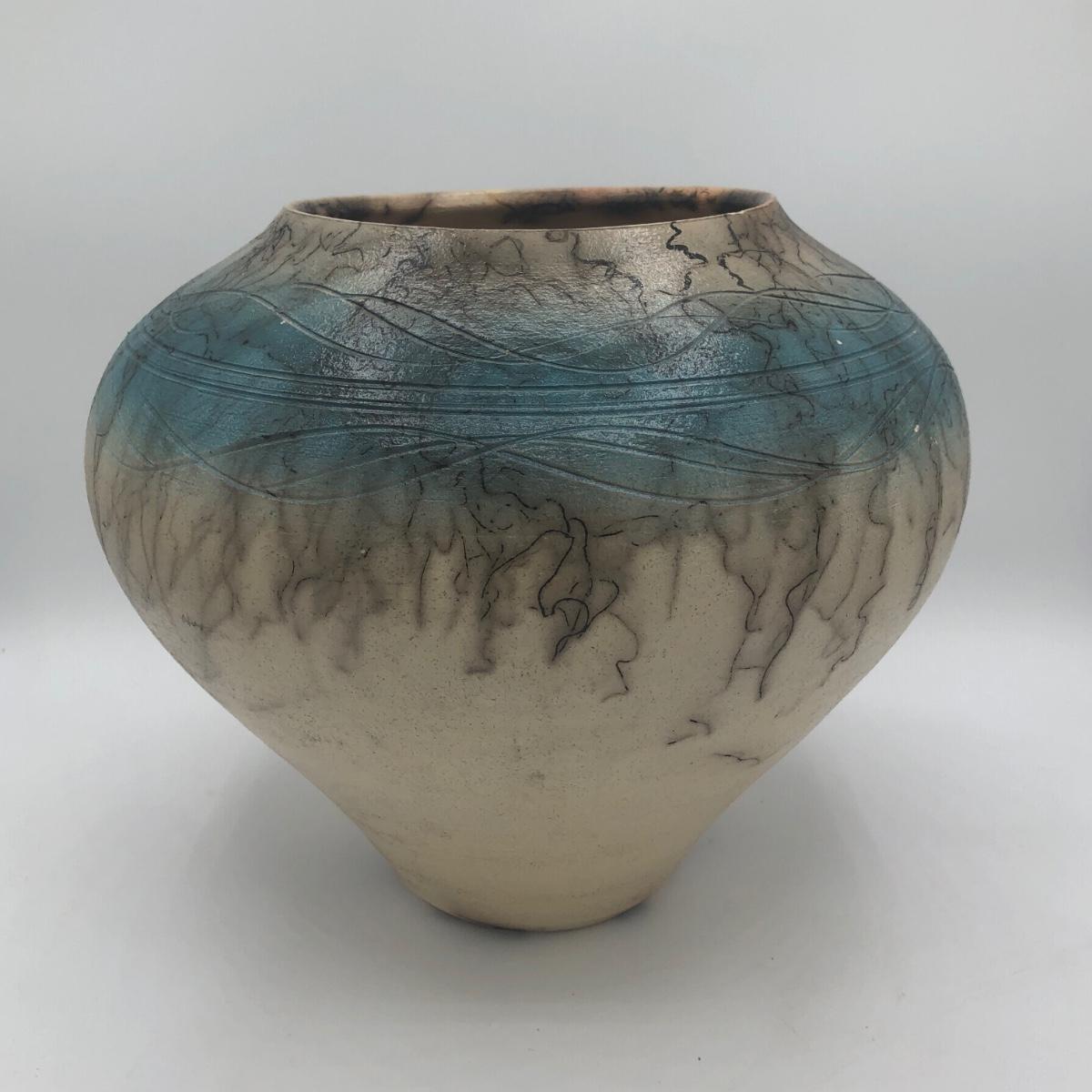 LOT 91: Signed Drexel Pottery Blue Black and Cream Art Pottery Vase (8")
