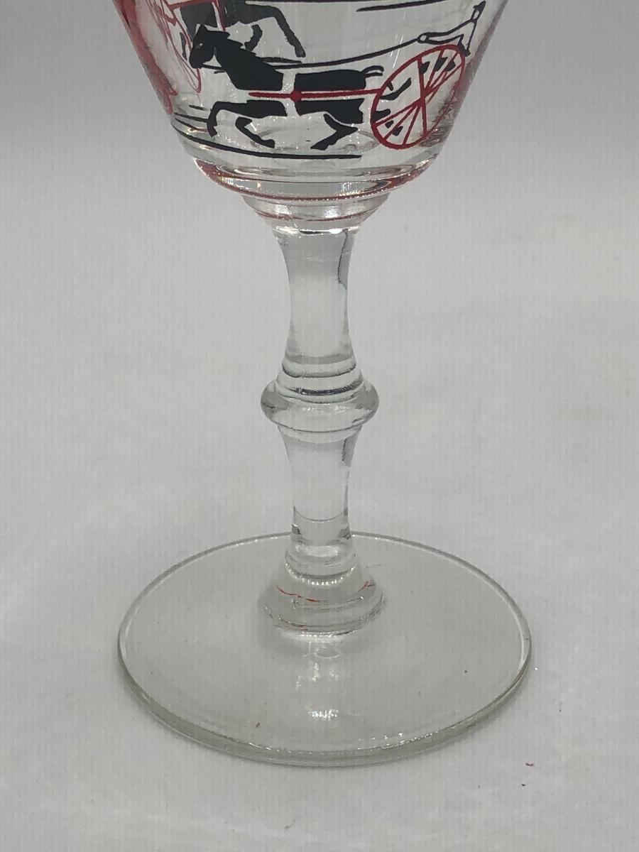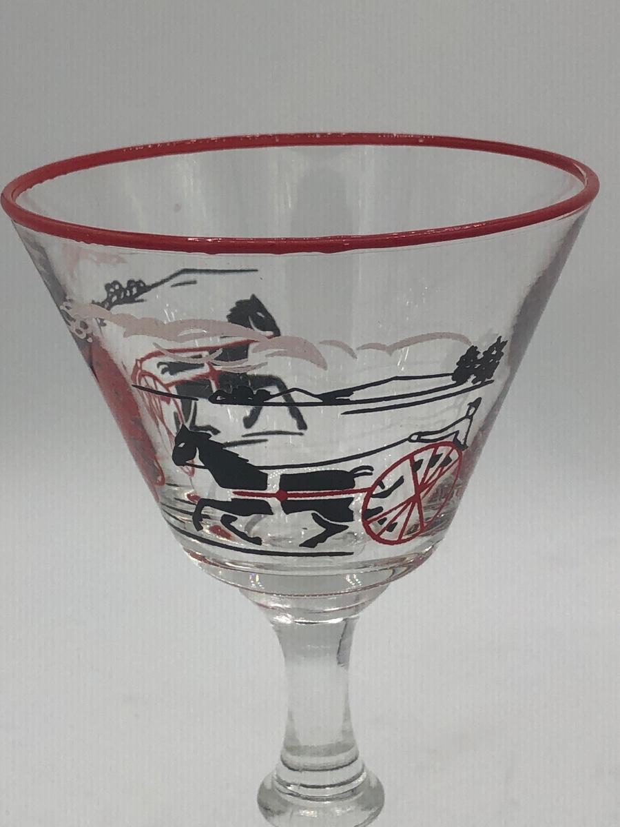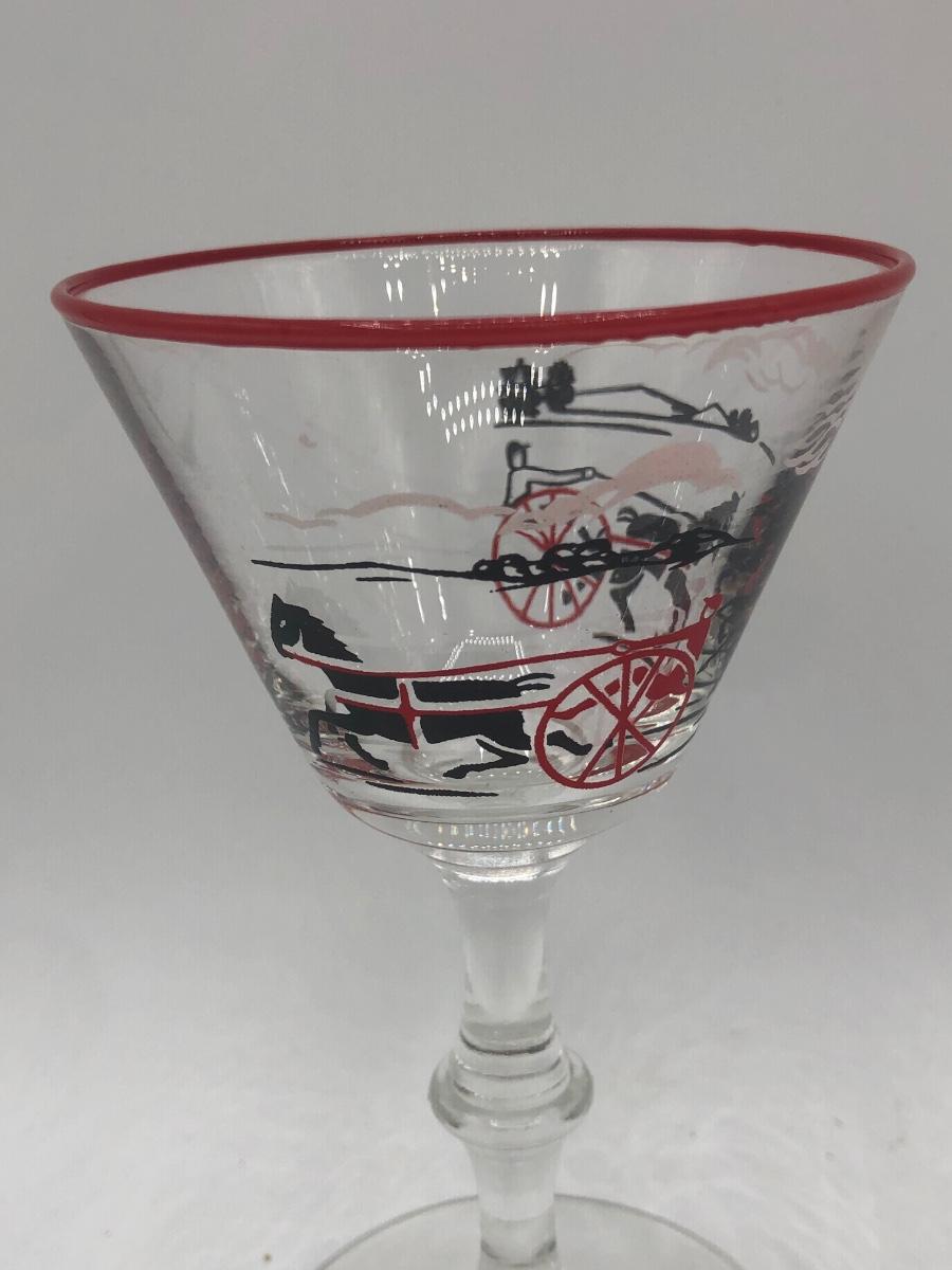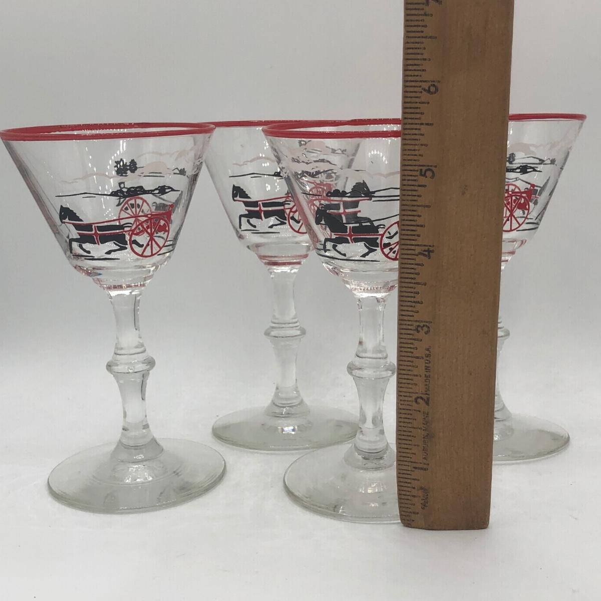 LOT 97: Vintage 1940s Libbey Horse Drawn Cab Red Rim Cocktail Glasses (4)
