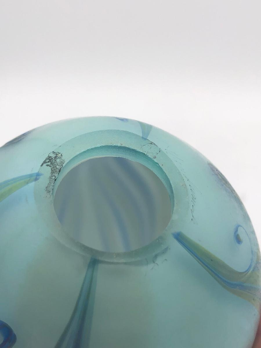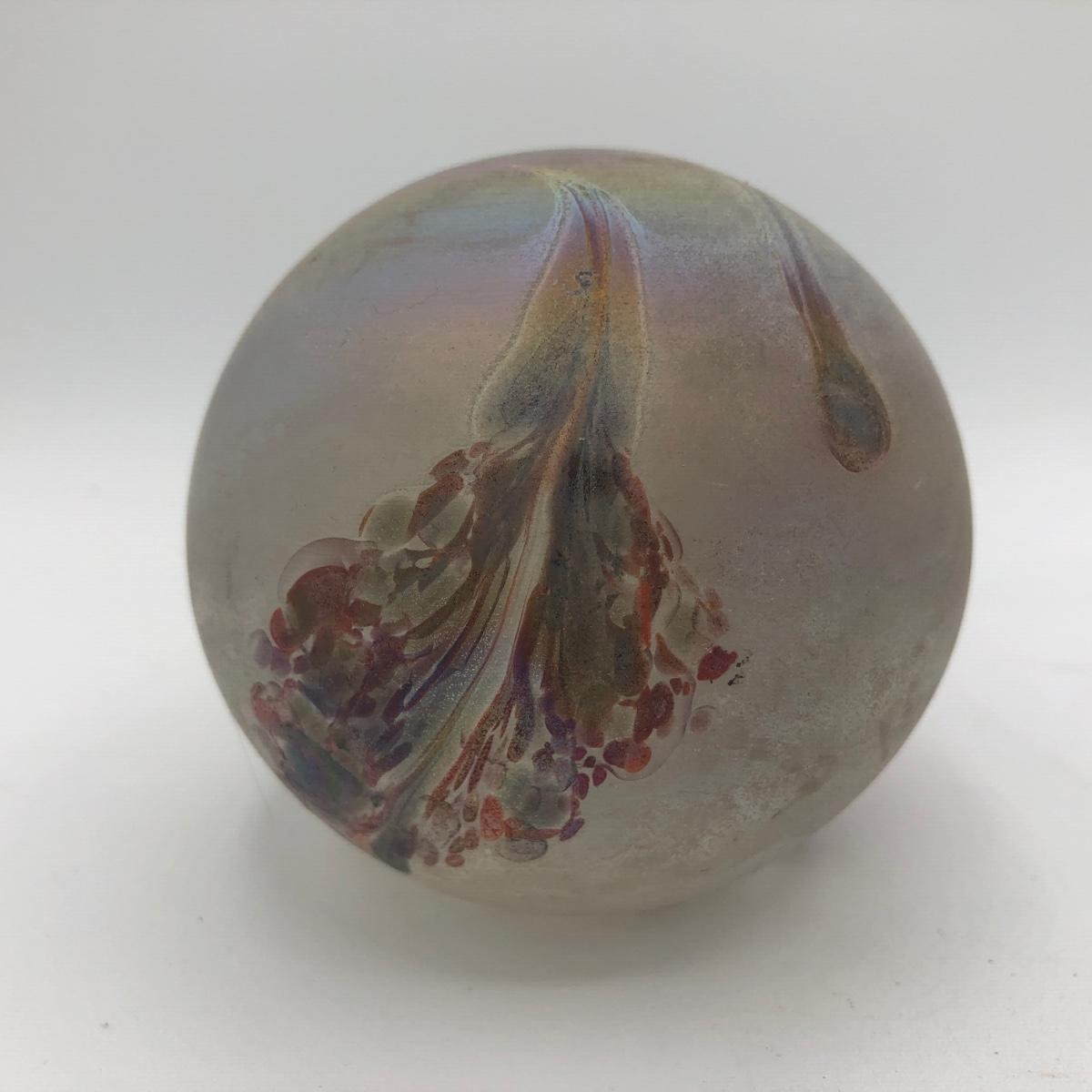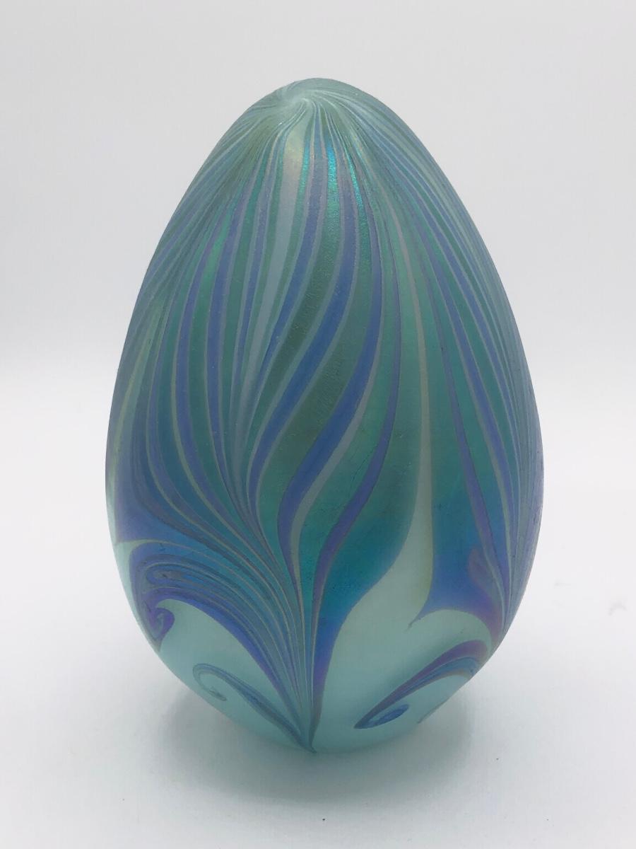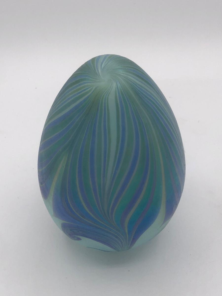 LOT 99: Signed Blue Vandermark Art Glass Egg & Unmarked Glass Sphere Paperweight