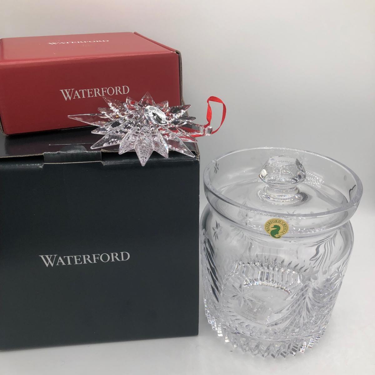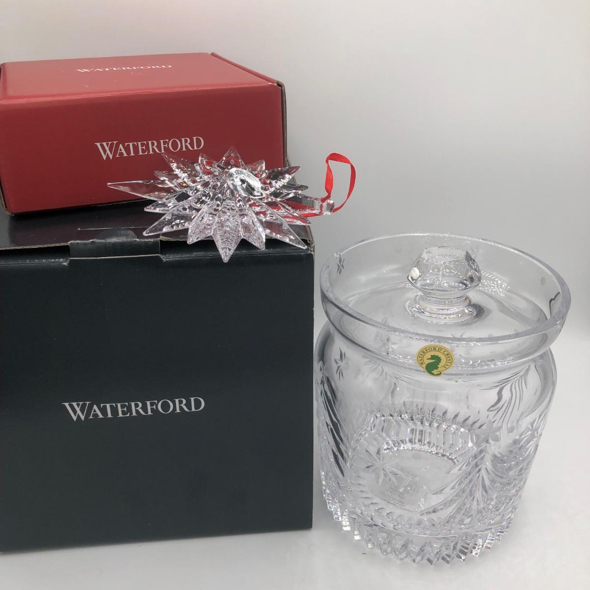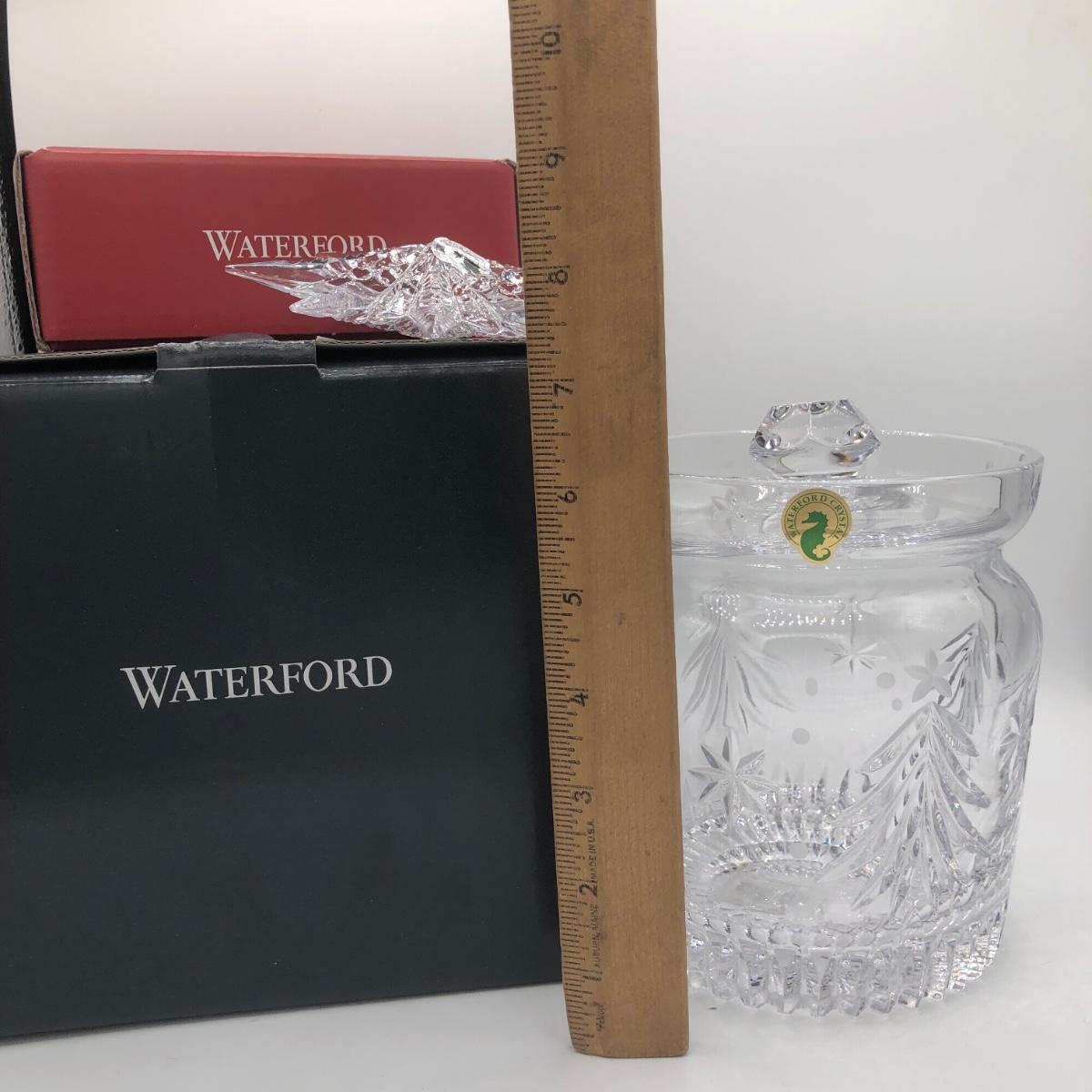LOT 106: Waterford Crystal Christmas Night Biscuit Barrel & Snowflake Ornament w/ Boxes