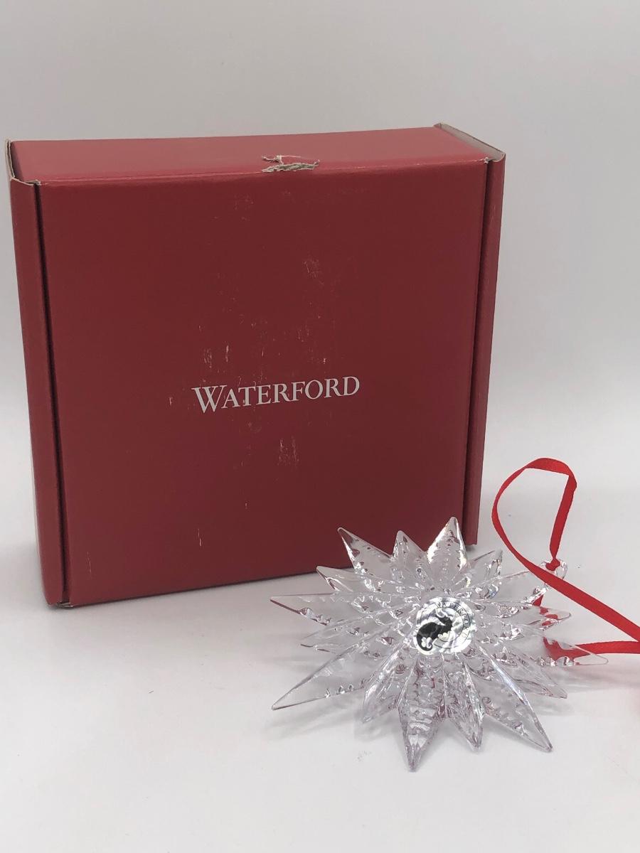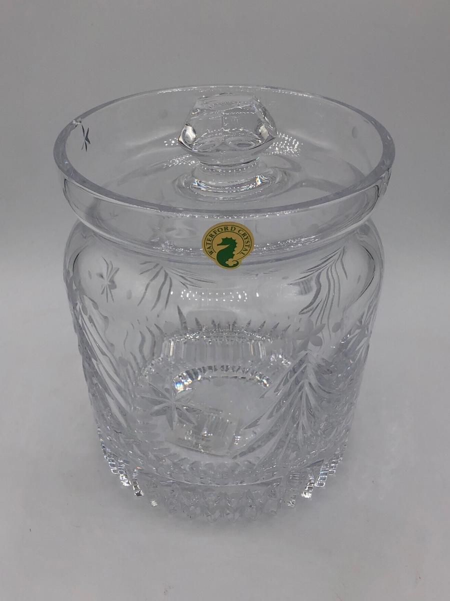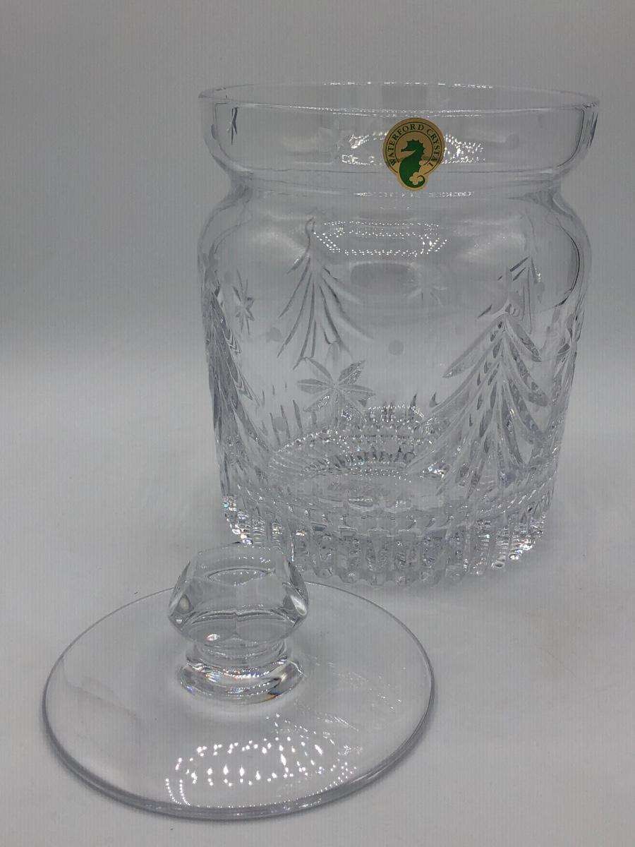 LOT 106: Waterford Crystal Christmas Night Biscuit Barrel & Snowflake Ornament w/ Boxes