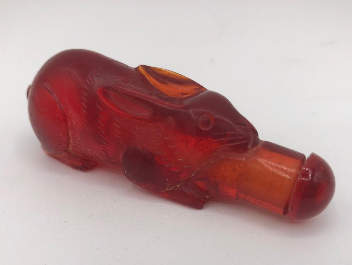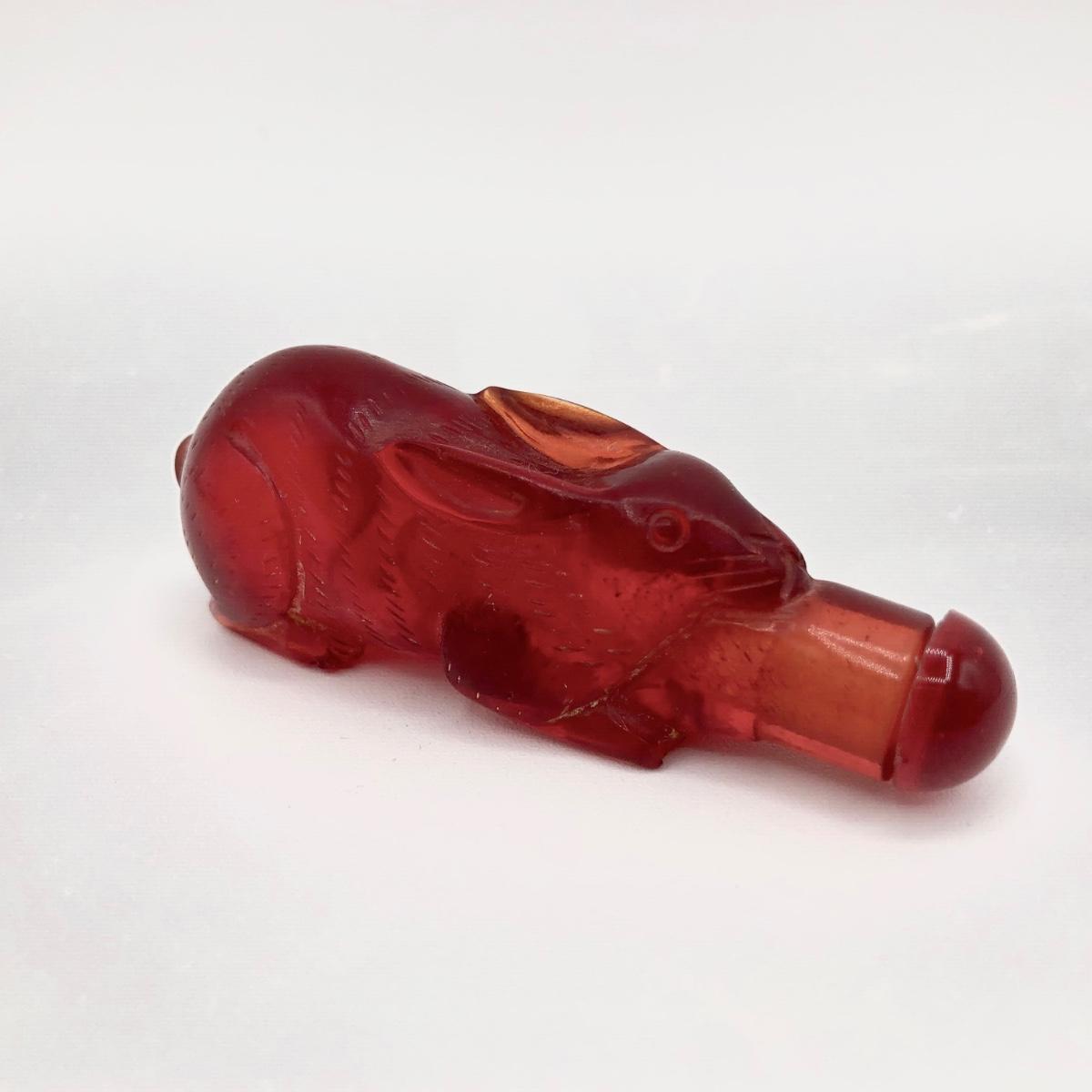 LOT 110: Vintage Red Glass Rabbit Snuff Bottle