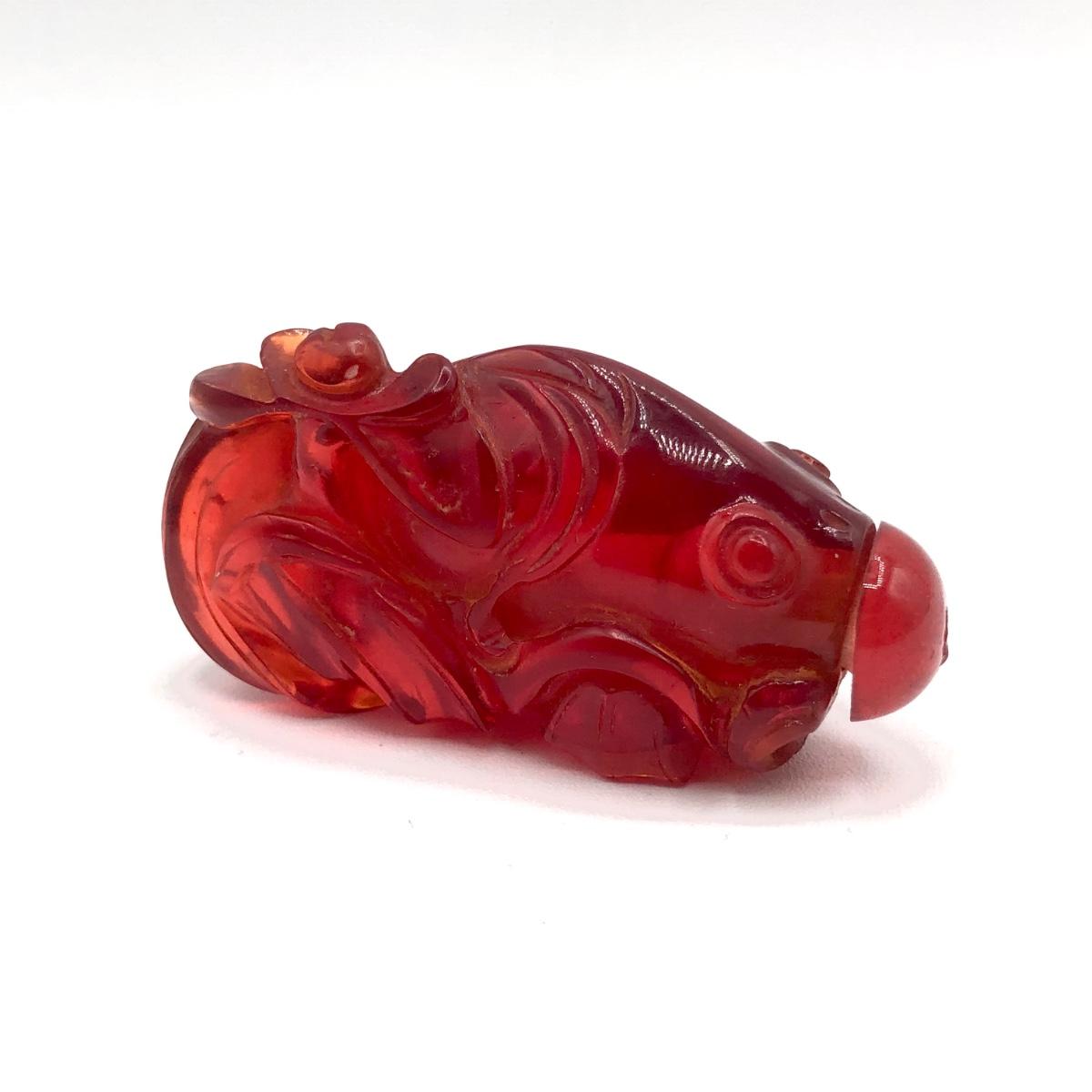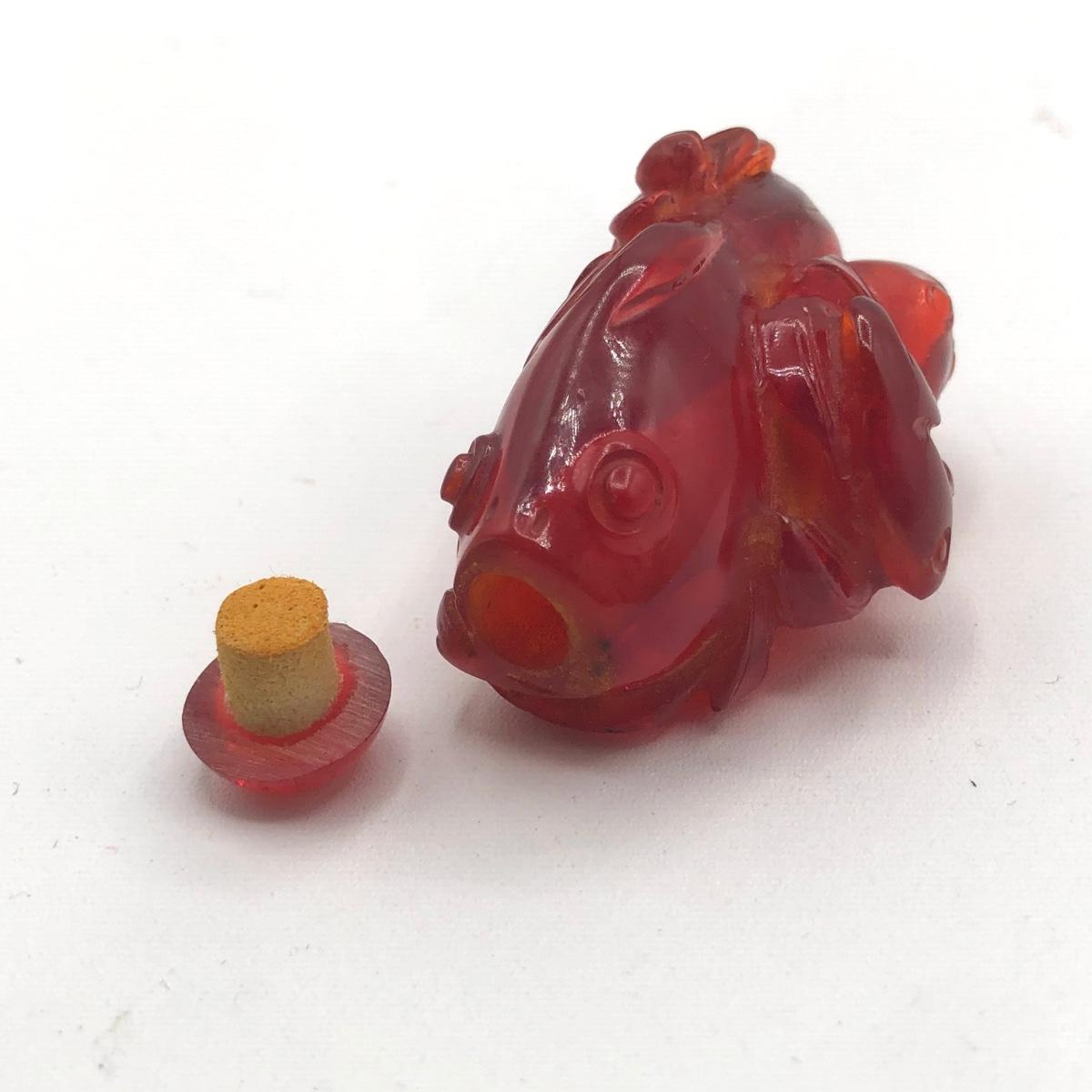 LOT 111: Vintage Red Glass Fish Snuff Bottle