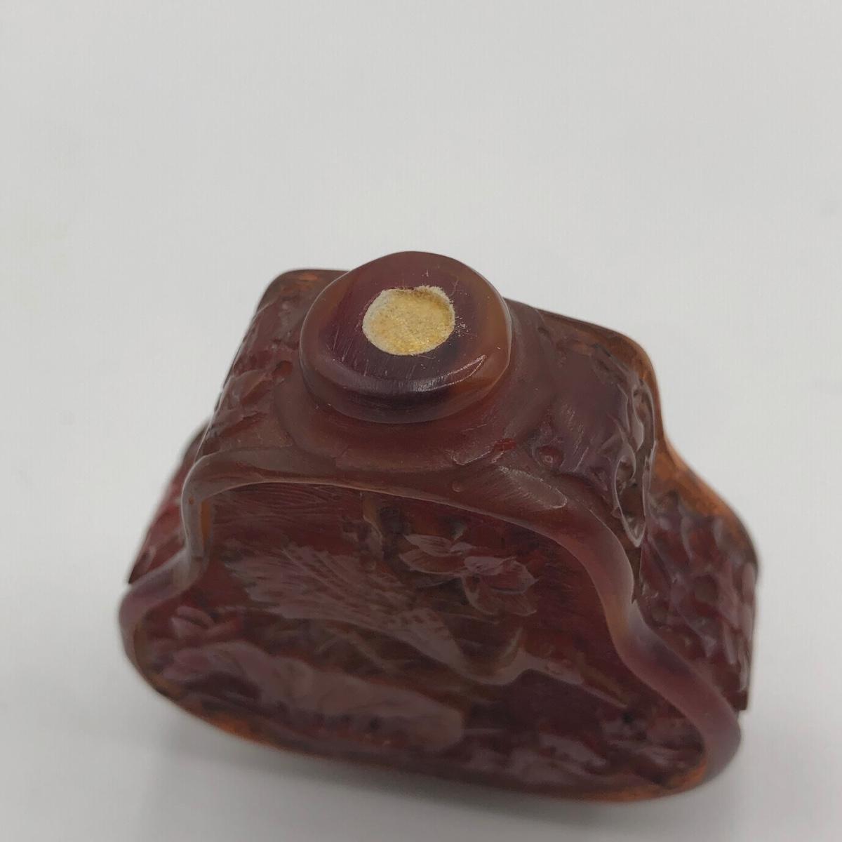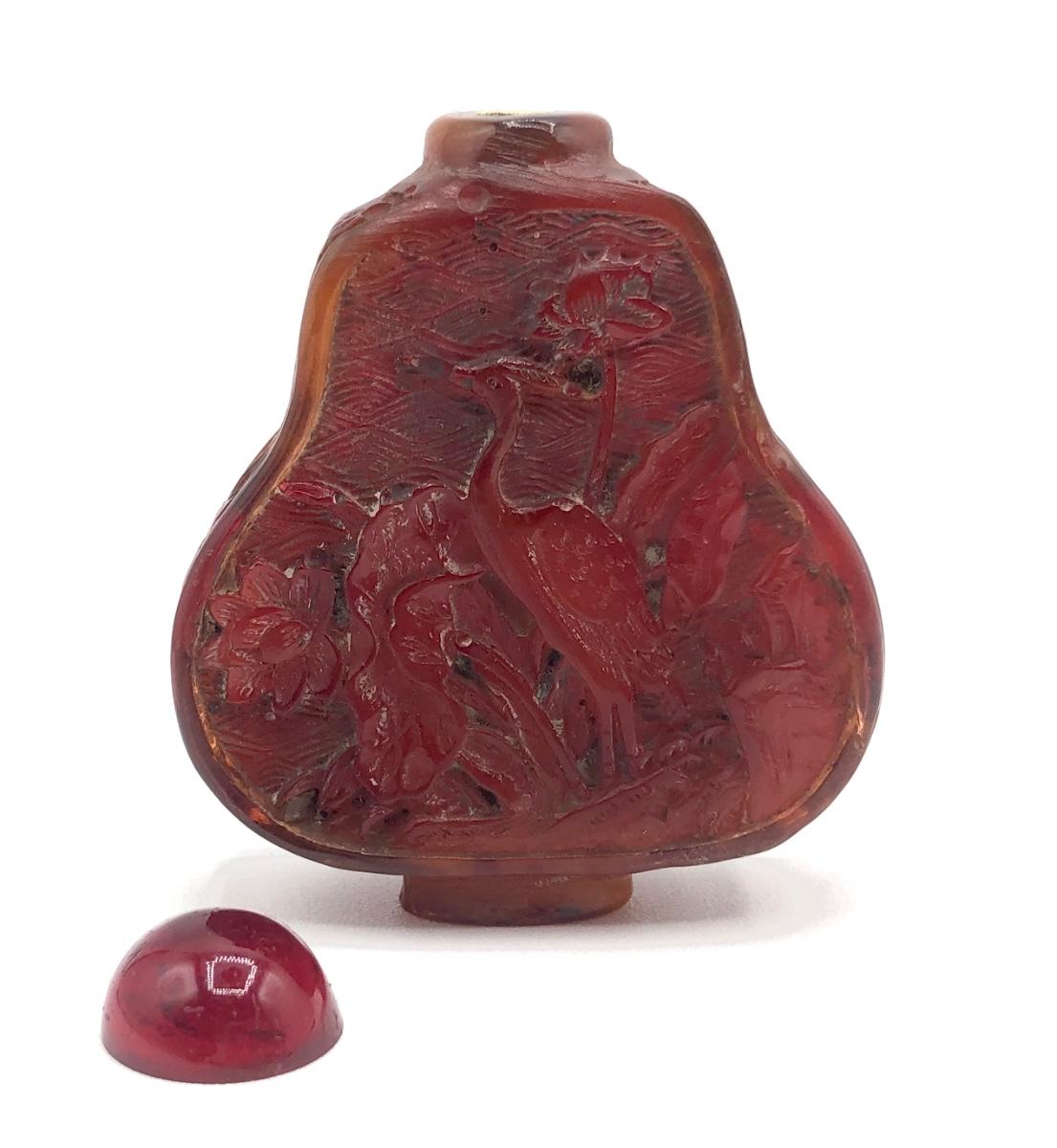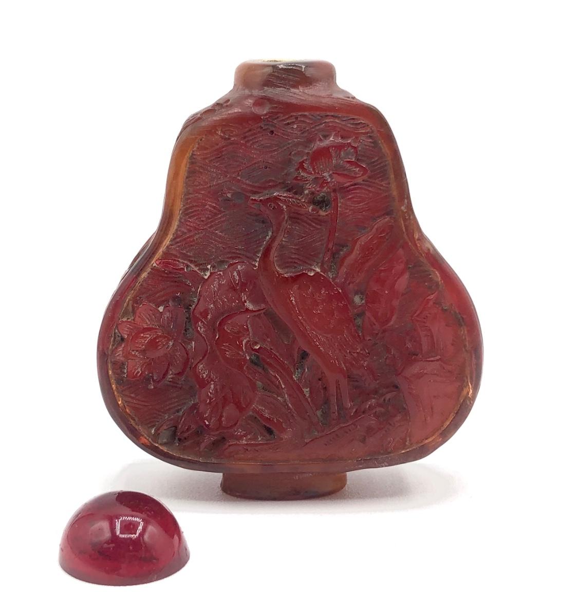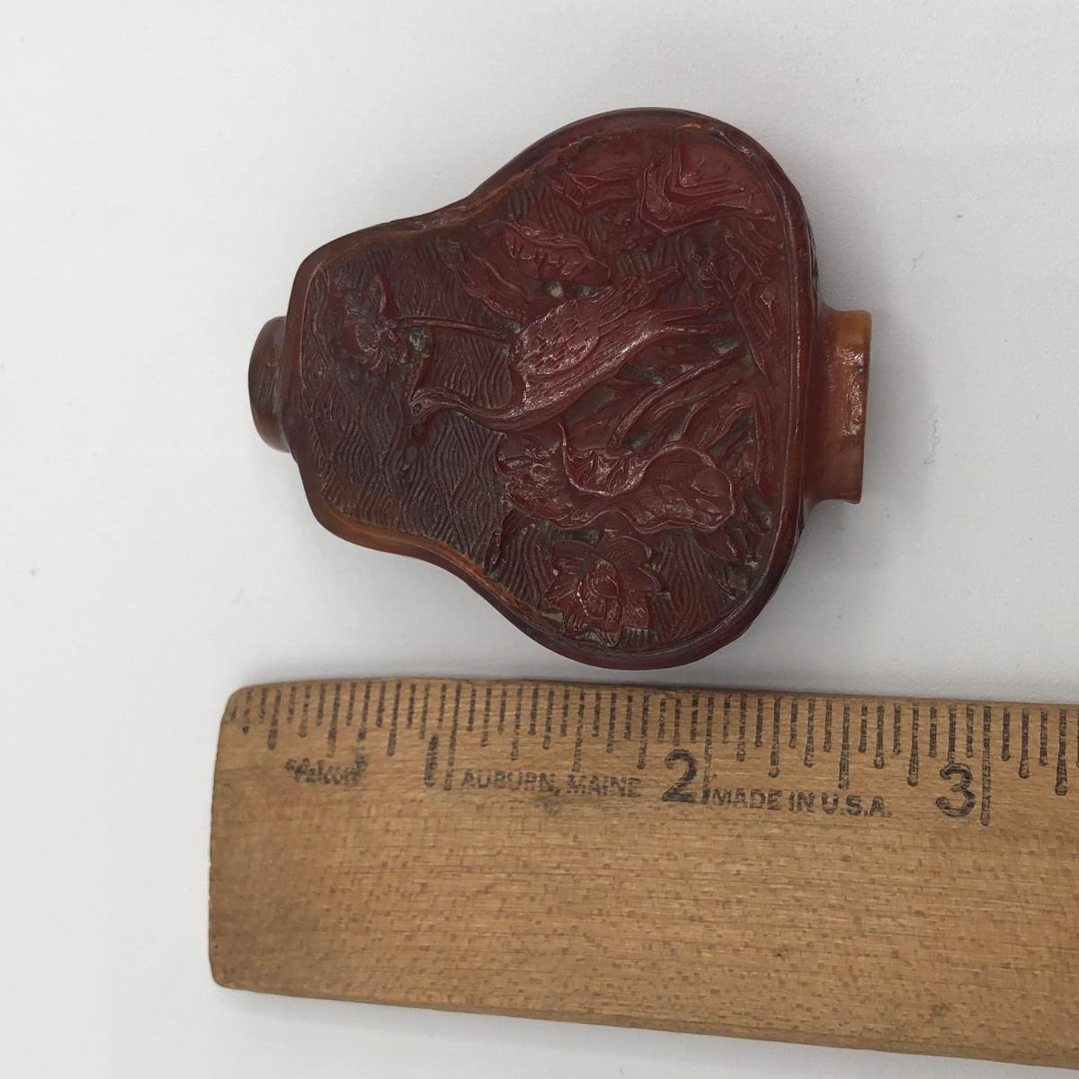 LOT 112: Vintage Brown Carved Crane Snuff Bottle