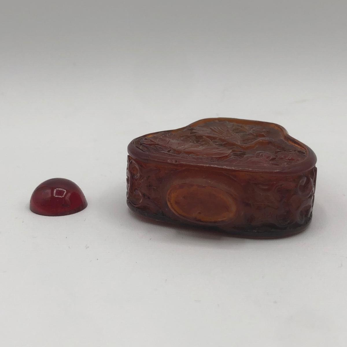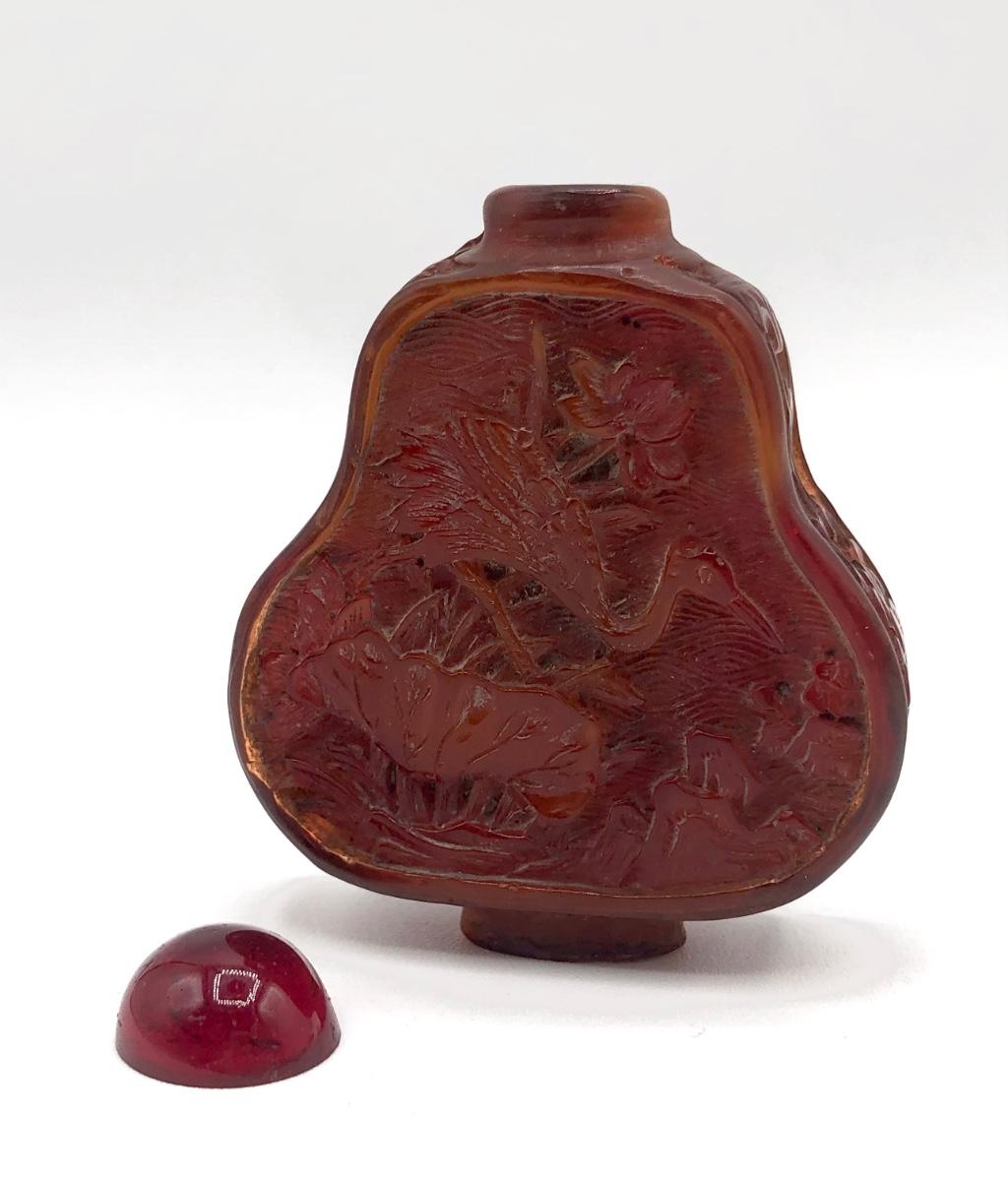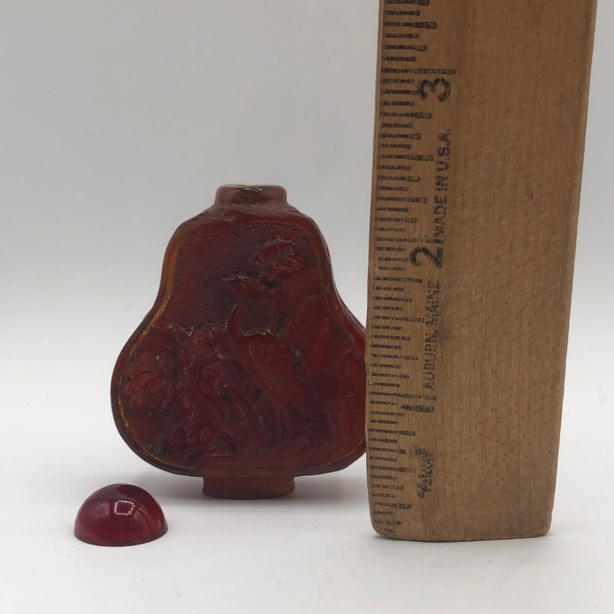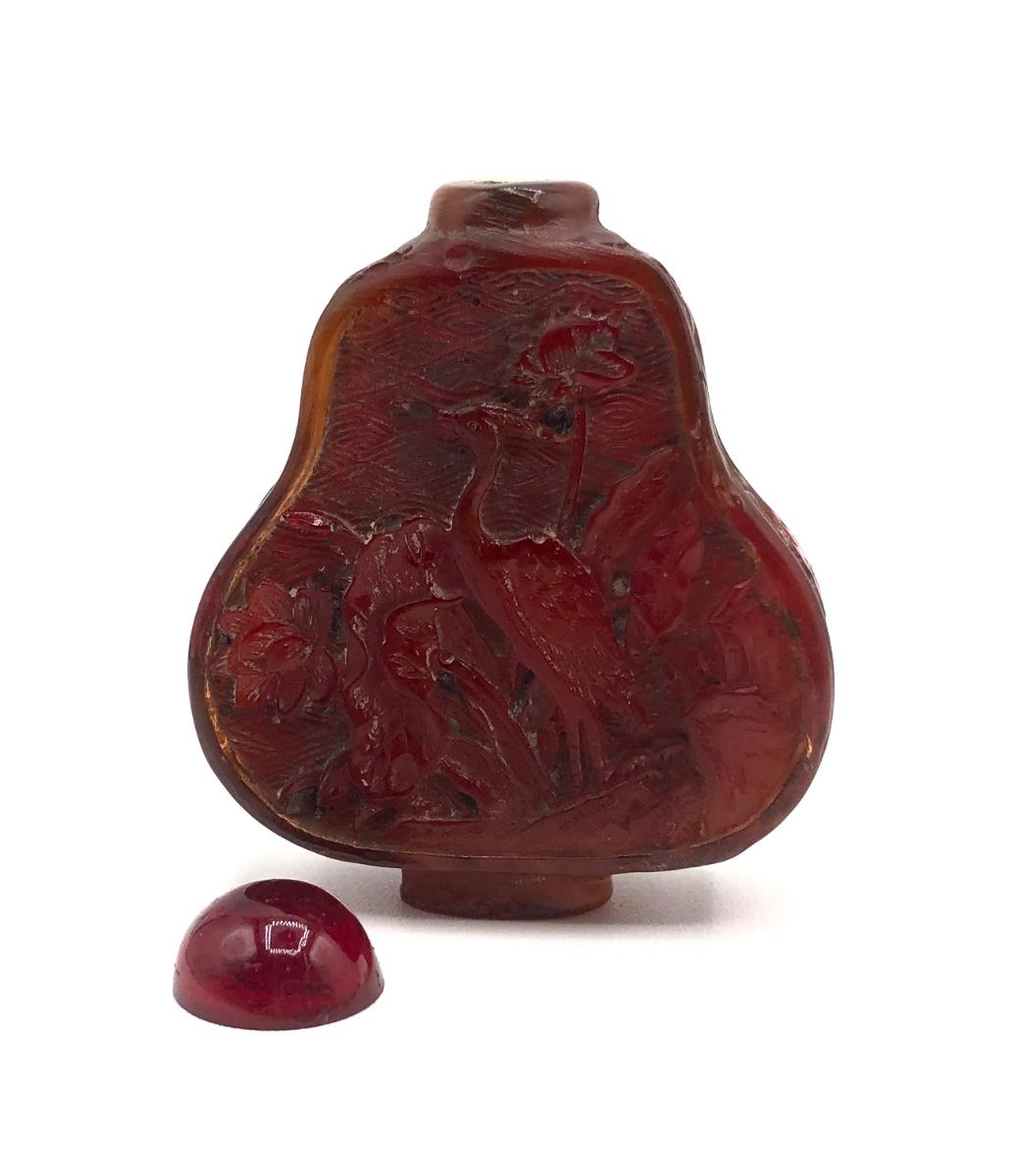 LOT 112: Vintage Brown Carved Crane Snuff Bottle