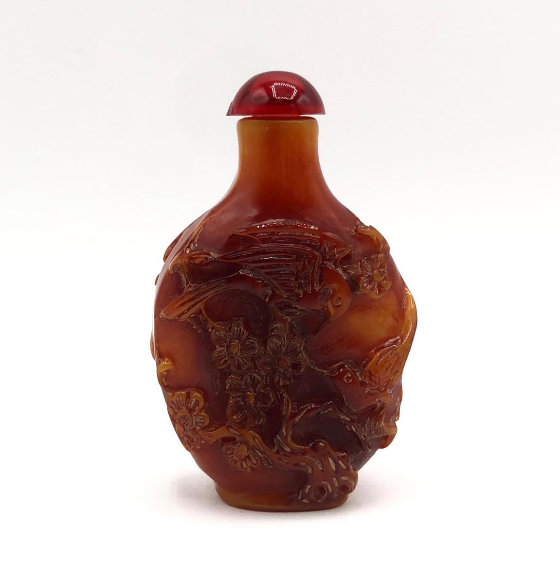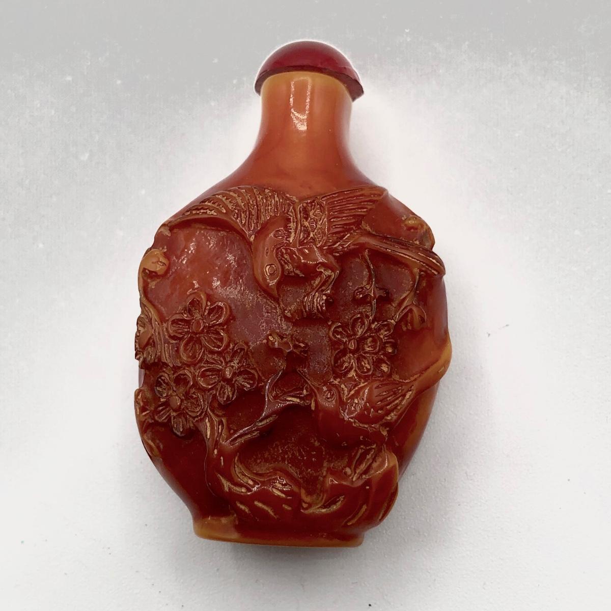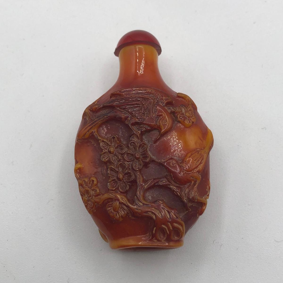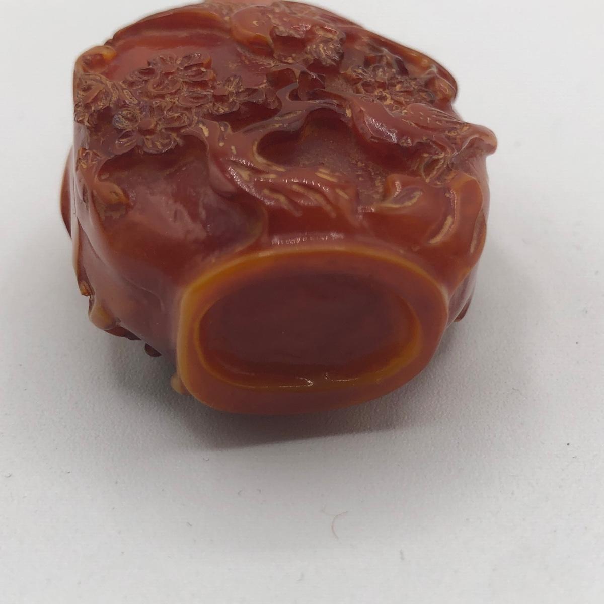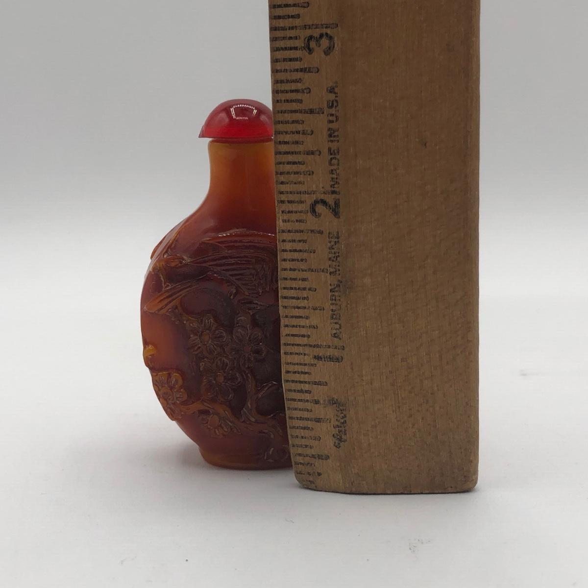 LOT 113: Vintage Carved Amber Color Snuff Bottle